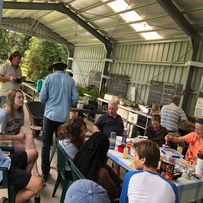 This past summer was our second opportunity to work with our new service partner, Kuranda Envirocare, and we had an incredible experience getting our hands dirty doing conservation abroad in the Australian rainforest. Working with Kuranda Envirocare was a great chance for our group to get to know not only the landscape of tropical north Queensland but also to know the community working daily to protect the rainforest. During our most recent trip to Australia, our 8 person crew assembled each morning to assist our leader, Kathy, with tasks ranging from cleaning, organizing, and pruning seedling trees in the nursery to removing invasive weeds and replanting endemic tree species in damaged sections of rainforest. After working for a few hours each morning, we would stop for tea and biscuits, as is customary in Australia. As we sat and ate homemade passion fruit jam on scones baked by local volunteers, it was easy to understand why the community has come to love Envirocare.