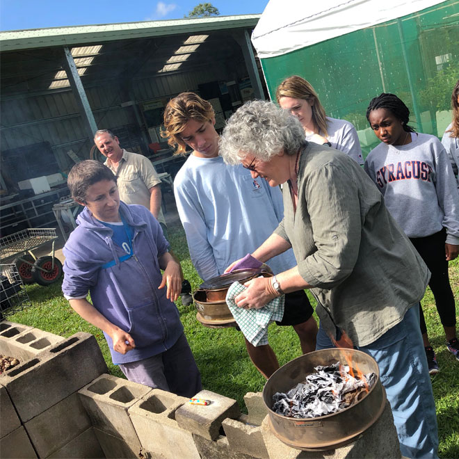 Perhaps one of the most interesting parts of our environmental conservation abroad, however, was assisting the Kuranda Envirocare team in germinating seeds we had collected from the forest floor. On our last morning of service at Envirocare, our crew set out to find seedpods suitable to be cleaned and roasted over a fire. While this may sound strange to burn the seedpods of endangered tree species, a multitude of plants in the rainforest relies, in fact, on fire-activation to begin the germination process. Fire activation is a form of serotiny, the process in which seeded-plants (spermatophytes) release their seeds after an environmental cue (I.e. fire or smoke). Seedpods covered in resin, for example, are unable to release their seeds without the heat of a direct flame, as the flames will melt the resin and open the seedpod. As such, fire activation treatments can increase germination rates by up to 15% in some species, according to scientists. Since EnviroCare’s work is an effort to expedite the growth process of endangered species and to replant damaged sections of the forest, burning the seedpods is simply replicating a natural process rather than waiting around for the next significant wildfire to occur.