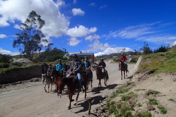 Students work hard, but also play hard in the Andes. During their stay, students spend an afternoon navigating the Andean countryside on horseback. One of the most breathtaking sites in the Chugchilán area is Quilotoa Lake – a unique volcanic crater with emerald waters that spans 3 kilometers wide. Students explore and hike through this natural wonder, shop for colorful Andean clothing such as hats and ponchos in markets nearby, then return home at night to the welcoming warmth of our Andean ecolodge.