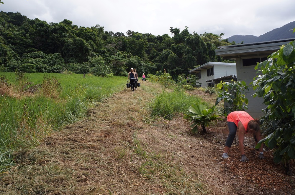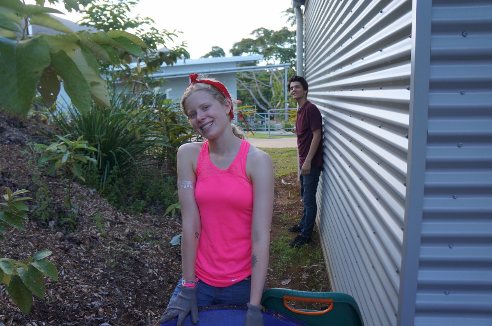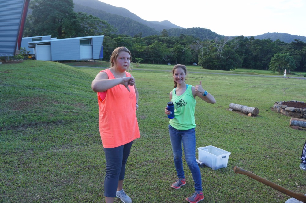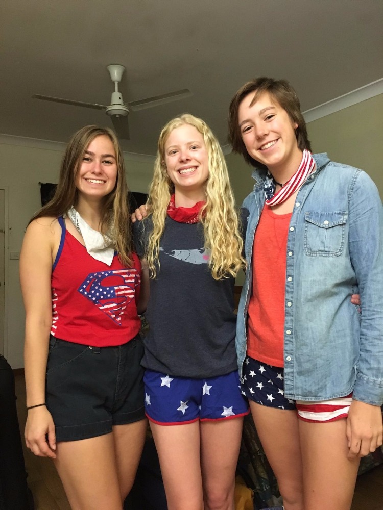 The day started early, and some of the girls decided to get dressed in their most festive American attire to celebrate the 4th down under. After loading our things and food into the maxi taxi, we took to make the journey to the Daintree Rainforest Observatory. To get to the DRO, we had to take a very small car ferry across for about 2 minutes. When we arrived at the observatory, we had an induction, which explained all the possible things that could be harmful in the rainforest. Jenna and I were quite afraid of the possibility of seeing any snakes after that conversation. Our first service activity was mulching so we all put on our jeans, sneakers, and sunscreen to brave the elements of the rainforest. I think we all sweat our fair share in the mid-day rainforest heat. It was a very rewarding experience seeing all our hard work finally come to an end and being able to see such a massive difference from when we had first started. We all worked up a big appetite after three hours of mulching. We maintained our American theme and had hot dogs for dinner. Some of the braver people even tried kangaroo hotdogs. I am surprised to say that kangaroo is very good and I sort of liked it. We did our squeeze and told scar stories and shared our favorite songs. Afterward, we tried pineapple tim-tams, which were not the best. I much prefer the original tim-tams. Later in the evening Keeley and Jenna tricked us with their challenging brain games. Finally, we all played black magic with Riley and Meredith. All our hard work was worthwhile, and I know we all came off feeling very good about what we accomplished!