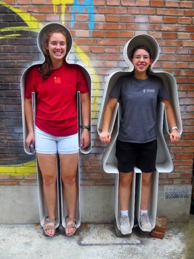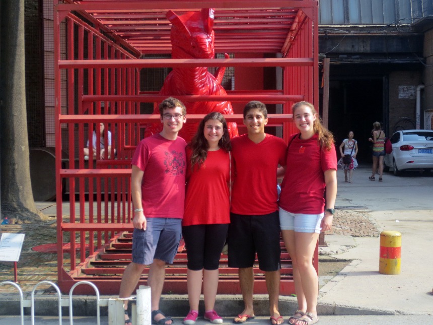 We started today by going to the baby home. The driver played some interesting music on the way to Little Flower. The lyrics are not PG, so I’m going to skip quoting them. However, I think it’s pretty safe to assume that the driver had no idea what he was playing. After the babies, we came back to the apartment and ate some tacos. Then, we left for the 798 art district. There were a lot of galleries there and tons of cafes. Unfortunately, Chris did not find that super specific pencil he was looking for. However, Ben did locate an interesting lollipop. Then, we headed to the Western market to stock up on some snacks before our trip tomorrow. On our way there, Mary threw up in Thomas’ house. We lost Chris in the supermarket, but luckily, Mary retrieved him from the depths of the frozen section. We were all happy to hear that he tracked down that pencil he wanted. Finally, the driver took us back home. We were excited to eat dinner, but the cook made some food that was a little too adventurous for us. Most of us ended up eating leftovers or eggs. Ben and Thomas put on a concert for us while we ate dinner. For dessert, we had a wonderful, egg-less cake made by Catherine in honor of Emily’s upcoming departure. We are going to miss Emily, and I’m sure we will be out of our comfort zone when she leaves.