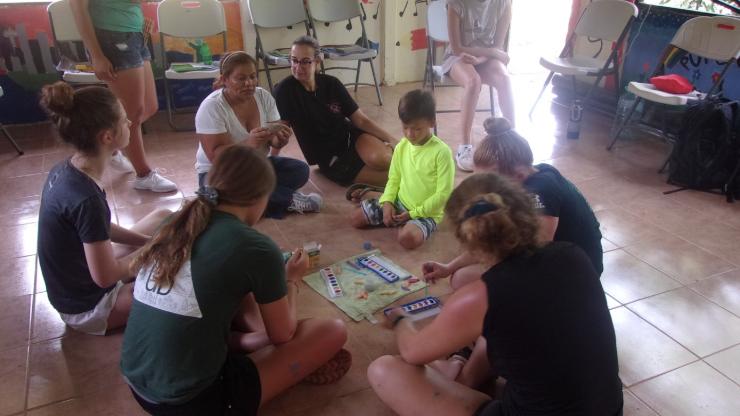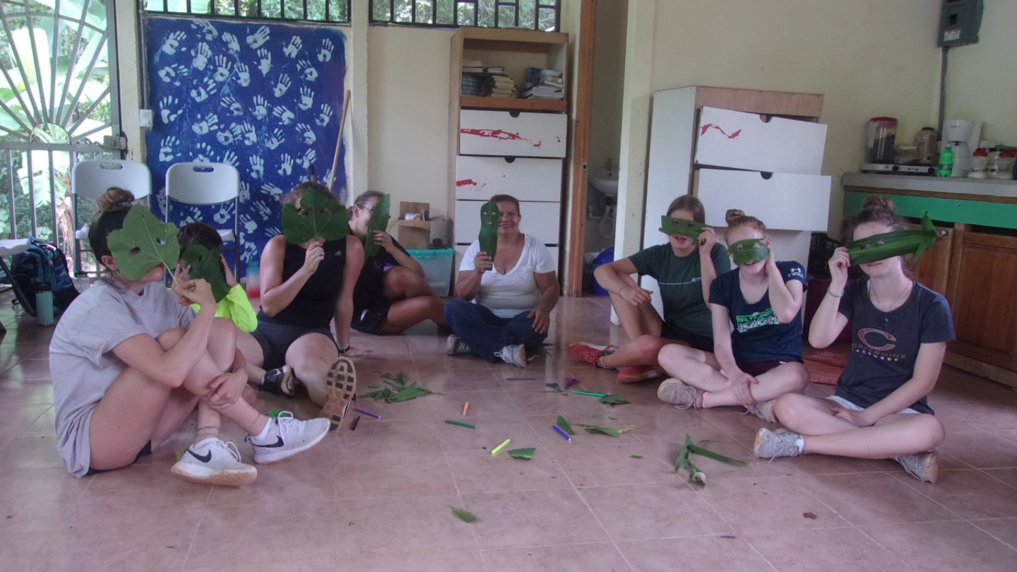 Arriving back at the school, we set back to work and finished up the space. Also, while taking a break from the heat, we participated in activities with one of the kids. We discussed nature and its involvement in everyday life. While talking about these topics, we completed activities such as painting rocks, creating murals on pieces of paper, and making masks out of leaves, all while discussing their significance to us/each other. Fatima, the mother of Gloria, who was the teacher at the school in La Carpio, taught/described each activity in detail and explained how nature impacted her life. After putting the finishing touches on everything and giving Fatima some toys, we headed back home to the apartment. We got back and got ready to start cooking our dinner consisting of salad, chicken tacos, and brownies, but we encountered a short downfall when the power went out for about an hour. It was fun, though because we listened to some music and had a mini dance party. With the power back on (and starting a bit late on dinner), we started cooking with Enrico on the chicken and the others prepping the salad, brownies, and veg. Hugo arrived a bit early, so we turned on the US vs. another team that I cannot recall at the moment, and he was really into it. We chatted with him about his grandchildren, and soon after, dinner was served. It was delicious, and the brownies were scrumptious! After a few laughing fits this vlog has come to an end and so has the day. Now off to pack and prep for the indigenous tomorrow! Cannot wait and thanks for tuning in!