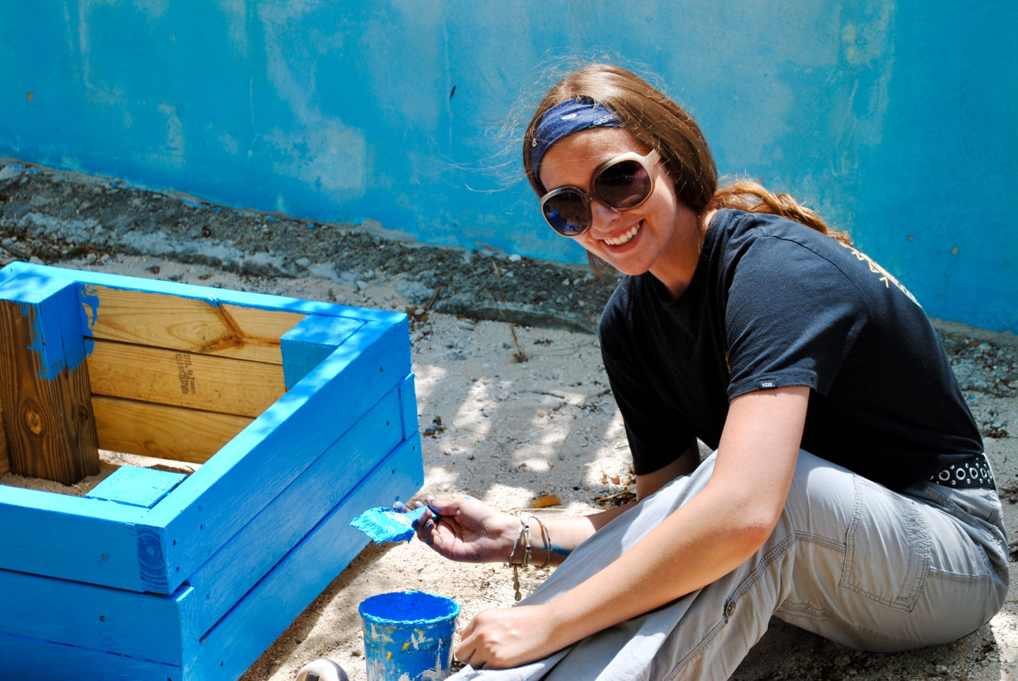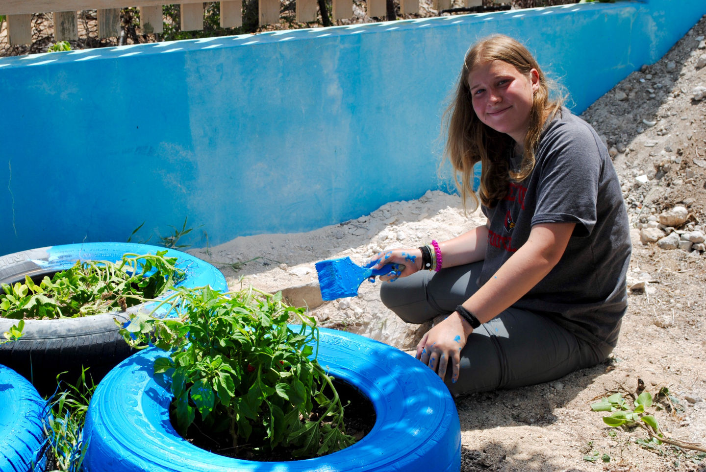 Today I woke up outside on the trampoline to the beautiful sunrise. We had breakfast burritos and cereal, and then quickly headed out to shore to start our new service project. My friends and I headed to a school in Anegada and started working right away. We painted garden boxes and tires that will be used for the school’s new garden. There was a student in the primary school helping us out that later came up to me and said, “I can’t wait for my friends to see this. They’re going to be so excited!” That was one of the most heartwarming feelings: knowing that I was making a small difference. Afterwards, we made our way back to the boats and sailed to a more secluded part of the island where we went swimming. My friends and I took pictures in front of the sunset and took underwater videos with the GoPros. We finished the night with our saltwater showers and dinner which was Thanksgiving themed. We had mashed potatoes, stuffing, cranberries, and unlimited gravy! Overall, today was an incredibly wholesome, happy day with a lot of thankful moments.