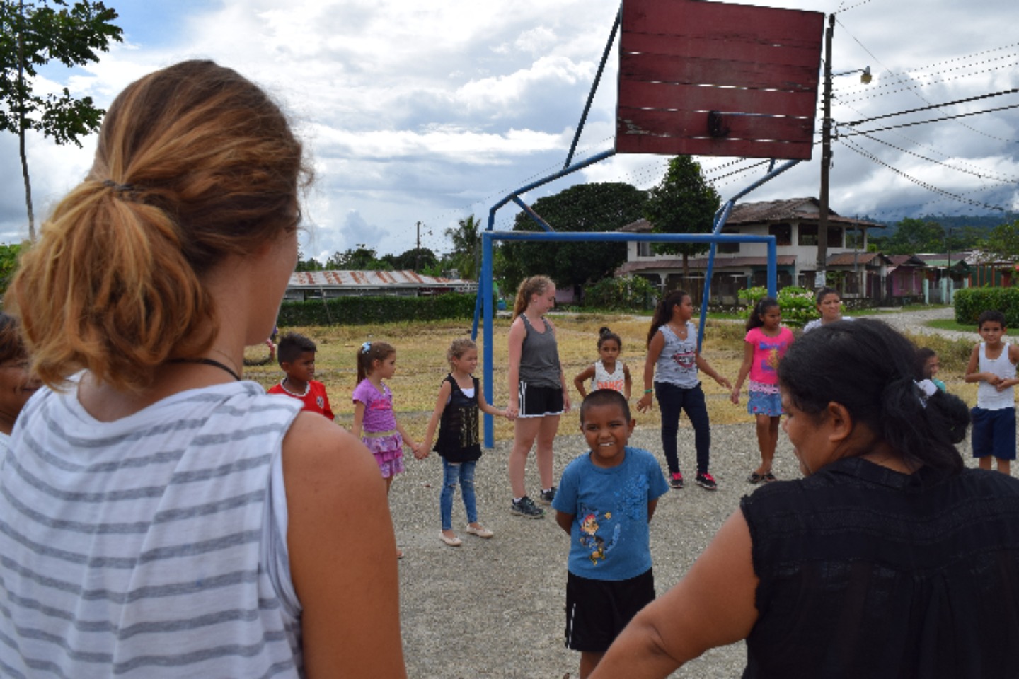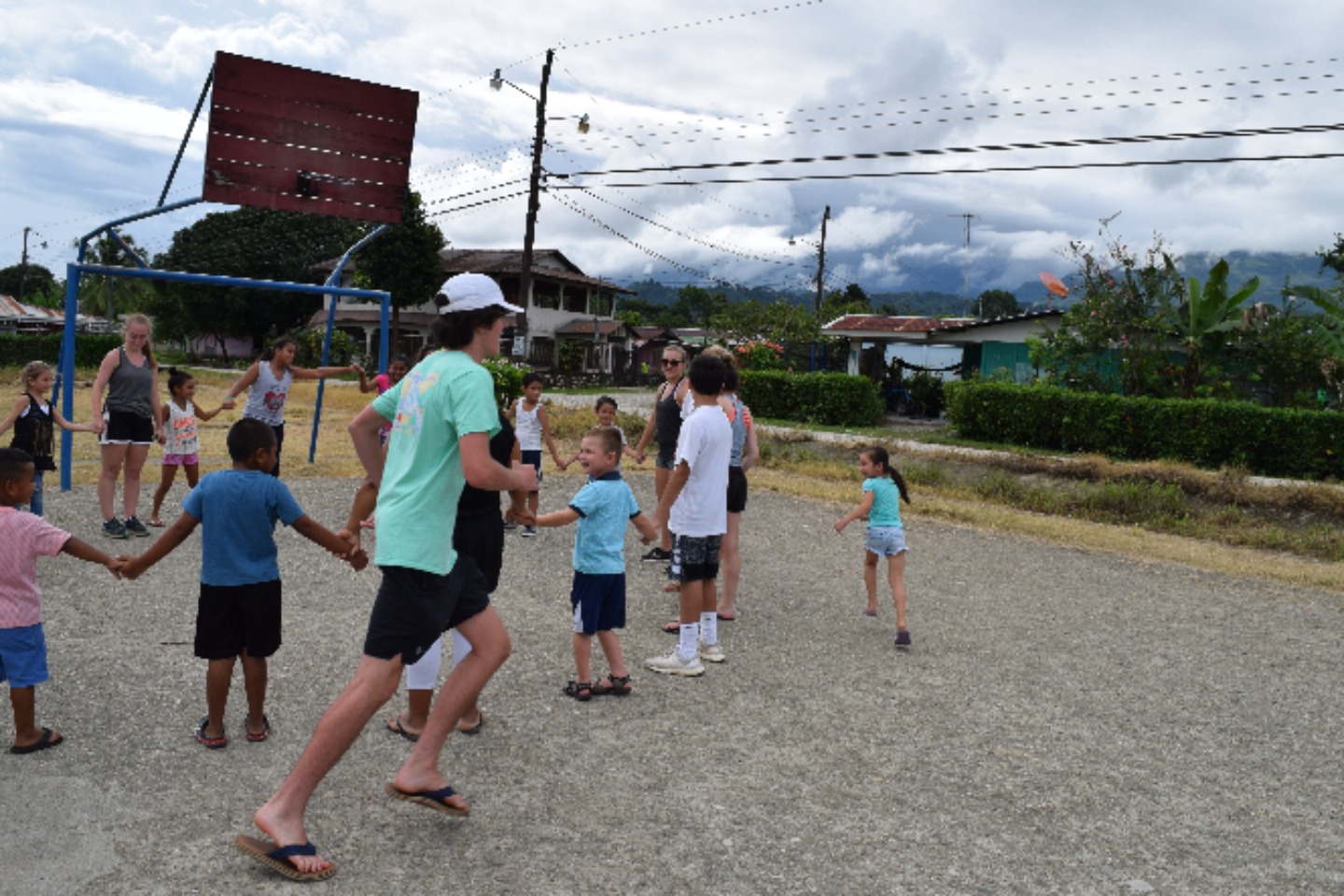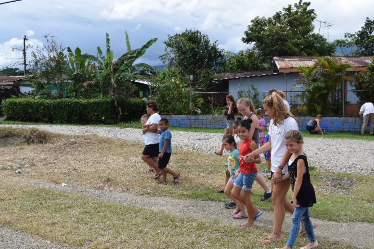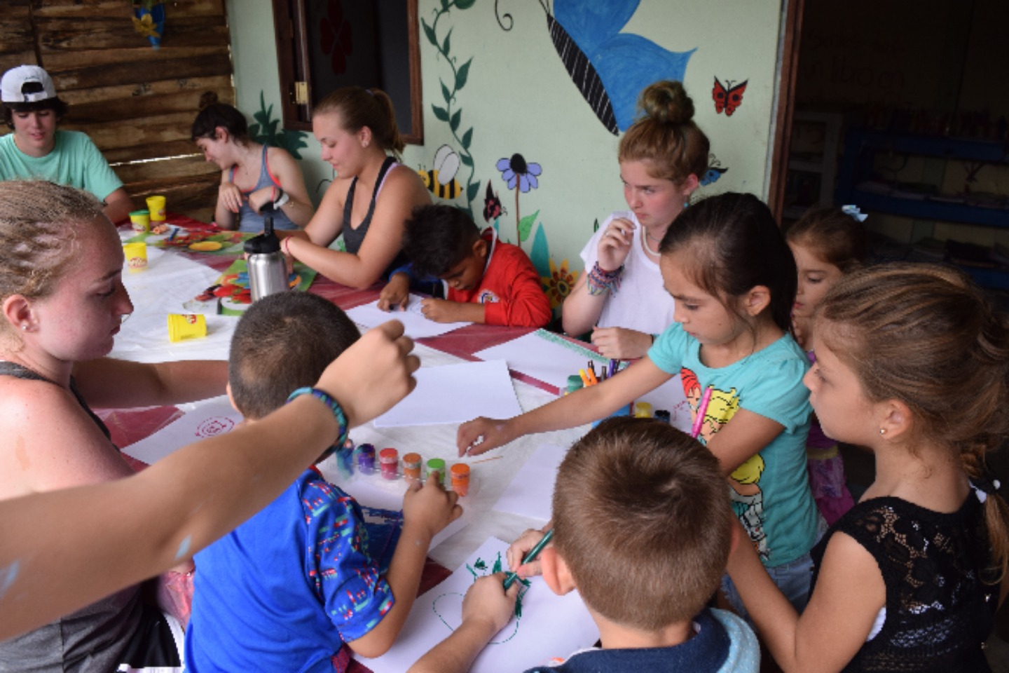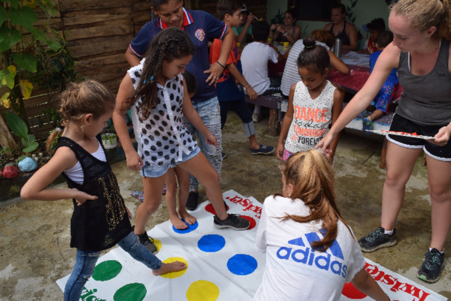 The day started, as usual, we ate breakfast at the hotel, in Golfito. Then we gathered our things and got ready to spend the day doing Costa Rica charity work at Fatima’s Humanitarian Foundation in Rio Claro. As soon as we arrived there, we started working because there were several tasks that we had to complete before it started raining. The group divided into three teams; the first team had to finish painting the wall in a man’s house, the second group had to repaint an outdoors brick wall, that the rain had washed off, and the third wall had to paint some rubber wheels and a mural in the wall of the local park of the village.