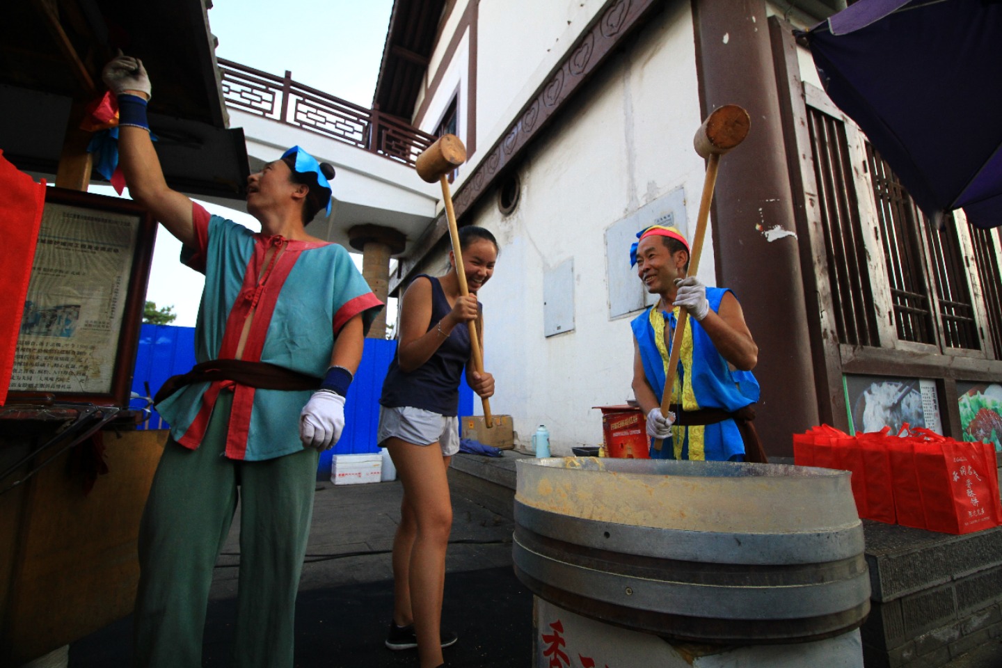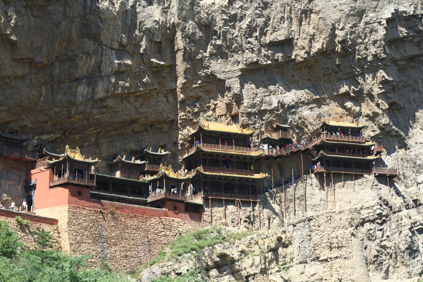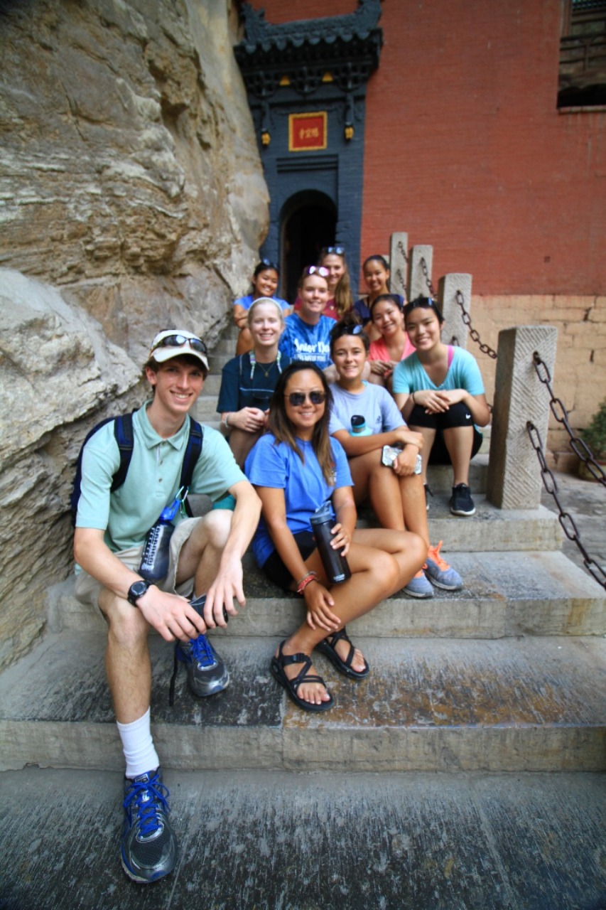 Even though today was our first and last day in Datong, it was still an amazing day! We had just the right amount of time to soak in the entire city! In spite of late train arrival and a head cold that’s going around the group, we pushed through and tried to make the best out of our only day here. After a breakfast of toast with jelly, we headed to the Hanging Monastery for our first activity of the day. The monastery was beautiful, and it was so worth the wait in the line below. To pass the time, we tried to guess what time we would make it to the end of the line. All of our guesses were within a minute of each other, so it was so much fun to either race or slow down at the top. Bex won, even though Shaun said he won (his phone was off)! The monastery was super high, but the tight stairs and narrow passages made the whole experience ten times more fun! When we made it all the way down, we went to lunch in a hotel with a private fancy room for us to dine in. After lunch, we made our way to the Buddhist caves! The caves were so beautiful and so much bigger than everybody expected. To get through the caves, we had to push through a bunch of huge tour groups, but that made for another funny experience! We made it just in time for the museum at the end, with exactly 10 minutes to explore the museum. It was not large, but the artifacts were fascinating to look at. At dinner, we had a great last meal in Datong. It was funny to see the shirtless Chinese men just eating their dinner in the room next to us! Since we had some time to kill before our train, our bus driver took us around to his favorite spots along the way. We stopped at a nice bridge, where everybody got great pictures. We also stopped at a park, which was very busy for a Monday night! Lots of people had bright balloons, and the kids were riding all sorts of neon glowing bumper cars and toy motorcycles. We wandered over to the lake on the far side of the park before leaving to catch our train. Today ended up being a great quick trip to Datong, and we all wished to stay longer – the city was amazing!