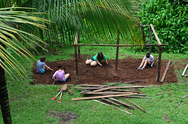 Another fun day at the Finca! Work continued on projects like restoring the cabin and building the greenhouse structure for the garden. For lunch, we enjoyed a meal packed by our host moms, and then it was back to work. At the end of the day, we put away all of our supplies because we won’t be back to the Finca until after our weekend excursion. Afterward, we dispersed to our home-stay families then met together at Ana’s house for a movie. The film was about a Nicaraguan child’s life during the war and gave us insight as to why Nicaraguan families fled to Costa Rica and created communities like La Carpio. About half way into the movie the TV had technical difficulties, so Jason explained the ending to us.