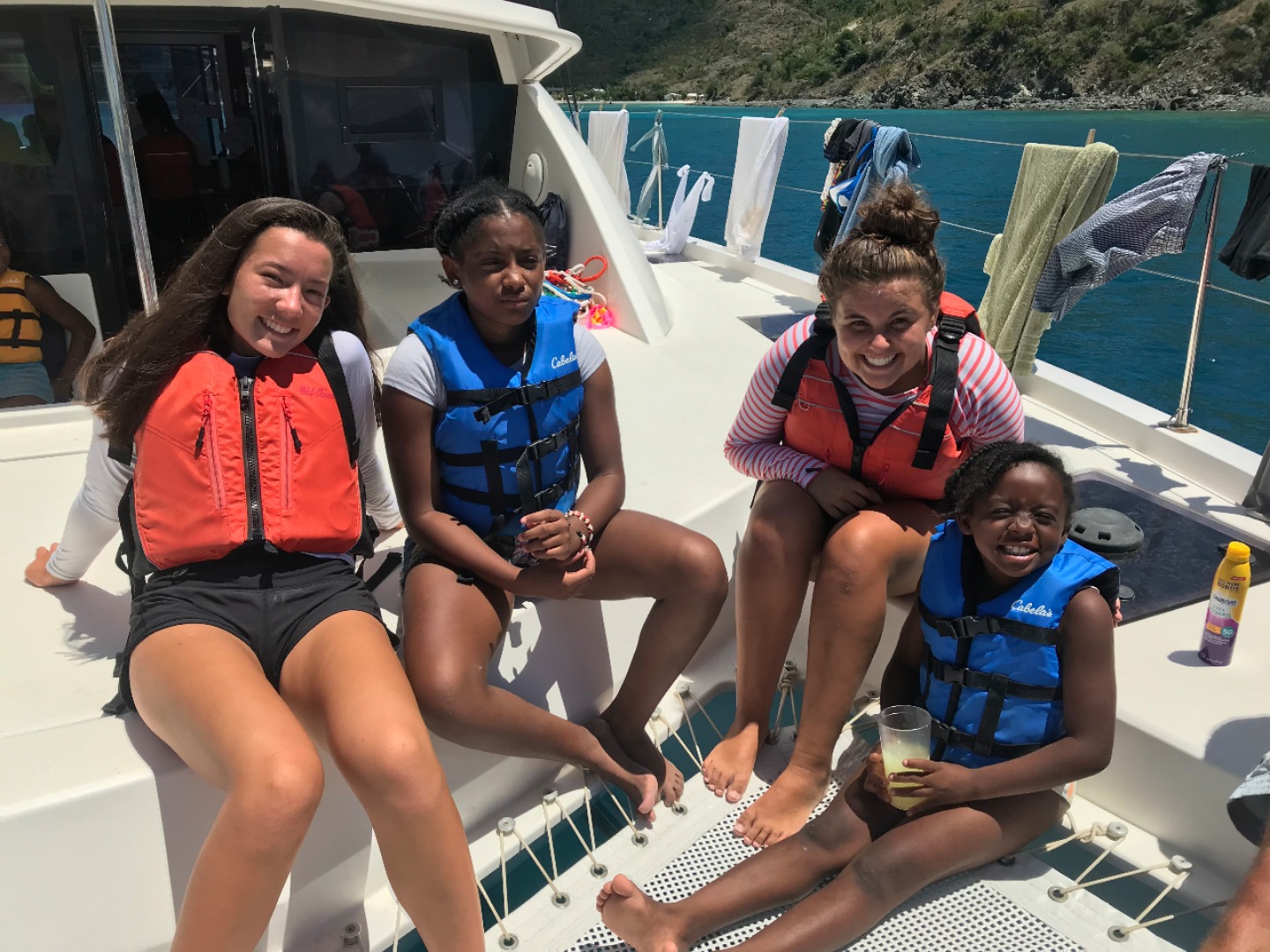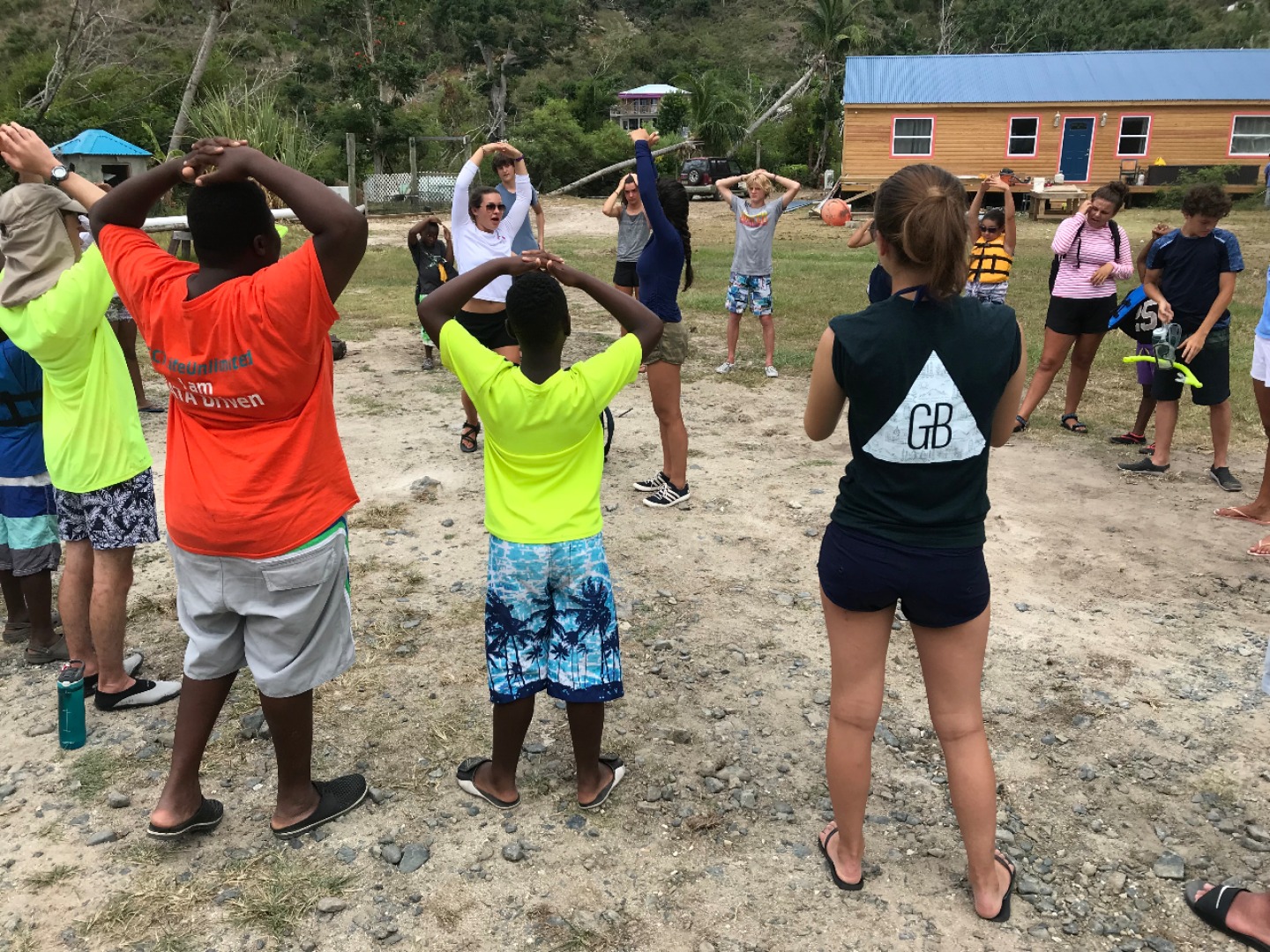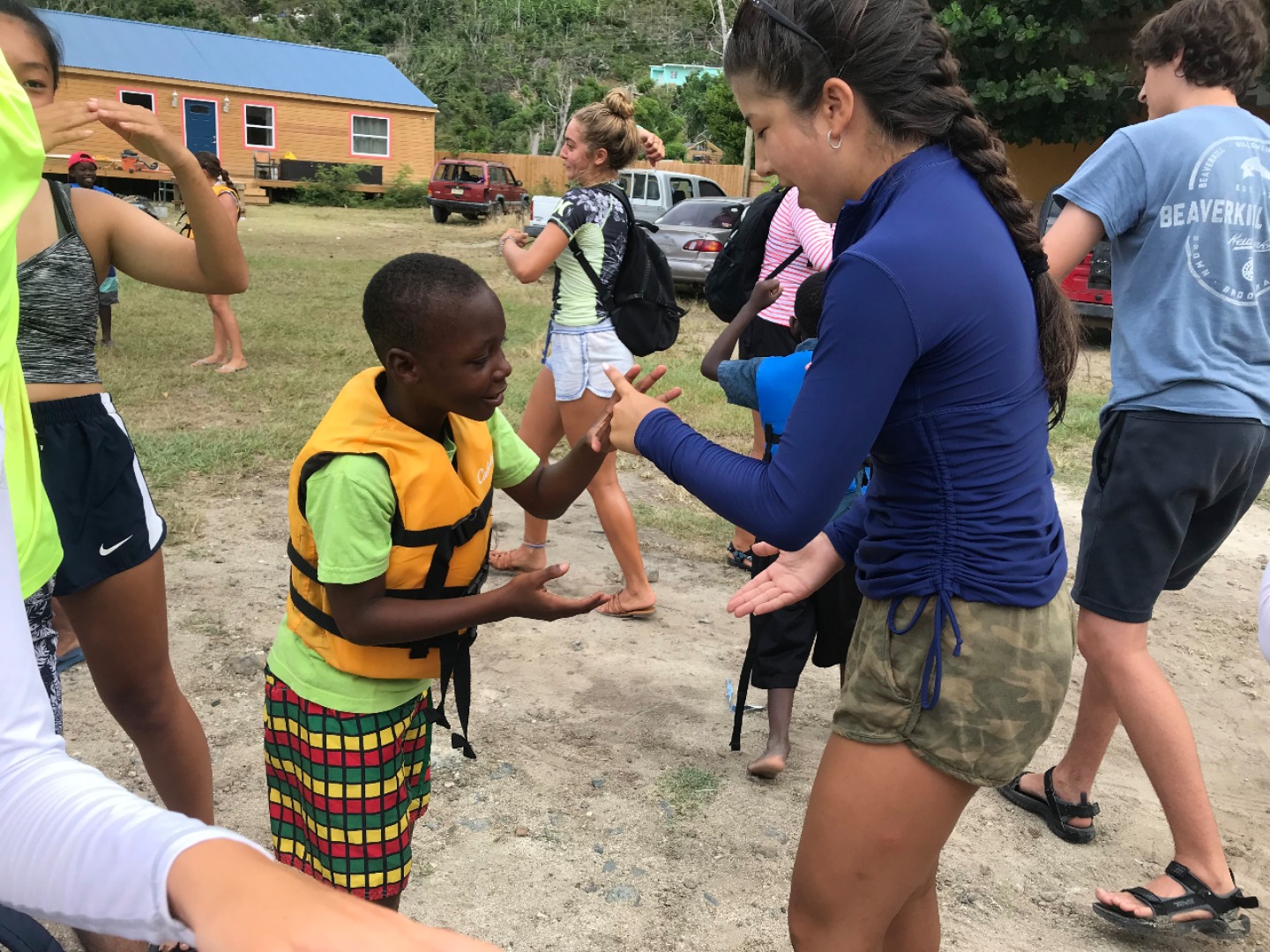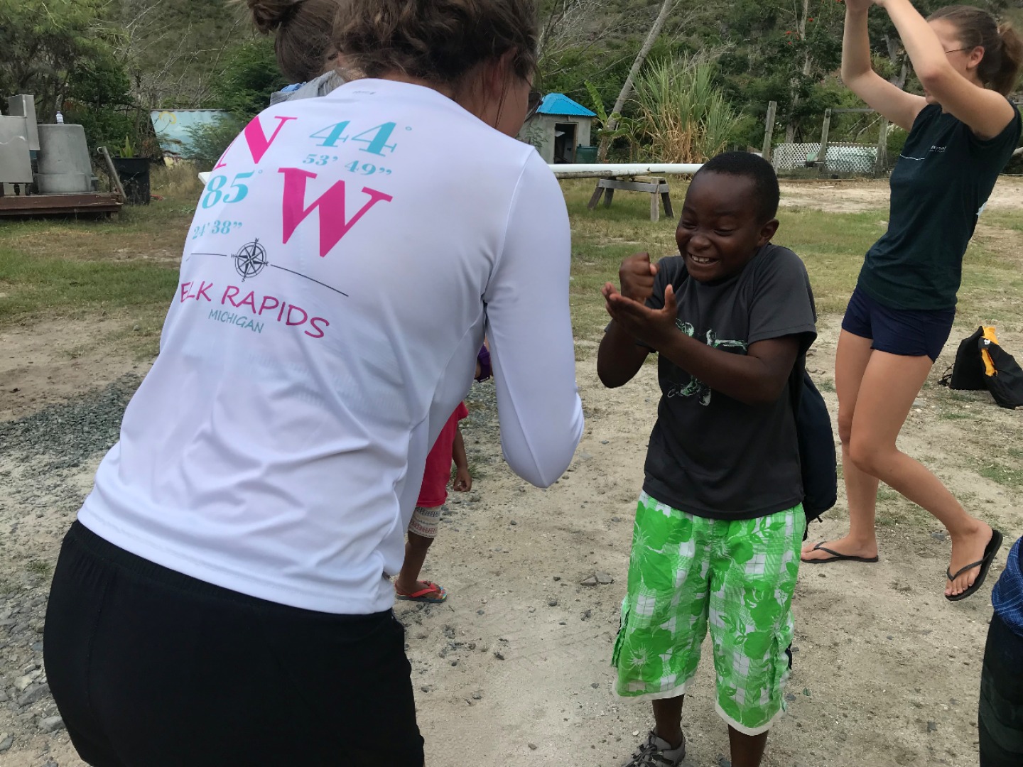 Today was a different day for us working for Preserving Paradise. We got to sleep in until around 7:45 AM in comparison to the 6:30 wake up for Rebuilding Island Life. For breakfast, my usual choice is the “Special K” cereal, but there was none left so sadly oatmeal became my last resort. As the skipper, I had to get everybody up and going because we had a big day planned with the children of Jost Van Dyke ahead of us. After breakfast, we took the dinghy out to the dock near Foxy’s where the kids were waiting for us. When we got there, we played a couple of games with them to burn some time and get to know them. By the time the games came to an end we all chose a partner to watch over and hang out with for the day, and my partner’s name was Derrick. After that, we took them to the other GoBeyond boat, and we started the motor to the dock at Foxy’s Taboo. There we spoke about how Irma massively affected the mangrove tree population, and we worked on planting more mangroves and picking up some trash on the beach. Derrick was in the 5th grade, and he was a hyper kid and was always running around the boat and going into the cabins to look around. He had me out of energy by the first 20 minutes of the trip, but he was a great kid. When we finished working on the beach, we got back onto the boat and motored to a tiny little island called “Sandy Spit.” The island was just a small beach which we swam at for hours and played around with each of our partners. We later sailed back to Jost Van Dyke where we dropped off the kids including Derrick. We cleaned up after the kids then took the dinghy back to our boat to get ready for the barbecue which was also on Sandy Spit. We were out of the water so we couldn’t shower and it was too late to shower anyway, so we just got changed and went. We had burgers and hot dogs at the barbecue where I met back up with my brother who I haven’t seen in a few days which was great. It was overall just fun and long day and one of the better ones out of the trip, and it was a great experience to help get the children to get off of their island and have some fun.