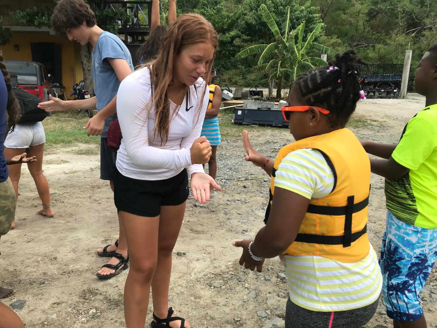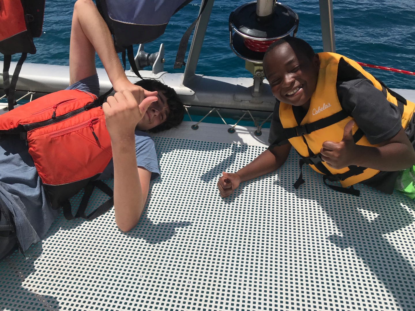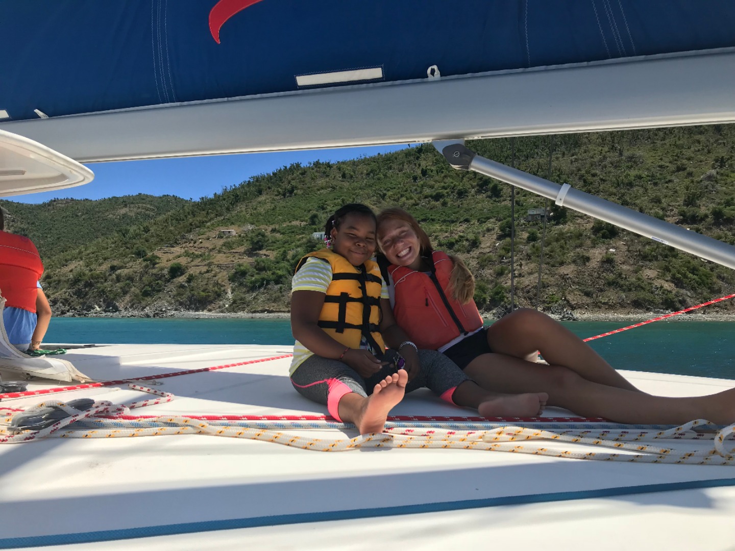 Today was a different day for us working for Preserving Paradise. We got to sleep in until around 7:45 AM in comparison to the 6:30 wake up for Rebuilding Island Life. For breakfast, my usual choice is the “Special K” cereal, but there was none left so sadly oatmeal became my last resort. As the skipper, I had to get everybody up and going because we had a big day planned with the children of Jost Van Dyke ahead of us. After breakfast, we took the dinghy out to the dock near Foxy’s where the kids were waiting for us. When we got there, we played a couple of games with them to burn some time and get to know them. By the time the games came to an end we all chose a partner to watch over and hang out with for the day, and my partner’s name was Derrick. After that, we took them to the other GoBeyond boat, and we started the motor to the dock at Foxy’s Taboo. There we spoke about how Irma massively affected the mangrove tree population, and we worked on planting more mangroves and picking up some trash on the beach. Derrick was in the 5th grade, and he was a hyper kid and was always running around the boat and going into the cabins to look around. He had me out of energy by the first 20 minutes of the trip, but he was a great kid. When we finished working on the beach, we got back onto the boat and motored to a tiny little island called “Sandy Spit.” The island was just a small beach which we swam at for hours and played around with each of our partners. We later sailed back to Jost Van Dyke where we dropped off the kids including Derrick. We cleaned up after the kids then took the dinghy back to our boat to get ready for the barbecue which was also on Sandy Spit. We were out of the water so we couldn’t shower and it was too late to shower anyway, so we just got changed and went. We had burgers and hot dogs at the barbecue where I met back up with my brother who I haven’t seen in a few days which was great. It was overall just fun and long day and one of the better ones out of the trip, and it was a great experience to help get the children to get off of their island and have some fun.