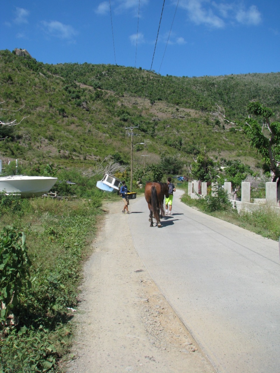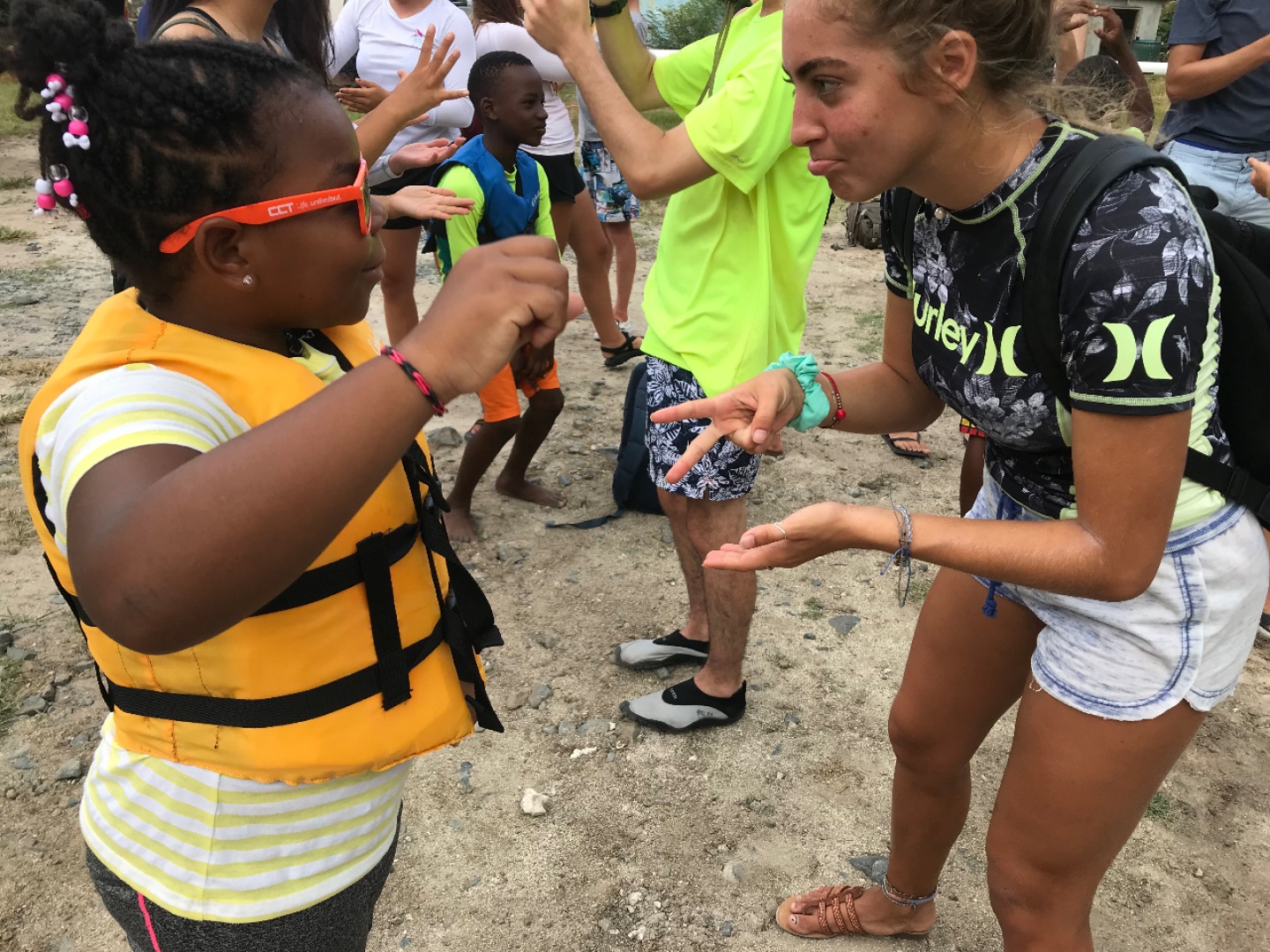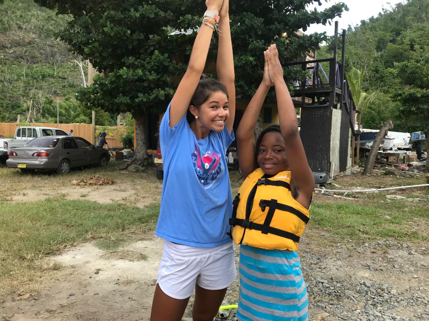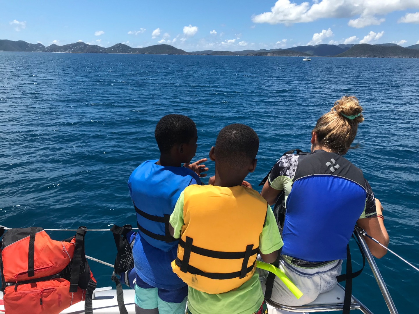 Today was a different day for us working for Preserving Paradise. We got to sleep in until around 7:45 AM in comparison to the 6:30 wake up for Rebuilding Island Life. For breakfast, my usual choice is the “Special K” cereal, but there was none left so sadly oatmeal became my last resort. As the skipper, I had to get everybody up and going because we had a big day planned with the children of Jost Van Dyke ahead of us. After breakfast, we took the dinghy out to the dock near Foxy’s where the kids were waiting for us. When we got there, we played a couple of games with them to burn some time and get to know them. By the time the games came to an end we all chose a partner to watch over and hang out with for the day, and my partner’s name was Derrick. After that, we took them to the other GoBeyond boat, and we started the motor to the dock at Foxy’s Taboo. There we spoke about how Irma massively affected the mangrove tree population, and we worked on planting more mangroves and picking up some trash on the beach. Derrick was in the 5th grade, and he was a hyper kid and was always running around the boat and going into the cabins to look around. He had me out of energy by the first 20 minutes of the trip, but he was a great kid. When we finished working on the beach, we got back onto the boat and motored to a tiny little island called “Sandy Spit.” The island was just a small beach which we swam at for hours and played around with each of our partners. We later sailed back to Jost Van Dyke where we dropped off the kids including Derrick. We cleaned up after the kids then took the dinghy back to our boat to get ready for the barbecue which was also on Sandy Spit. We were out of the water so we couldn’t shower and it was too late to shower anyway, so we just got changed and went. We had burgers and hot dogs at the barbecue where I met back up with my brother who I haven’t seen in a few days which was great. It was overall just fun and long day and one of the better ones out of the trip, and it was a great experience to help get the children to get off of their island and have some fun.