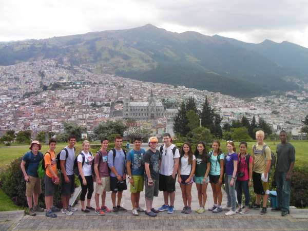 The day started bright and early at 7:30 am. For some of us (cough, Brittany 🙂 it was an abrupt change from the normal wake up time for a summer day. We had breakfast at the hotel while our bus came to pick us up. We went to Parque Itchimbia, a beautiful green space that sits on top of a hill overlooking Quito. We spent the morning exploring the park, playing games, and getting to know each other. In the afternoon, we were met by our tour guide, Estafania, who took us around Quito pointing out the sights and scenery. We got to climb to the Basilica of one of Quito’s oldest churches, met some locals, toured the government plaza, and ate our first empanadas. We came back to the hotel exhausted and took some quick showers before eating dinner and ending the evening going over some key information for the rest of the trip. We had an early night so we could start packing and get ready for the Galapagos manana! We’re all pumped.
