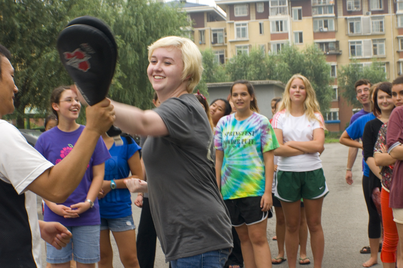 At 7:00 the lights on the train came on, it was time for everyone to wake up. As we ate breakfast and packed our belongings up, we were fast approaching the Beijing train station. Some of us made friends with the local people; we said our goodbyes and hopped off the train. The night before, on the train, we spent choreographing for our flash mob. Hannah, the counselor, told us we had to perform What Makes You Beautiful by One Direction. We were ready for the challenge. We found a crowded area, dropped our bags and got in position. Stephanie started us with a countdown to get everyone’s attention. Despite having only a couple hours to put it all together, it went well! People pulled their phones to take videos and pictures, we definitely got everyone’s attention and probably made their day… hopefully we did! We got back to the apartment at noon and took much-needed showers! Mac n’ cheese and salad was on the menu for lunch, thanks to the girls who volunteered to make it. For our afternoon activities, we had service and a martial arts lesson. Half of us went to the group home, and the other half went to the baby home. We all missed the kids while we were away and we were excited to spend more time with them. After service, we returned to the apartment for our martial art lesson. We started with a warm-up and eventually got to the kicking and punching routines. I think everyone’s favorite part was learning self-defense. We learned how to potentially break someone’s wrist and how to put someone in a lock and hold the position. Dinner time came around, which consisted of the usual dishes, rice a veggie dish and meat! Next, we had our nightly forum; this one was different.
