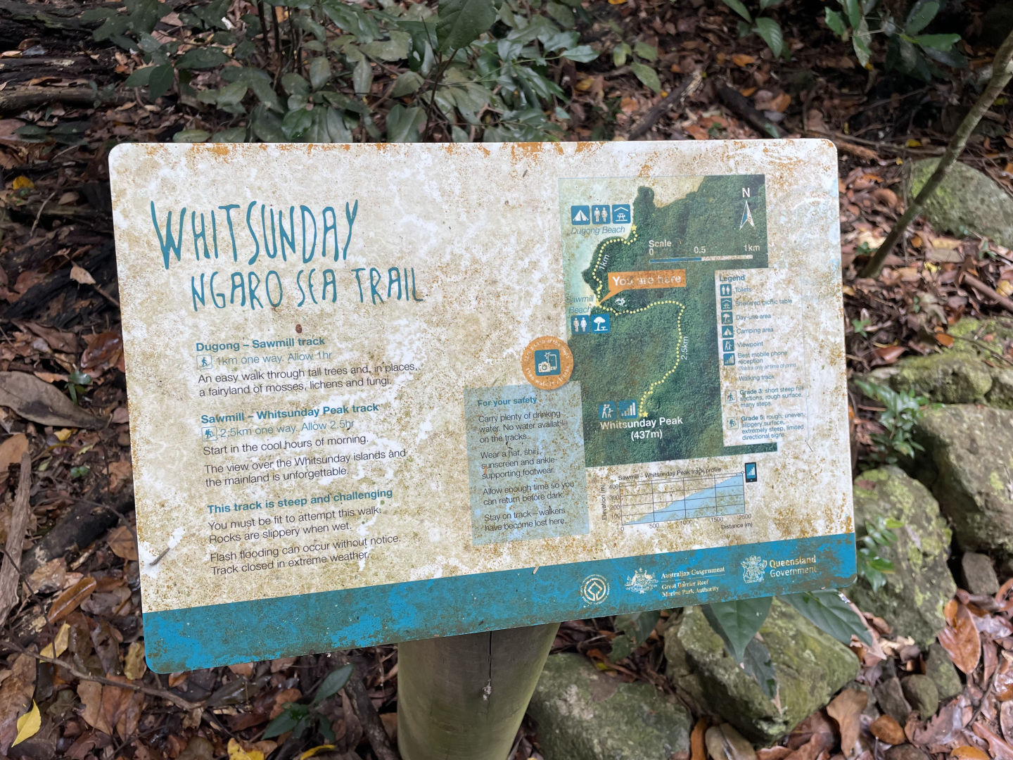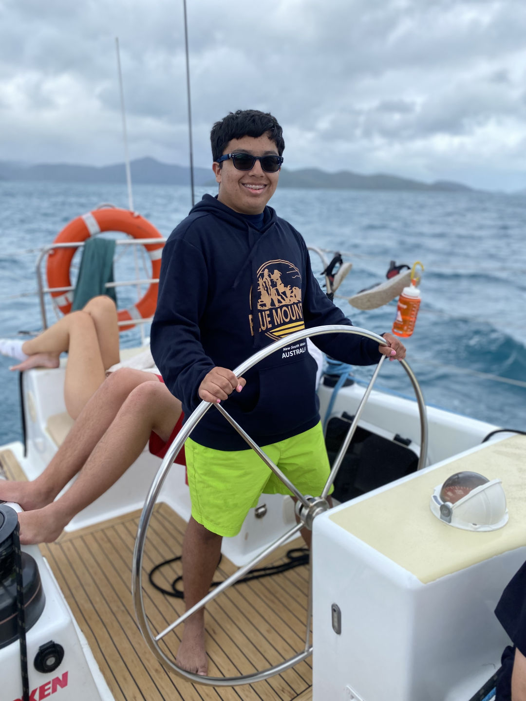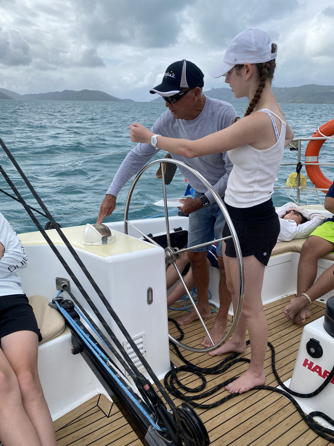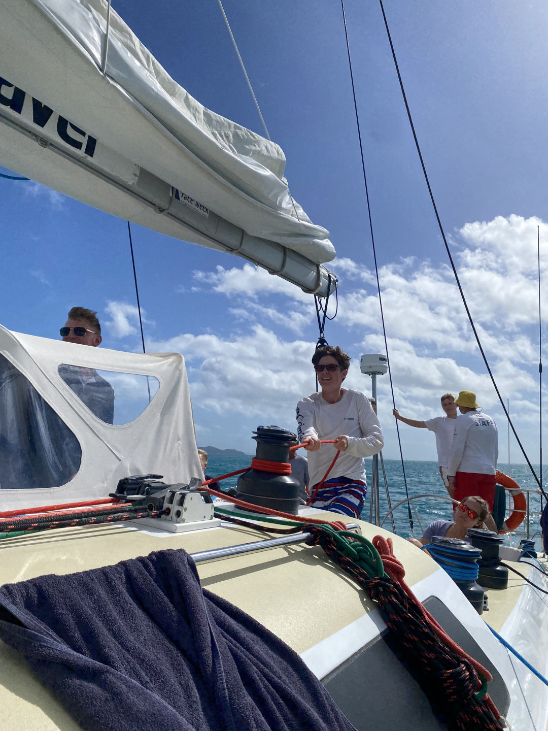 Today, we had another early wake-up at 6:30 and a delicious breakfast at 7:00 provided by our accommodating boat staff, Tom and Mal. Tom and Mal have both been accommodating and positive during our stay in the Whitsundays. From helming our ship, the “Eureka,” to providing delicious charcuterie boards, they have made our stay incredibly enjoyable. After breakfast, we dinghied over to the nearby Whitsunday island for our 5-kilometer hike. The hike brought us to the highest point in all of the Whitsundays, and it certainly felt like it. It took over an hour to get through the steep jungle, however, it was well worth it. The top of the mountain provided a beautiful panoramic view