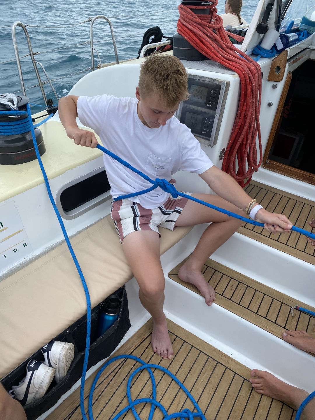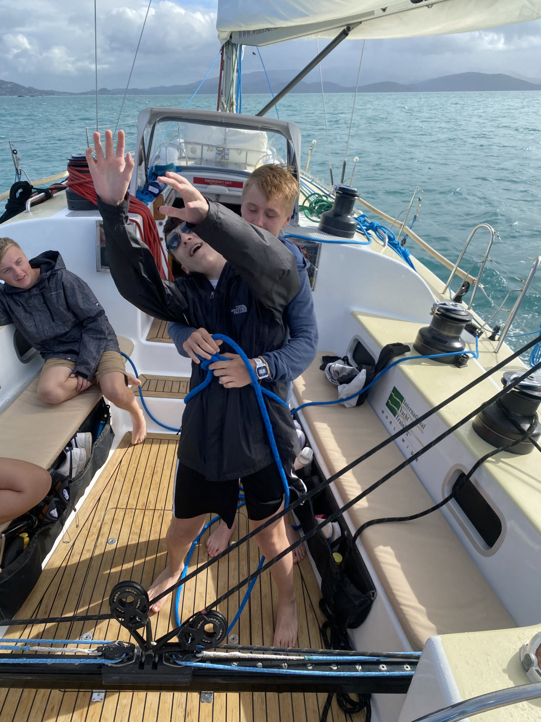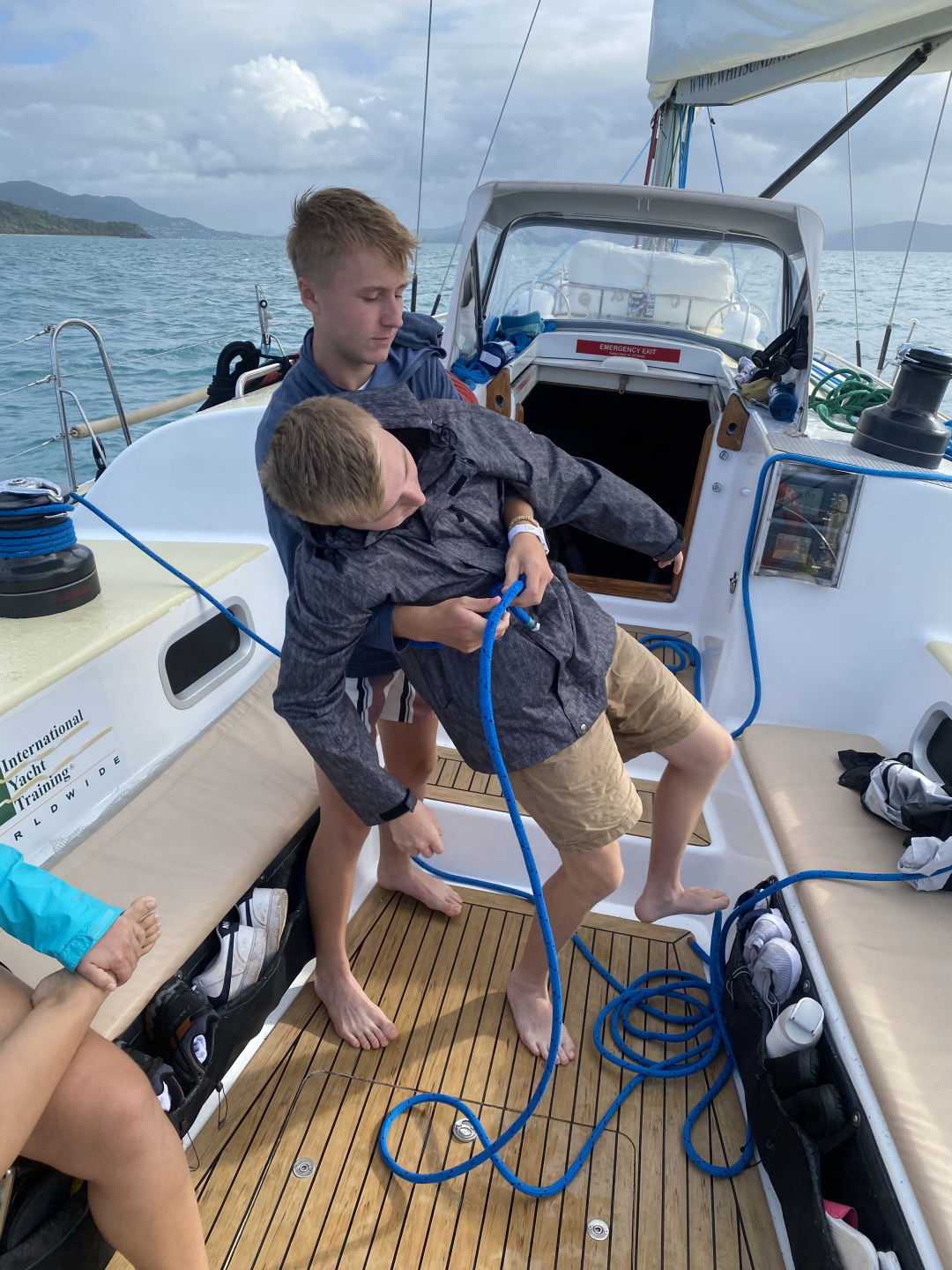 f the nearby islands and the ocean. We soaked in the view and the sun for a little while, then began our descent down the mountain. The hike took us nearly 3 hours, and we certainly earned our lunch of sandwiches, egg salads, and tuna. Once everyone had eaten (and digested), we began our sail back to the marina for our last night on board. The sail was surprisingly peaceful, given the recent weather, and we made it back without any big storms. Once we were back, we docked, did laundry, and showered for our dinner in town. We dressed up for dinner, the girls in dresses and the boys in polos, where we all enjoyed our respective meals of burgers, steaks, and salads. We were met with a light rain shower on our walk back to the boat after dinner, but Steph and Amanda had the brilliant idea to run a final load of laundry through the dryer so we wouldn’t pack any wet clothes for our travel day tomorrow. We are now all relaxing in the galley and packing. Signing off for now, Skyler Brozyna.