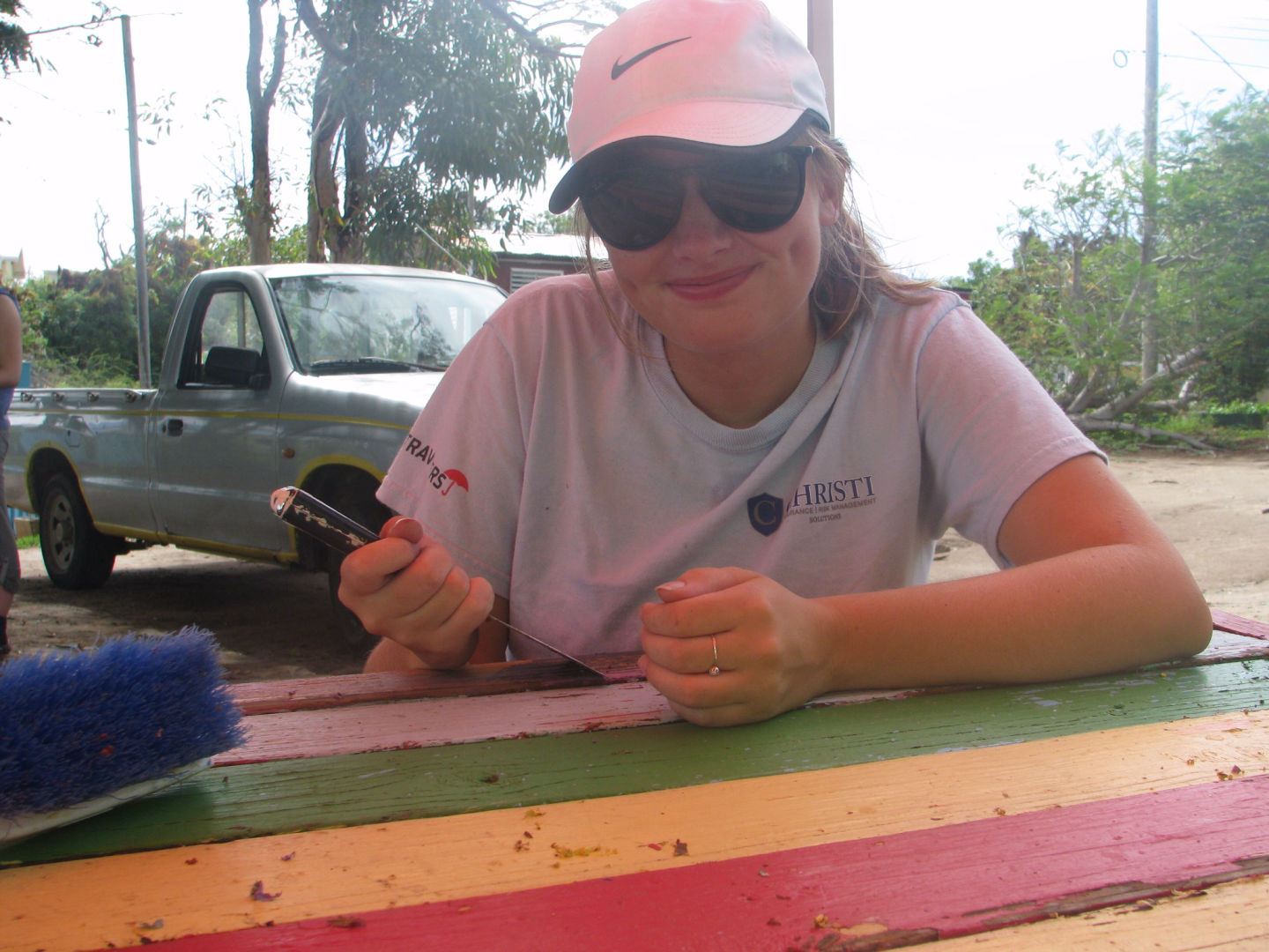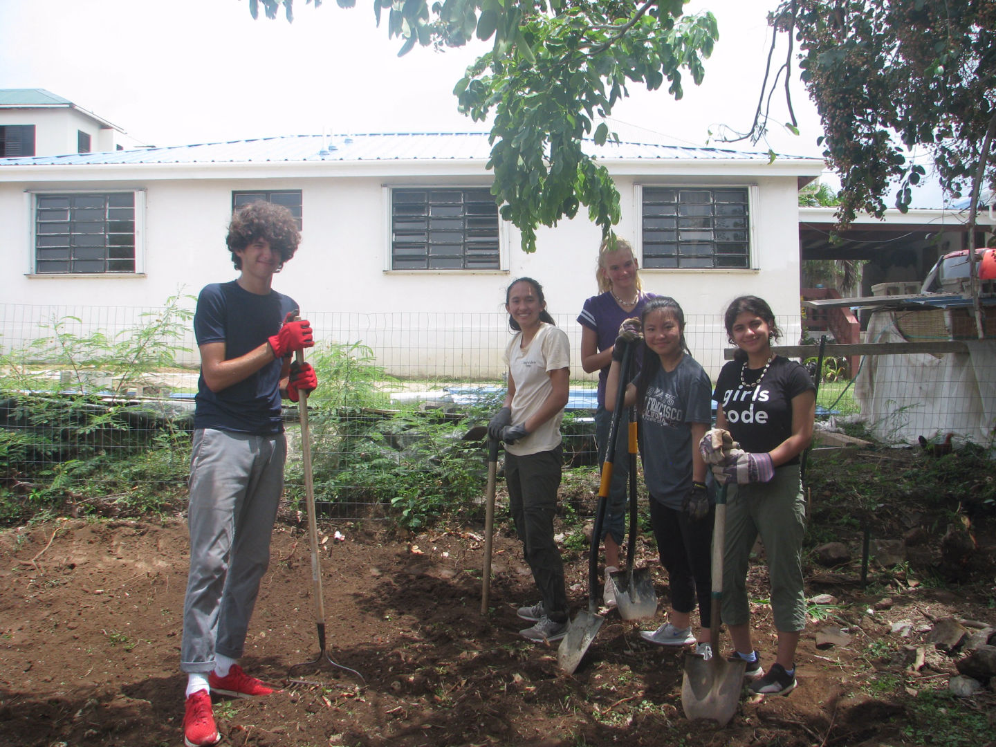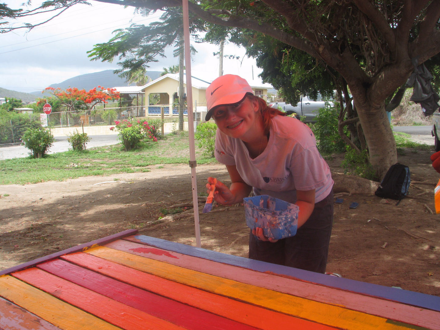 Today was our second full day here in the beautiful BVI’s. We started our day off with a little bit of a sleep-in waking up at 6:45 am, we set sail around 7 am to Spanish town and walked to an elementary school to help finish up the projects the previous sessions had started. We were divided into different groups and began helping where we could. Some fixed up and painted a table, built a new playground, put up ceilings or paneled a greenhouse. Whichever project we were working on everyone was most definitely dripping with sweat. After six long hours of dedicated service, we packed up and headed back to the main boat on our dinghy to get ready for swim lessons with some local kids. We all went over only to find a few kids who needed any lessons, but we all still managed to have fun in the gorgeous turquoise water. Then we had another great dinner made by a few of the crew members. Then we ended the great day off with card games and freshly made brownies.