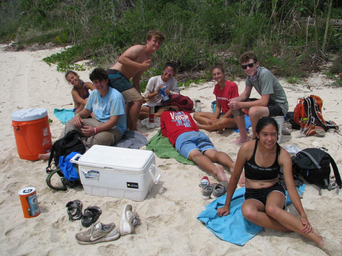 The day started earlier than usual getting to the park at 7:30 and not 8:00. The other part of GoBeyond, Preserving Paradise was going to help us out in the morning because of the amount of work we have to do. Preserving Paradise got there around 8 and started working around 8:15 after we had already been working for half an hour. The other group’s job was to clear weeds in the park and around the parking lot while our group did the other jobs we had been working on over the weekend. We worked until 1 pm so we could go to the beach and eat lunch before getting back to work later in the day. The beach was beautiful, and it felt good to get in the water the last time before we have to go. We had sandwiches and sodas for lunch. After we finished lunch, we went back to the villa to shower and change. In the afternoon the Preserving Paradise people had moved on to another project, so it is just our group working. We did more of the same stuff we started in the morning all afternoon. David and I worked on measuring wood to use as support beams on the bleachers. Since we got back so late from our mid-day break, we stayed until 9:30, working with headlamps and lights until it was time to go back to the villa to eat dinner. We had Mexican night again and yet again it was still delicious.