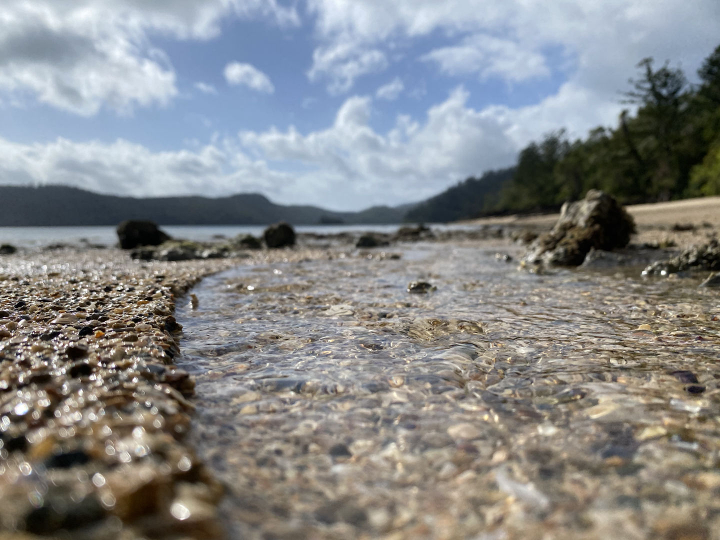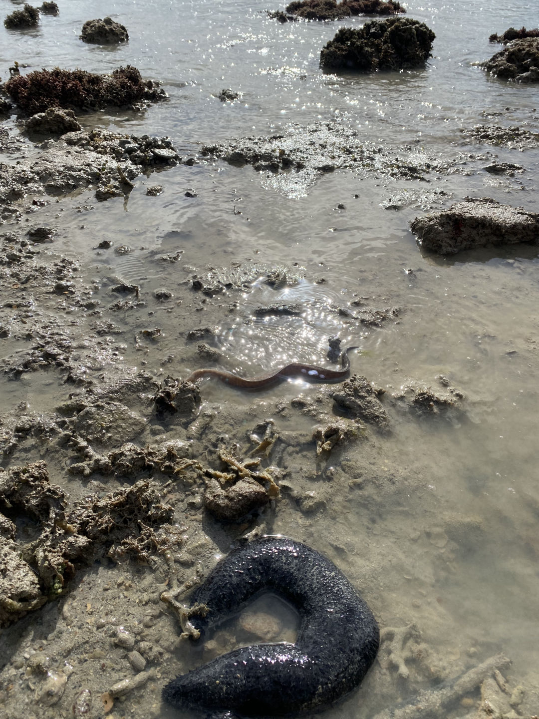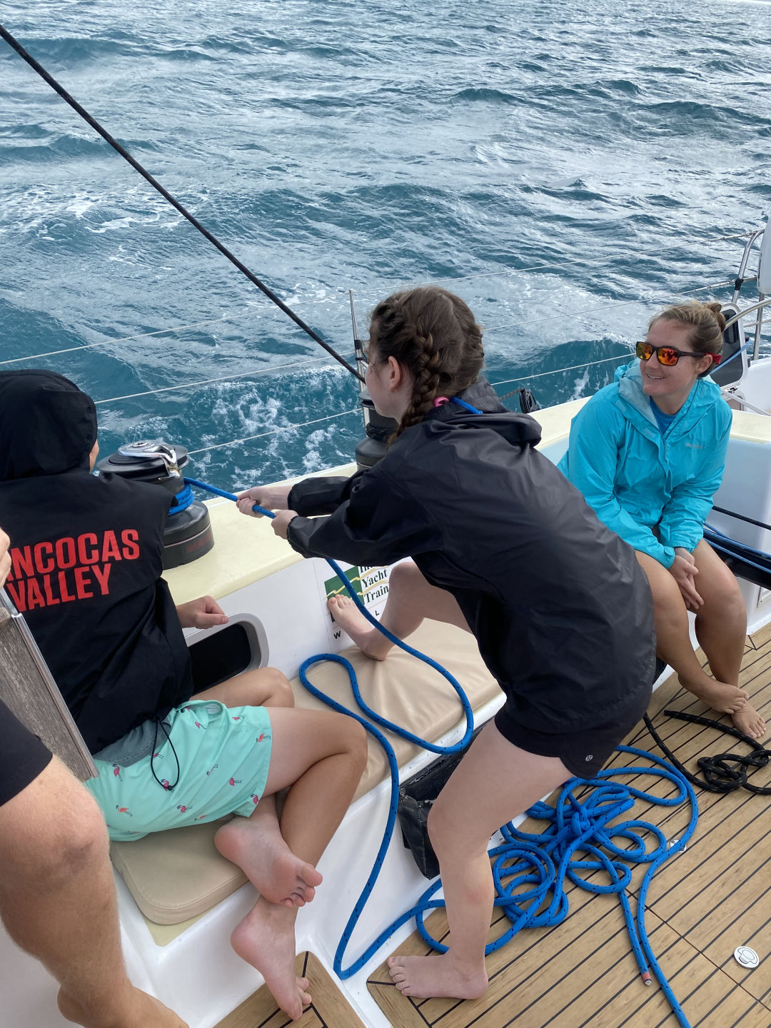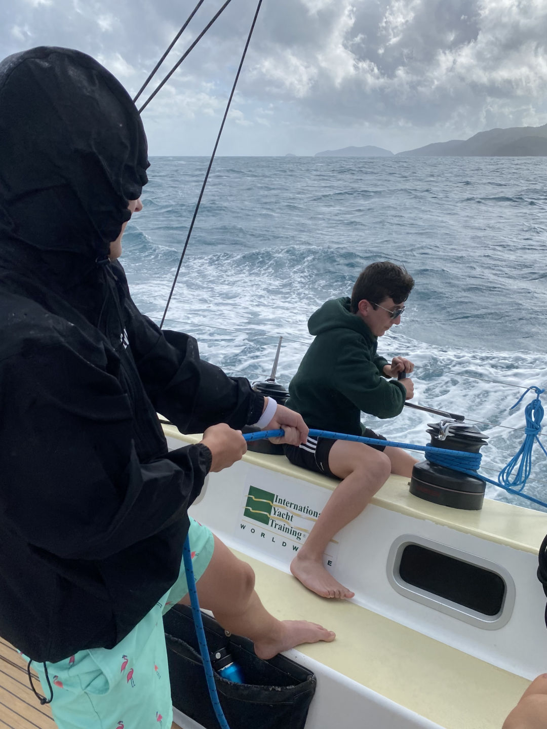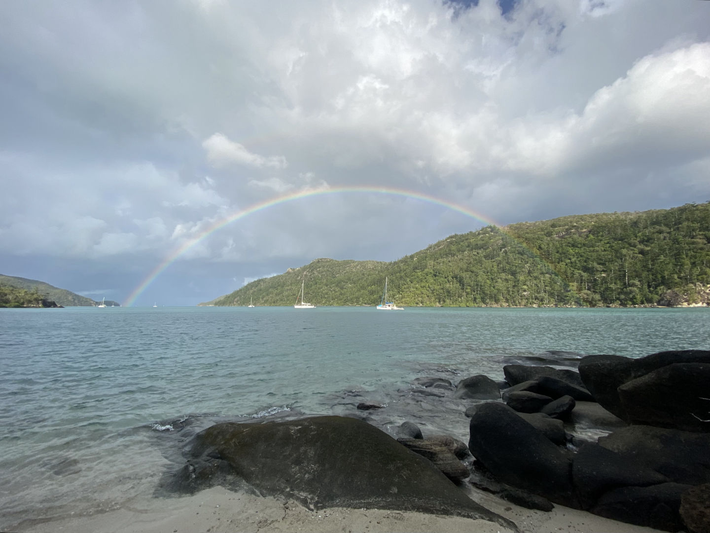 We woke up at around 6:30 to some Disney songs, and after everyone was moving, we ate a breakfast consisting of assorted cereal and some fresh fruit. Then, we went for a short hike to see cave paintings from the native Australians of the region. After the hike, the boat’s crew asked us for some help hoisting both the jib and the main sail. Conditions were thankfully even better than yesterday, and after about an hour and multiple tacks (turning the boat through the wind to change direction), we arrived in Sawmill Bay. Lunch today was ham and cheese wraps with a myriad of toppings to complement them. After lunch, we were dinghied over to Sawmill Beach, where we hiked to Dugong Beach (unfortunately, no dugongs in sight). No swimming was allowed in the bay due to bull shark sightings, so instead, we explored the beach and shallow tidal area. On the way, we saw a very large golden orb weaver spider. At the beach, we found many critters, from crabs to eels to sea slugs. After a brief lesson on the different animals that live in tide pools, we headed back to the boat. There, we saw a beautiful sunset before eating a delicious dinner.