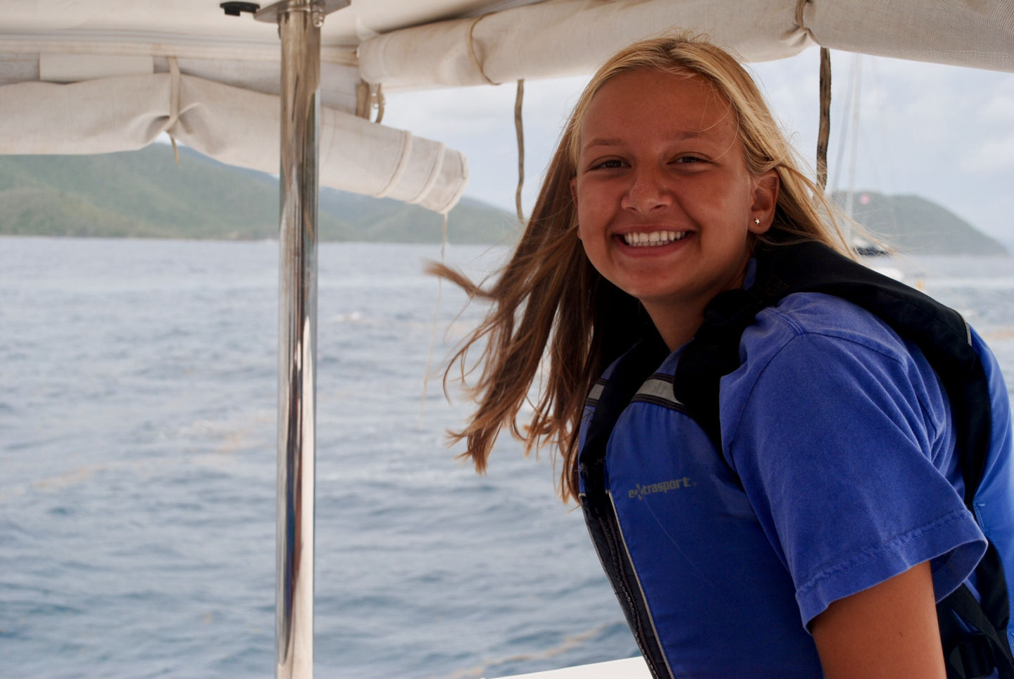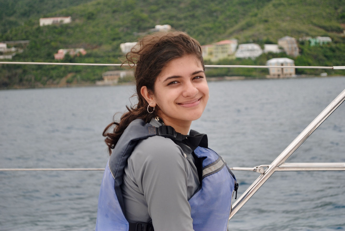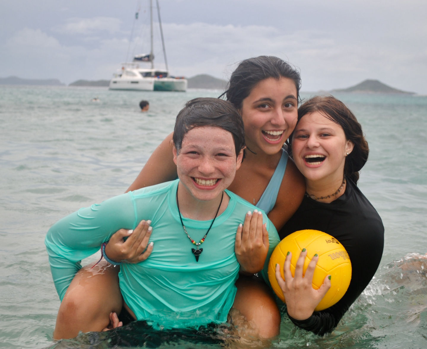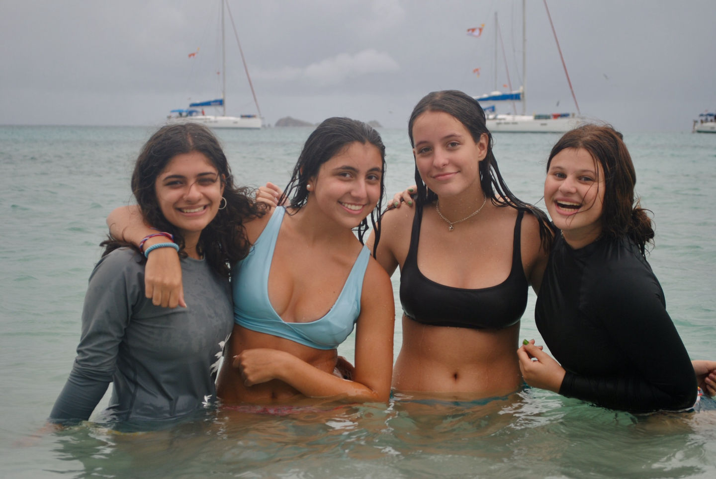 Today was eventful! We woke up bright and early at 6 AM. After a little breakfast and orientation, we were on our way! It was so exciting to leave the dock. It was really windy so that we couldn’t take the swim test around the boat as usual. Instead, we motored to a pool in Road Town and took the swim test with the other GoBeyond boat. Afterward, we had sandwiches for lunch. Next, we traveled over to the Virgin Gorda. It was a long and rocky ride, and Pardis experienced some seasickness. It took two hours to get to the Virgin Gorda, but it was so cool to drive the boat. After we anchored the boat, we went to the beach for a swim. The water was so blue and clear. There were also a lot of rocks on the ground. We jumped off and on the boat for ocean showers, and then had dinner that was prepared by our chefs. We ended the night with all of the GoBeyond students and talked about the program. We can’t wait for our first service day tomorrow!
