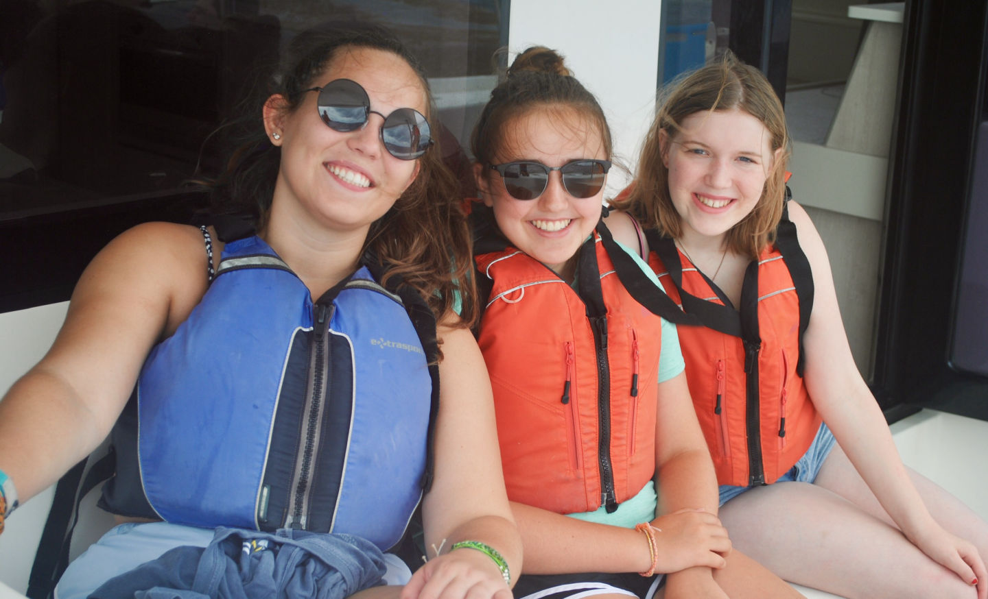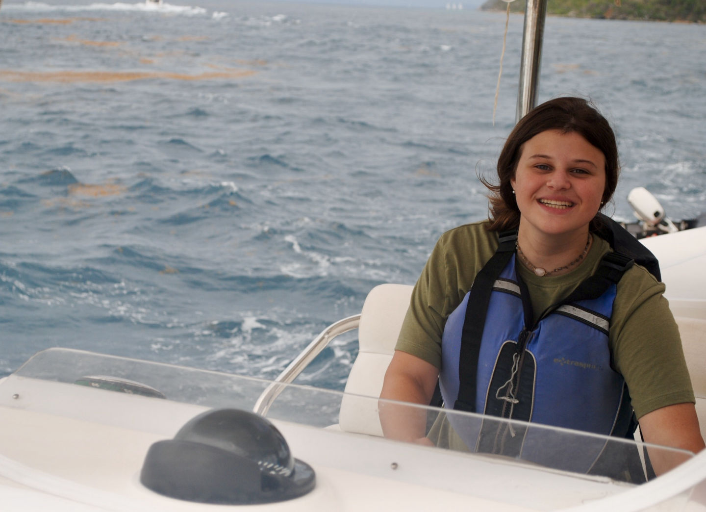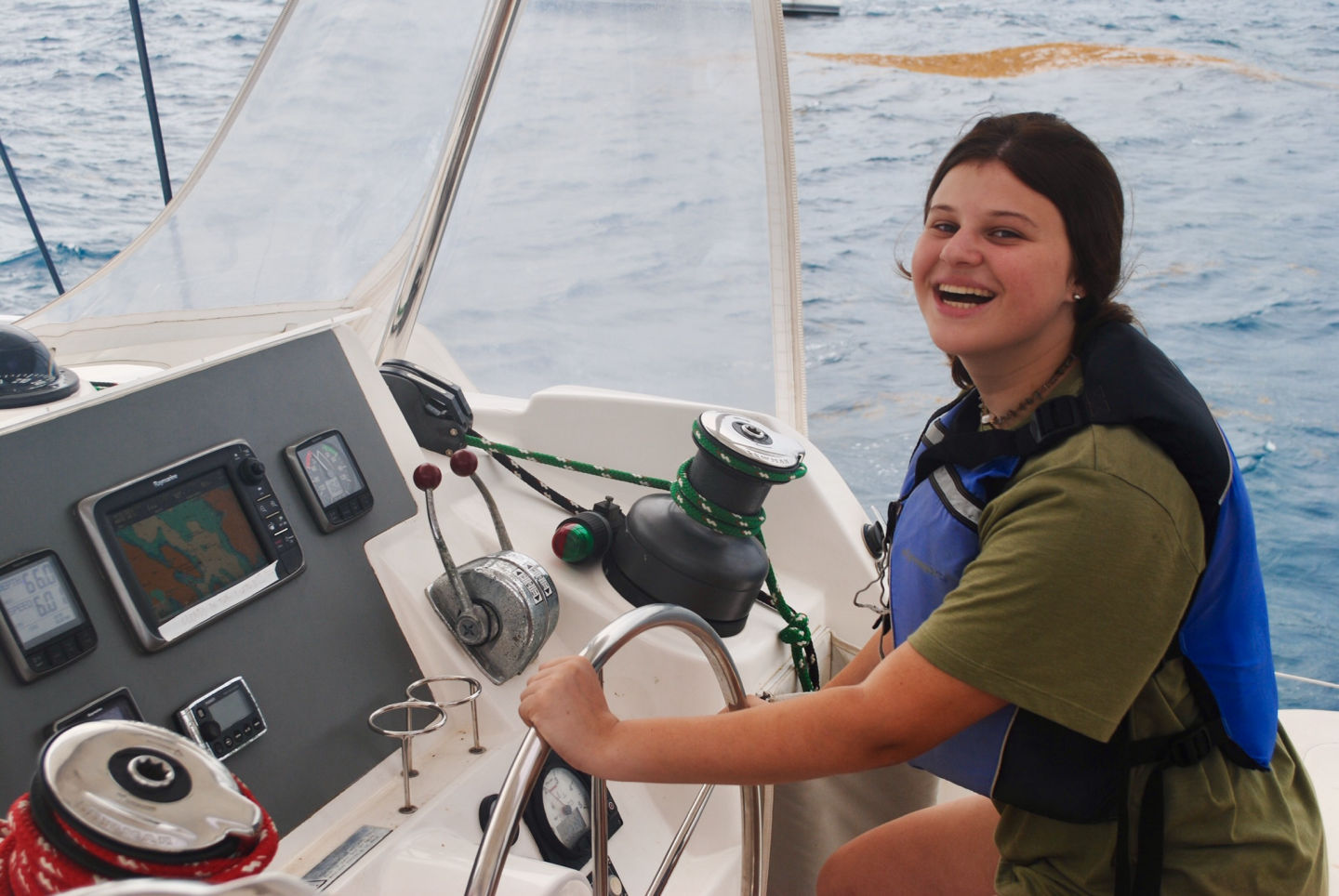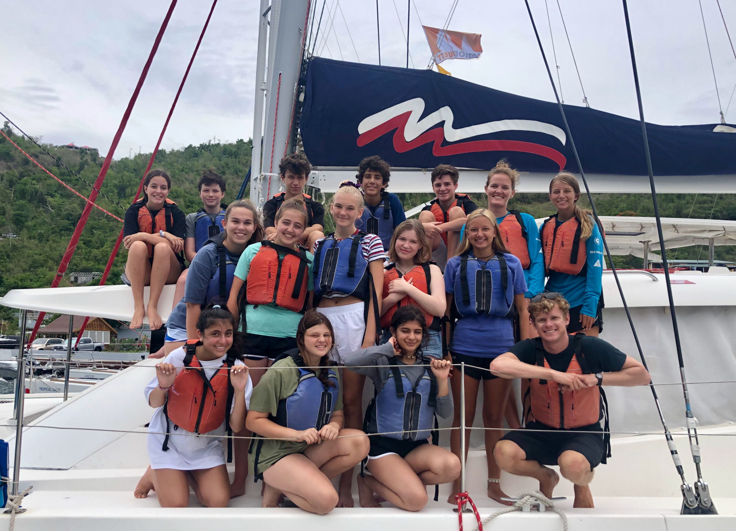 Today was eventful! We woke up bright and early at 6 AM. After a little breakfast and orientation, we were on our way! It was so exciting to leave the dock. It was really windy so that we couldn’t take the swim test around the boat as usual. Instead, we motored to a pool in Road Town and took the swim test with the other GoBeyond boat. Afterward, we had sandwiches for lunch. Next, we traveled over to the Virgin Gorda. It was a long and rocky ride, and Pardis experienced some seasickness. It took two hours to get to the Virgin Gorda, but it was so cool to drive the boat. After we anchored the boat, we went to the beach for a swim. The water was so blue and clear. There were also a lot of rocks on the ground. We jumped off and on the boat for ocean showers, and then had dinner that was prepared by our chefs. We ended the night with all of the GoBeyond students and talked about the program. We can’t wait for our first service day tomorrow!