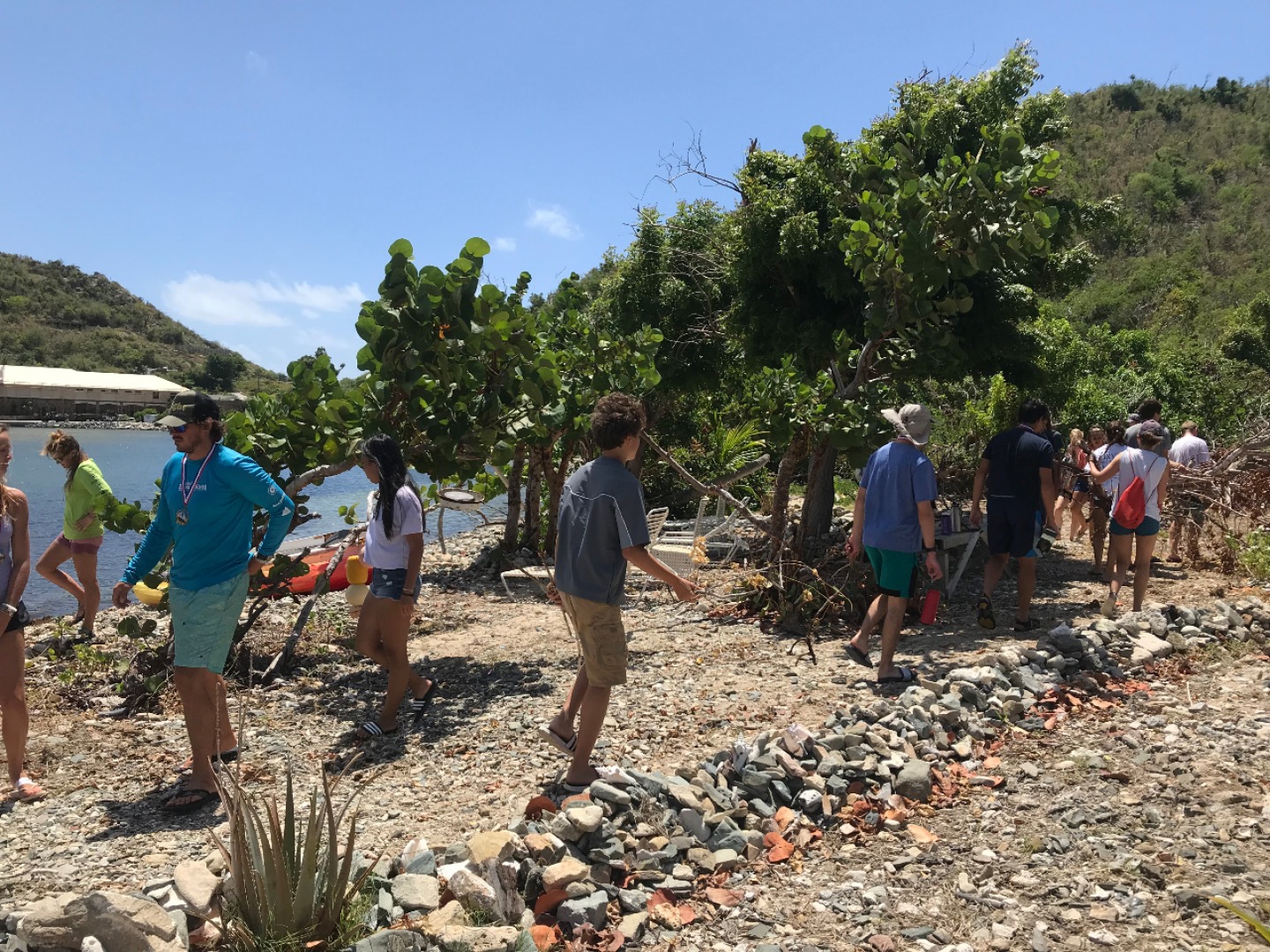 This beautiful and radiant morning we woke up to watermelon and pineapple! After our glorious meal, we all eagerly changed out of our pajamas and hopped in the dinghy. The two GoBeyond boats gathered on the shore at Great Harbor, Peter Island and had the privilege to explore the land and learn about the history of the family on the island. Through this family, we understood a different type of happiness we might not otherwise have been introduced to at home. This story put in perspective how fortunate and privileged we all are. After our time at GHP, we had time to swim together and then concluded our day cleaning the boat after sailing to the Bight. It was a great day!