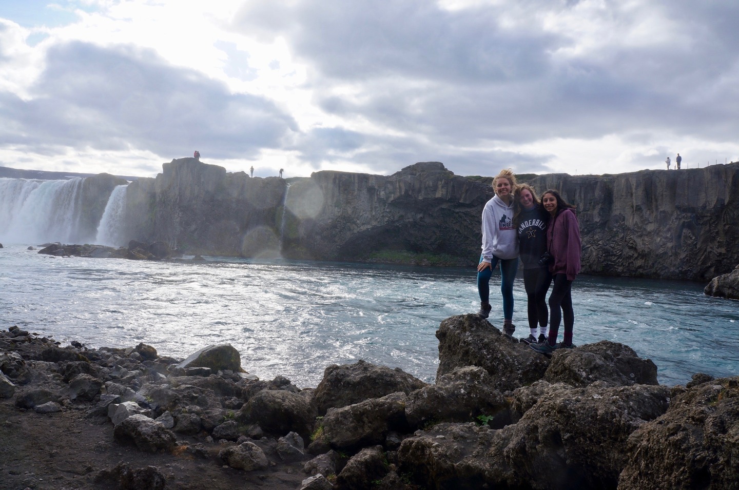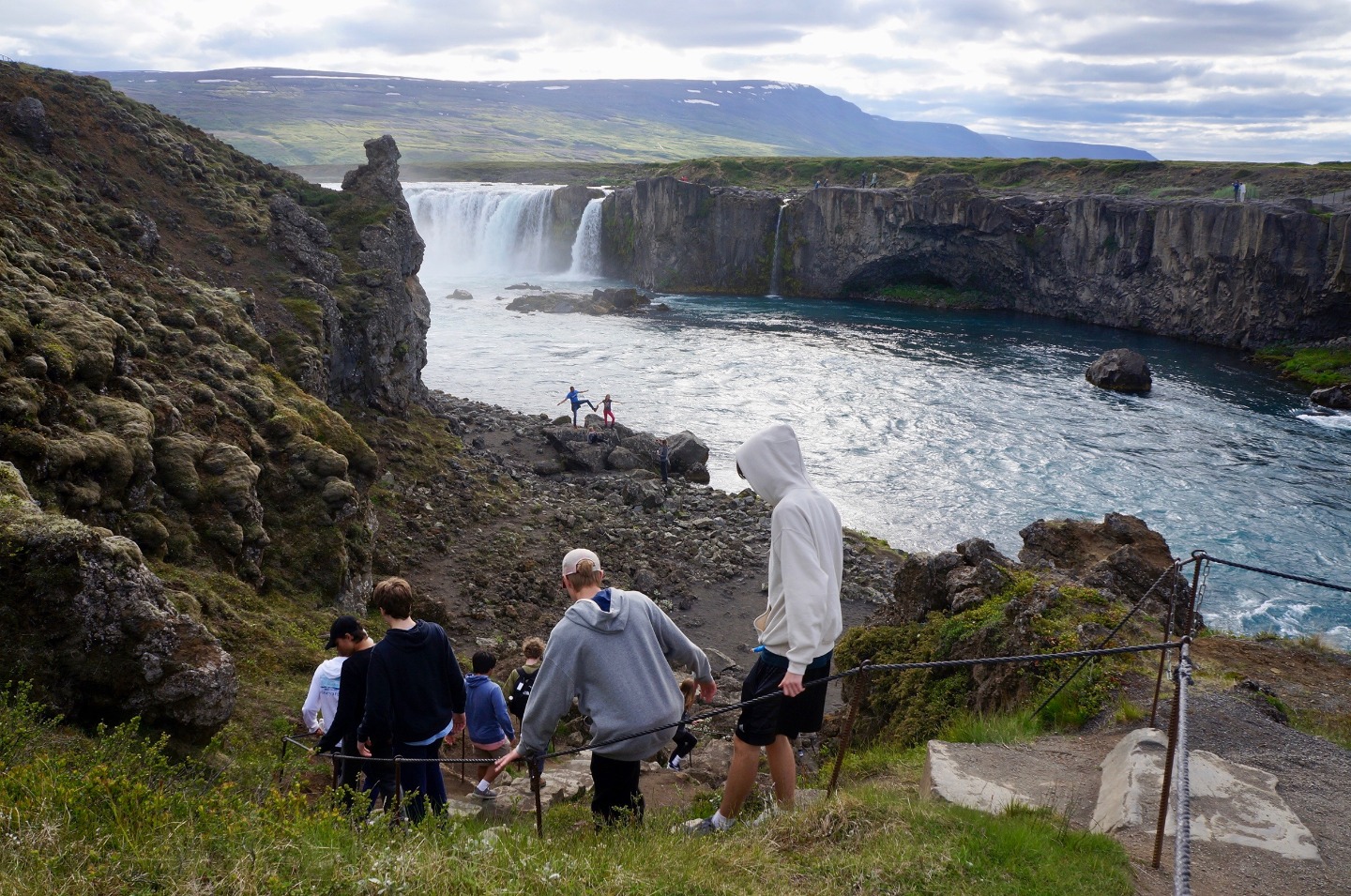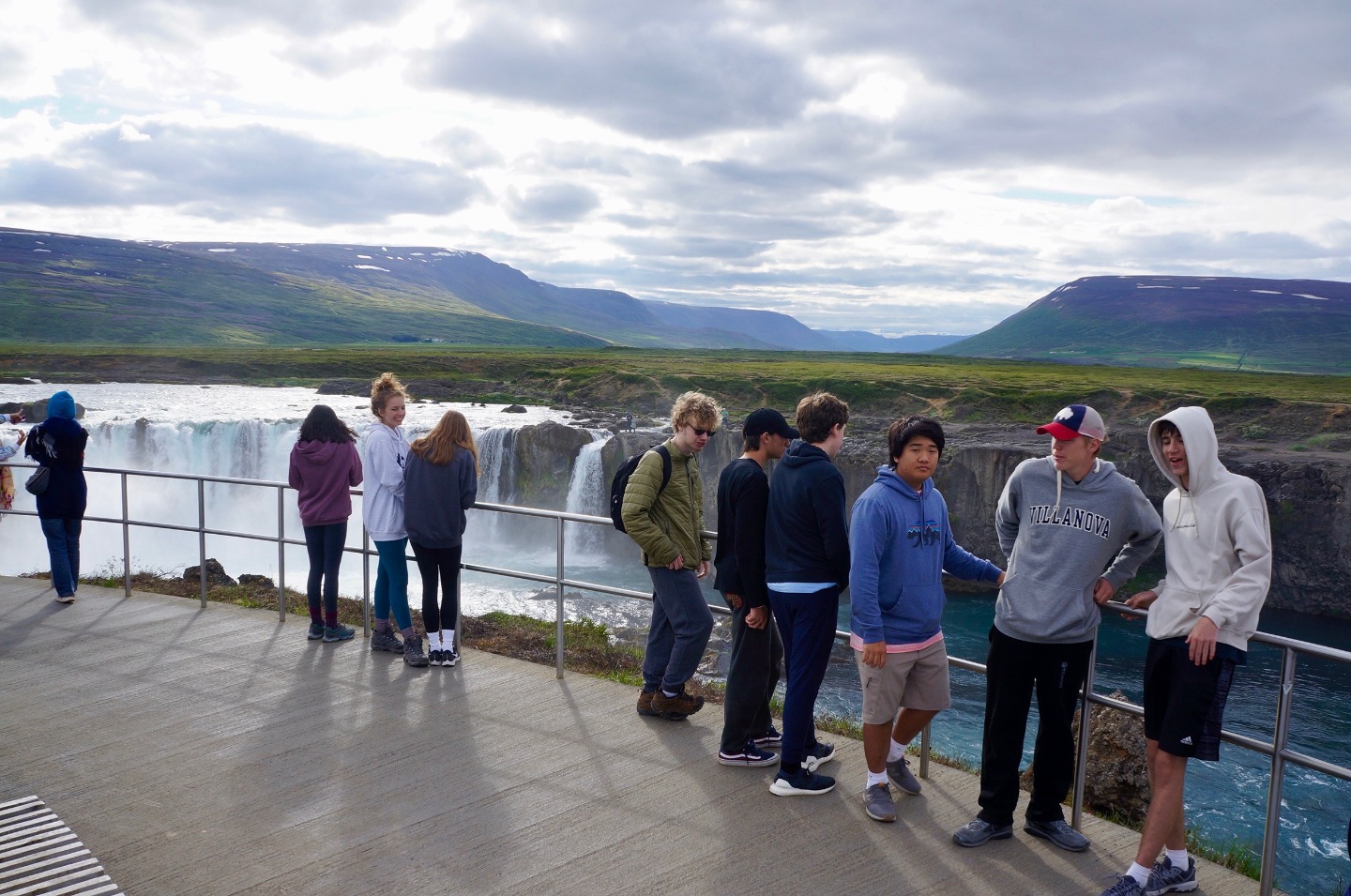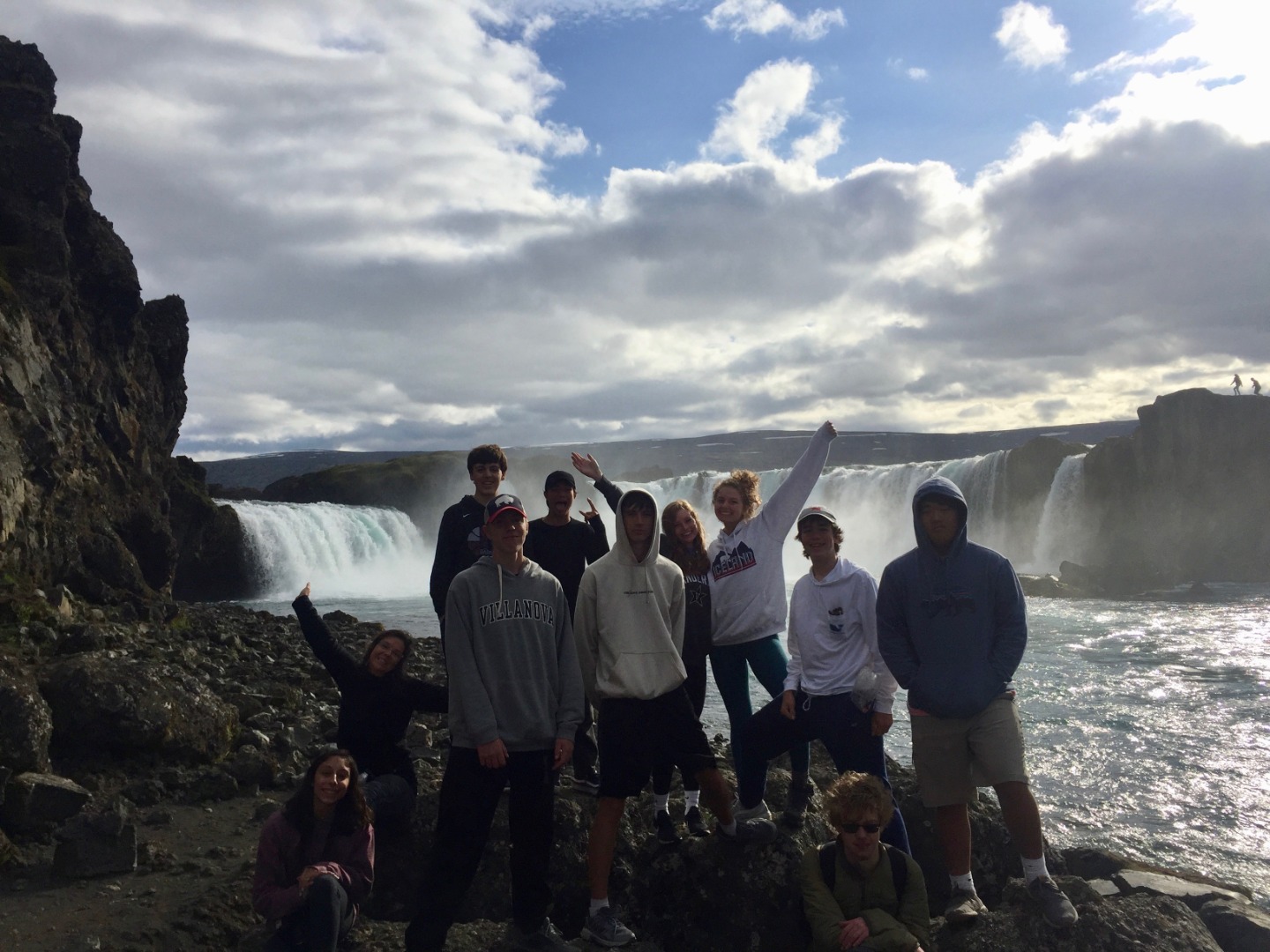 Today, we woke up from a long night of sleep at 7:45 am in Reykjavik. Our plan for the day was to start driving at 10:00 AM and arrive at our destination at dinner time. We started off the road trip with a bunch of fun, mind-boggling riddles and eventually stopped for lunch around 12:00. Food was good, and the conversations were funny and entertaining. After lunch, we drove for another two hours, finally arriving at our next destination, the waterfall at Godafoss. The view was amazing and the water was the bluest water I’ve ever seen. The waterfall was definitely the highlight of the day. After enjoying the evening at Godafoss, we drove for another two hours to the farm we are staying at. Since I was the group leader of the day, I got to cook dinner with two other people, Ashley and Ashton. Making tacos was fun, and not too hard to make. They were delicious. After, dinner we hung out and got to know each other a little bit better.