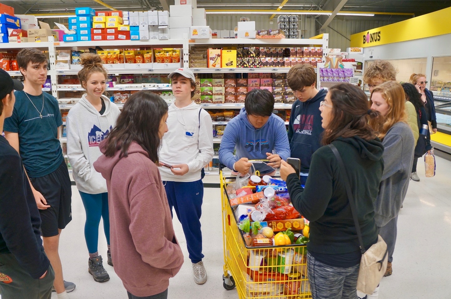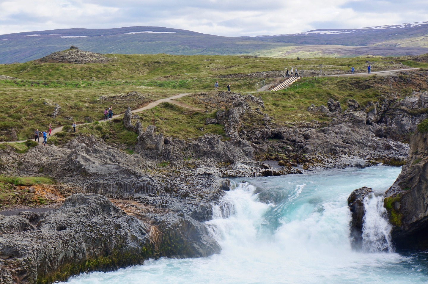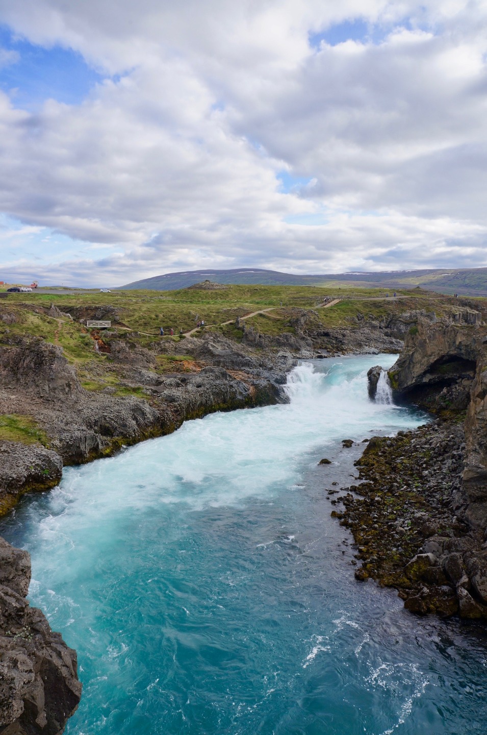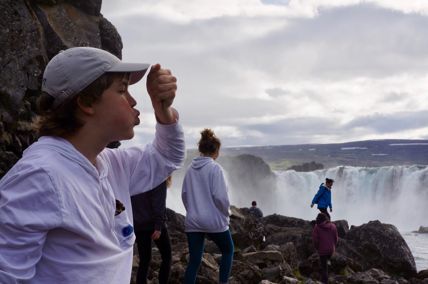 Today, we woke up from a long night of sleep at 7:45 am in Reykjavik. Our plan for the day was to start driving at 10:00 AM and arrive at our destination at dinner time. We started off the road trip with a bunch of fun, mind-boggling riddles and eventually stopped for lunch around 12:00. Food was good, and the conversations were funny and entertaining. After lunch, we drove for another two hours, finally arriving at our next destination, the waterfall at Godafoss. The view was amazing and the water was the bluest water I’ve ever seen. The waterfall was definitely the highlight of the day. After enjoying the evening at Godafoss, we drove for another two hours to the farm we are staying at. Since I was the group leader of the day, I got to cook dinner with two other people, Ashley and Ashton. Making tacos was fun, and not too hard to make. They were delicious. After, dinner we hung out and got to know each other a little bit better.