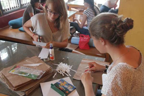 Then we got a special treat: “Western” style lunch. Our meal was indeed from a more Western place than India, but most people did not count the delicious Falafels we ate as the type of food they would eat at home. However, the french fries were greeted with a lot of enthusiasm.