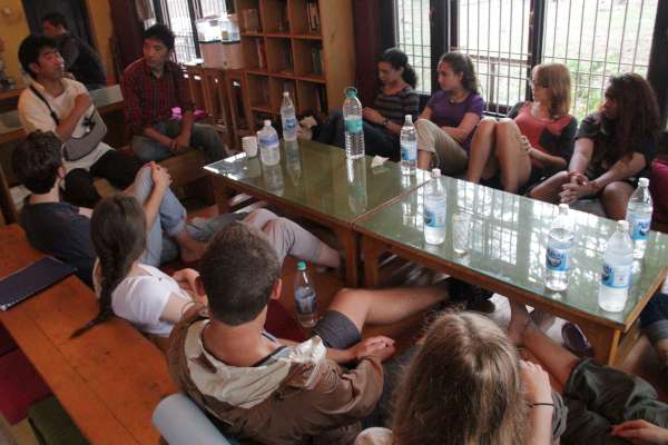 After spending a wonderful but exhausting two hours with the TCV kids, mostly doing various arts and crafts projects with supplies that the kids would not normally be able to access, we were all ready to relax at Common Ground. The food was wonderful, as always, and we also had the amazing opportunity to listen to Tsewang Dhondup, a Tibetan refugee who had fled from Tibet in 2009 after being shot in the 2008 uprisings. Using Jampa as his translator, he told us why he joined in protesting the Chinese government and how he lost the use of his arm to a Chinese bullet while trying to save a monk who had also been shot. He ended his talk with a request to us to keep an open mind and try to discover for ourselves what is right and wrong, true and not true.