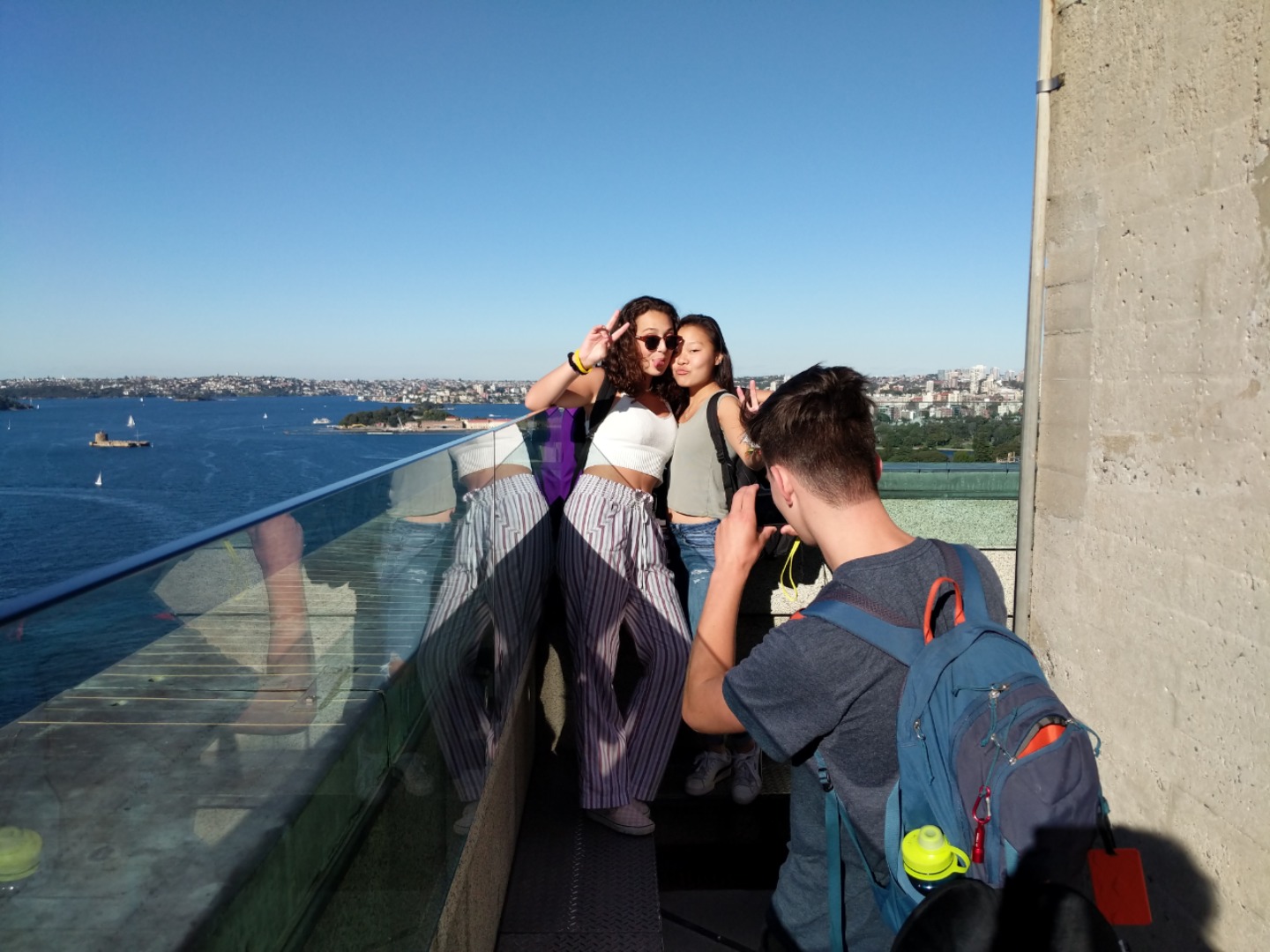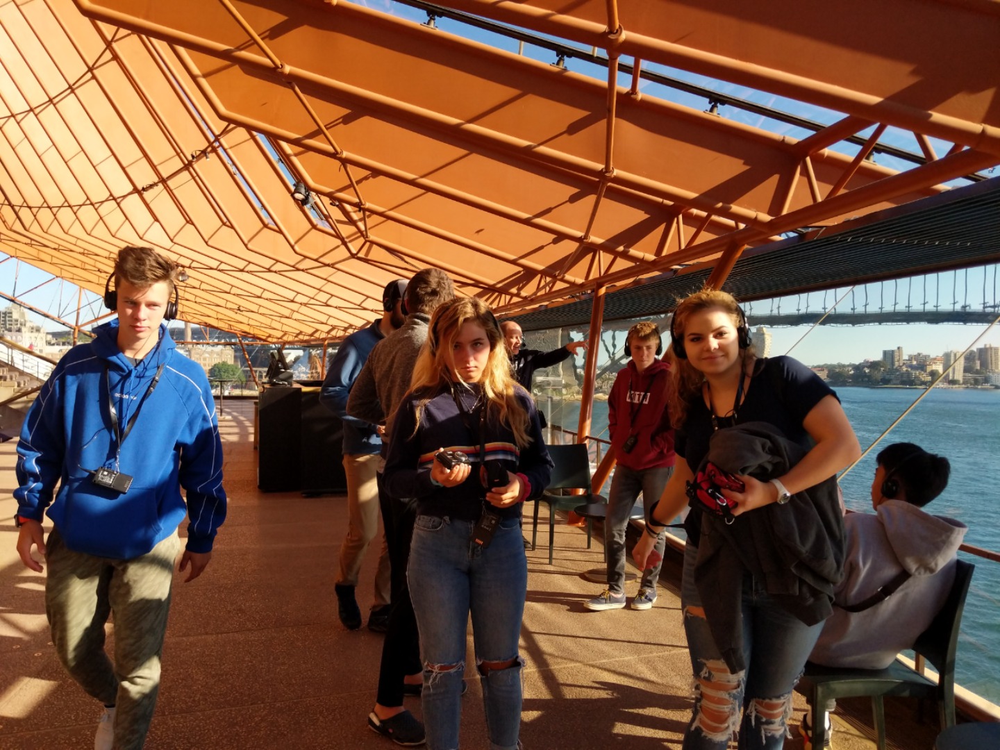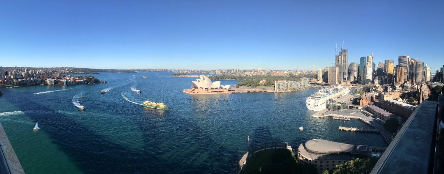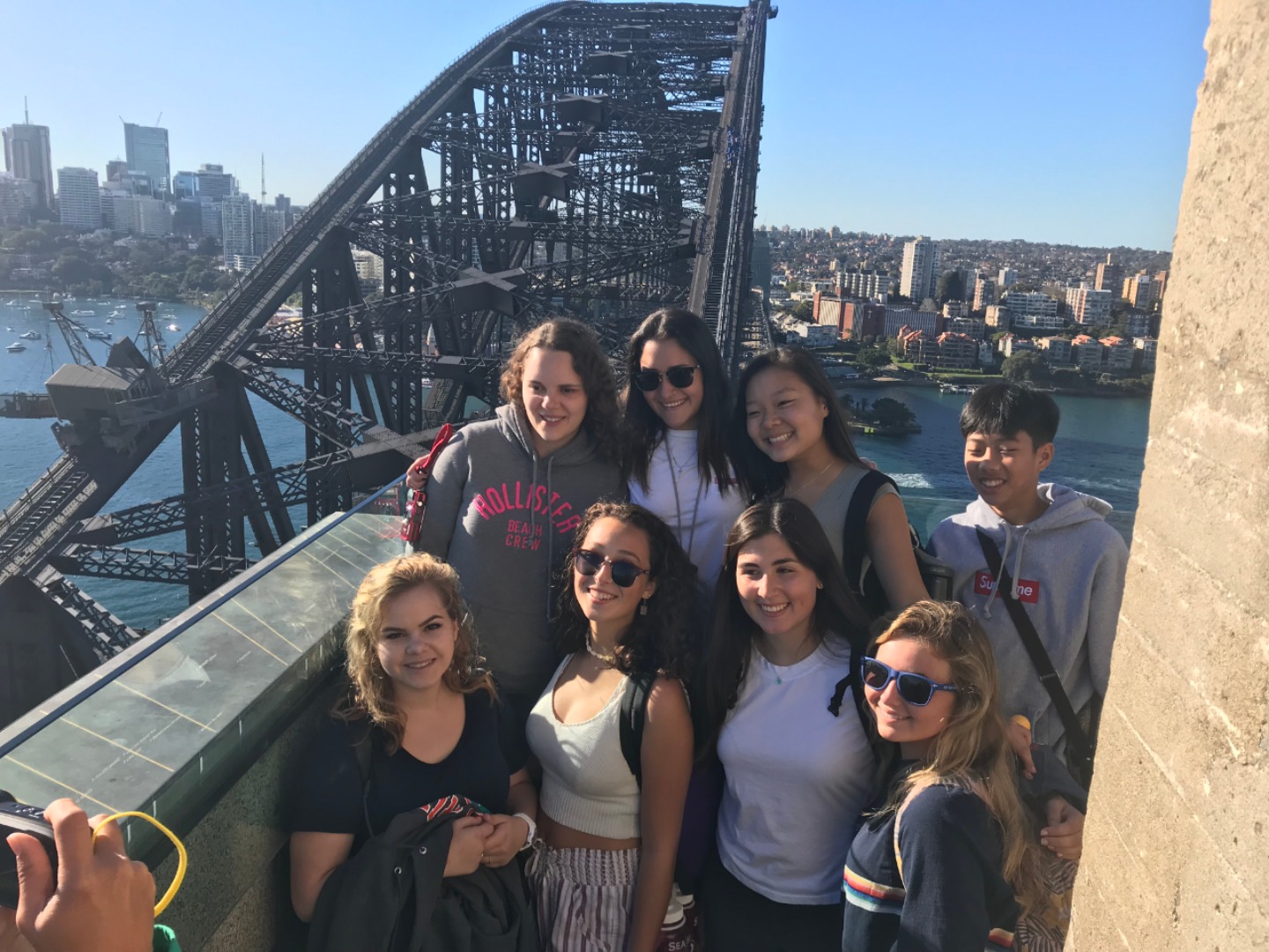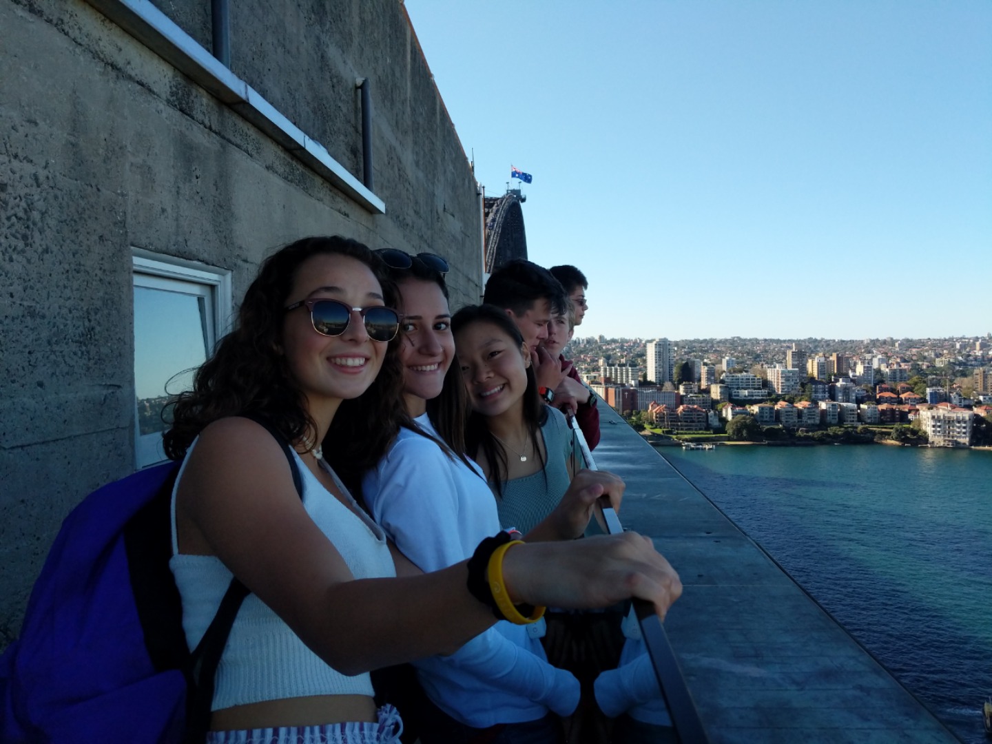 Today, we woke up early(ish) and got ready to go to the Sydney Opera House. After a wonderful breakfast of Nutella and Vegemite on toast, we took the bus to the opera house. When we arrived, we met up with our tour guide who gave us little headsets so he could talk to all of us while we walked around. We got to walk around the inside and saw the main theatre, which was absolutely beautiful with its high ceilings and birch wood paneling. Our very informative guide told us about how they use hardwoods for the floor and soft woods for the ceiling so the room has good acoustics. While he was filling us in on this, some of the orchestra was warming up and playing songs from Harry Potter, which was super cool to hear! After that we walked around the outside and got to see the views of the beautiful harbour. Later, we took a stroll and played some icebreaker games and had lunch in a park, and then headed over to the Sydney Harbor Bridge. We climbed a ridiculous amount of stairs up to one of the pylons where we were rewarded with stunning views of the harbor and the opera house. Afterwards we went to the mall and shopped till we dropped and enjoyed some sushi at the food court, then headed back to the hostel. Overall, it was a very fun, very busy day, and now we’re all going to head to bed to recuperate from all the day’s adventures.