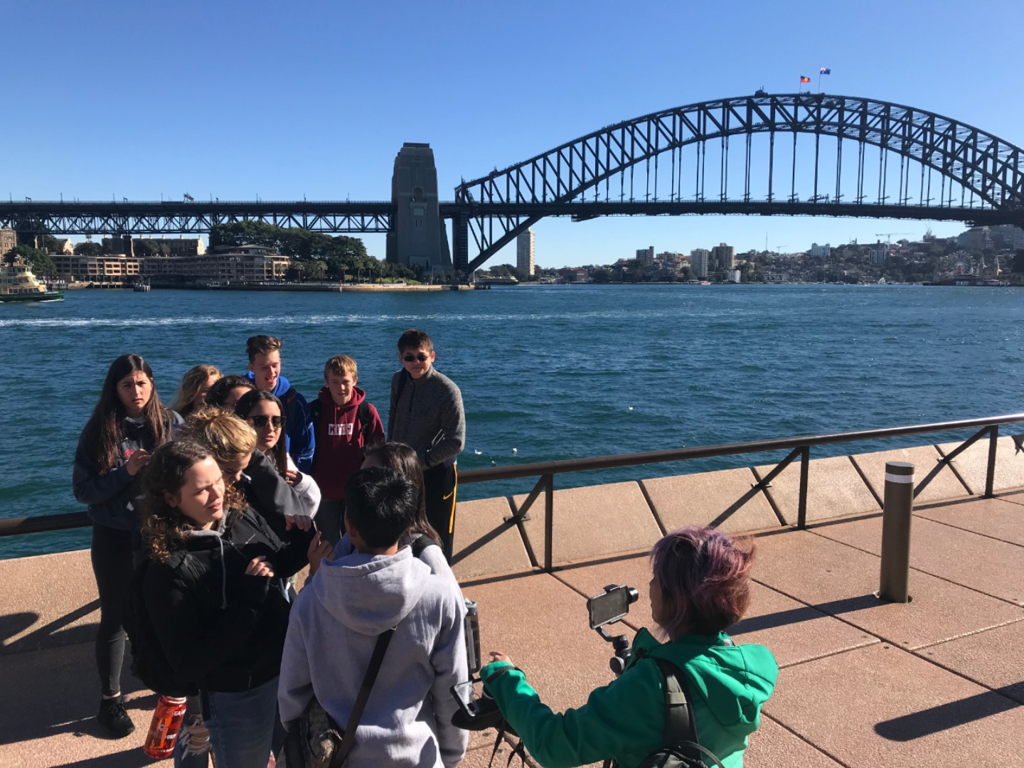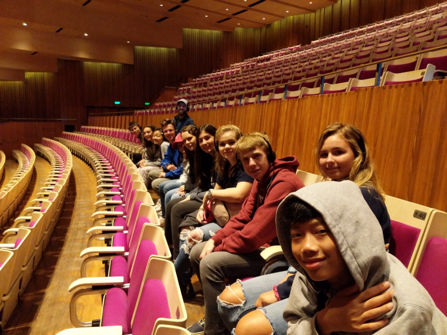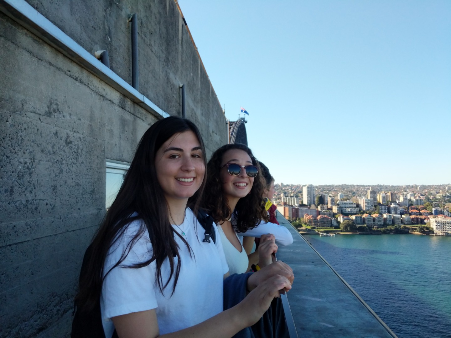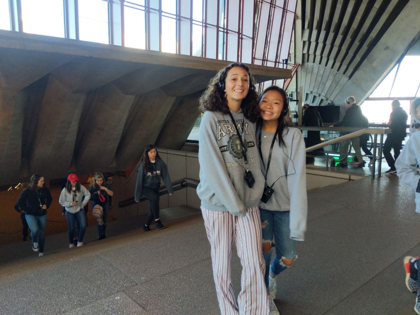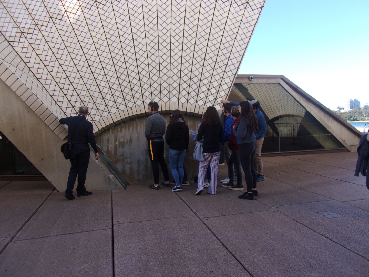 Today, we woke up early(ish) and got ready to go to the Sydney Opera House. After a wonderful breakfast of Nutella and Vegemite on toast, we took the bus to the opera house. When we arrived, we met up with our tour guide who gave us little headsets so he could talk to all of us while we walked around. We got to walk around the inside and saw the main theatre, which was absolutely beautiful with its high ceilings and birch wood paneling. Our very informative guide told us about how they use hardwoods for the floor and soft woods for the ceiling so the room has good acoustics. While he was filling us in on this, some of the orchestra was warming up and playing songs from Harry Potter, which was super cool to hear! After that we walked around the outside and got to see the views of the beautiful harbour. Later, we took a stroll and played some icebreaker games and had lunch in a park, and then headed over to the Sydney Harbor Bridge. We climbed a ridiculous amount of stairs up to one of the pylons where we were rewarded with stunning views of the harbor and the opera house. Afterwards we went to the mall and shopped till we dropped and enjoyed some sushi at the food court, then headed back to the hostel. Overall, it was a very fun, very busy day, and now we’re all going to head to bed to recuperate from all the day’s adventures.