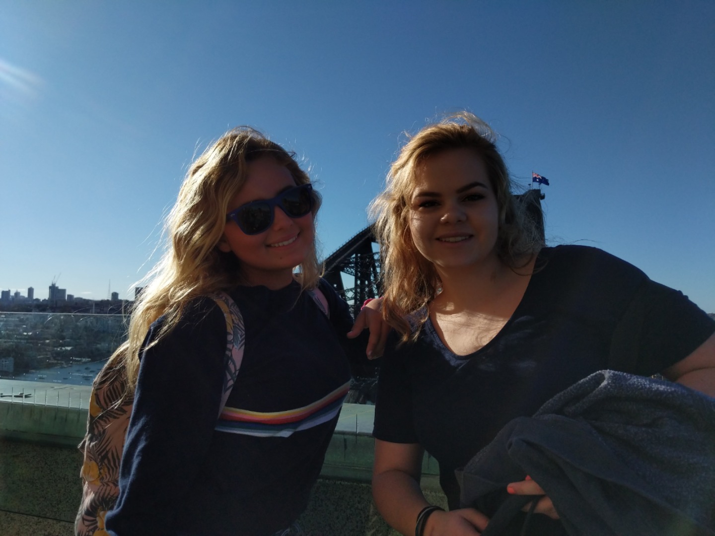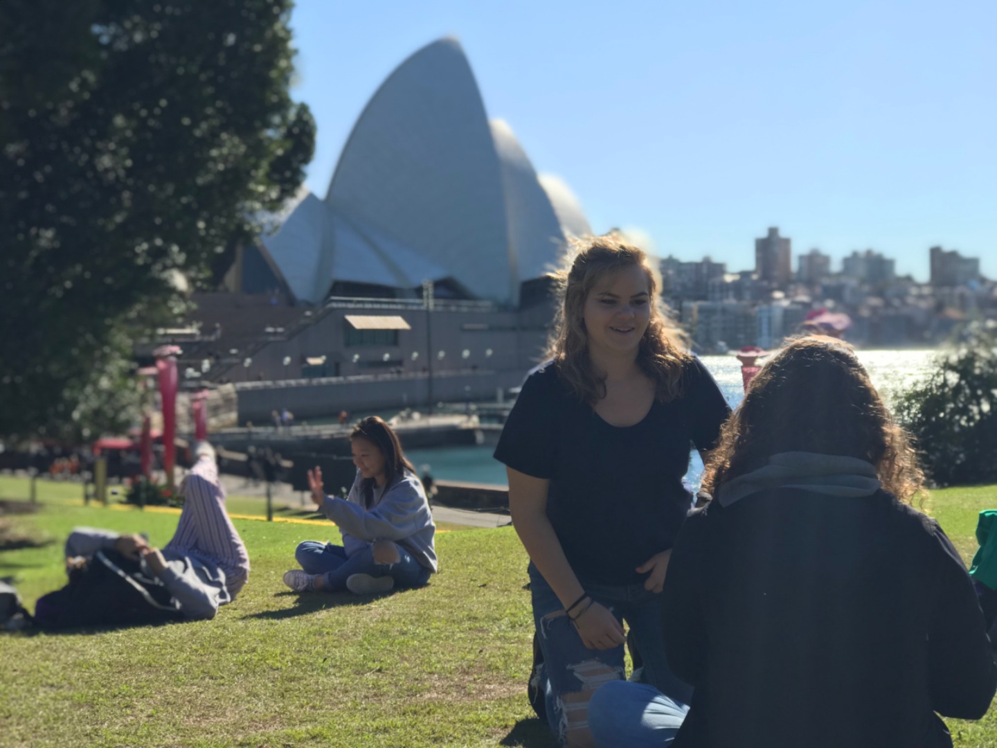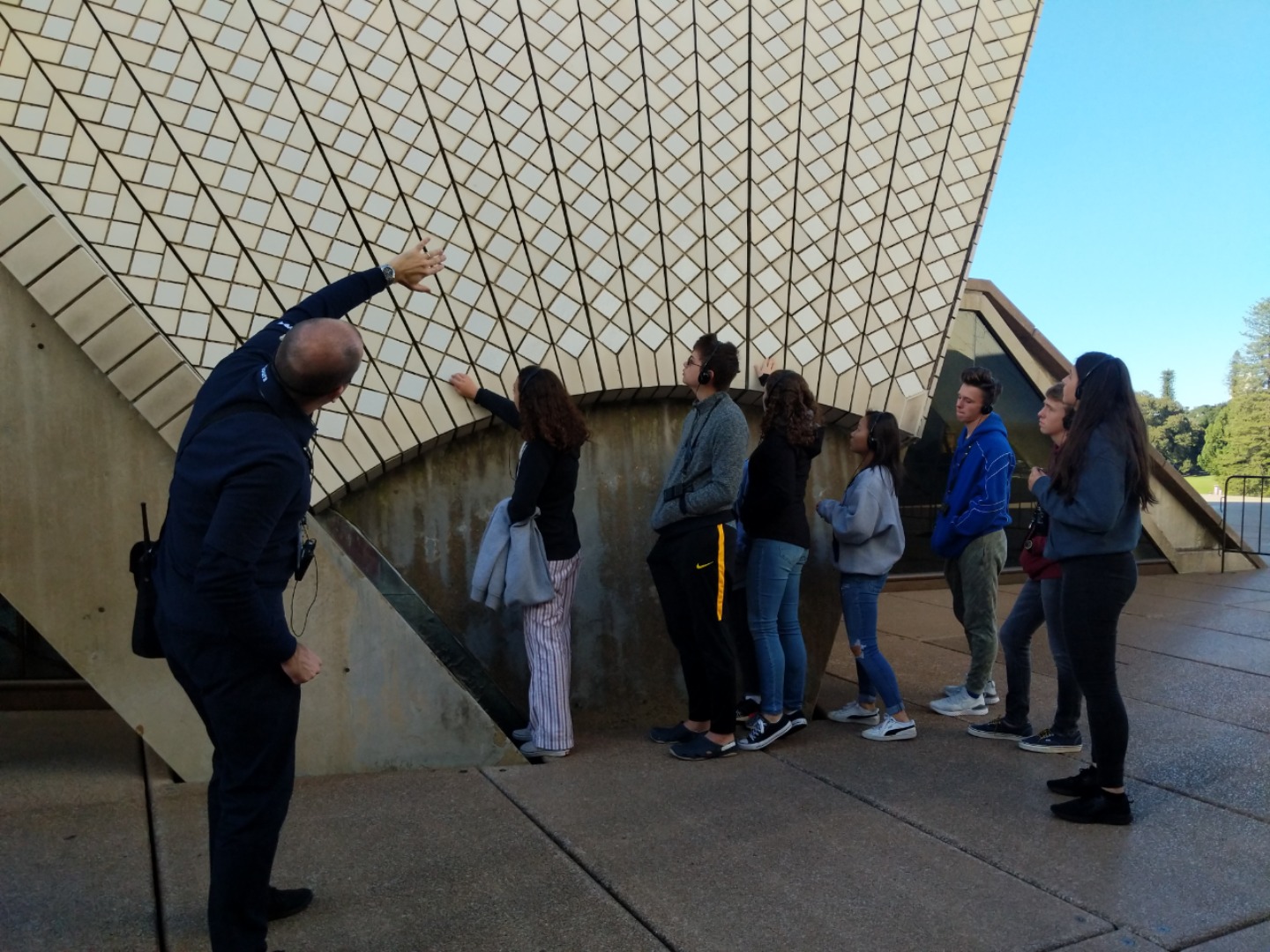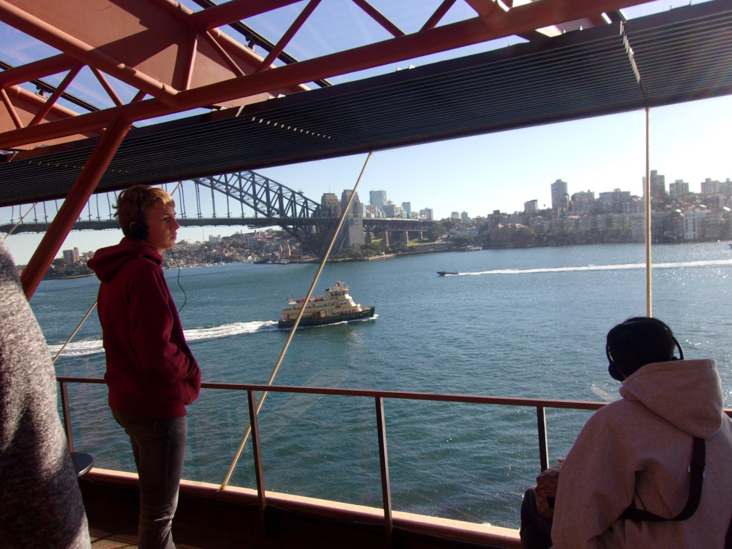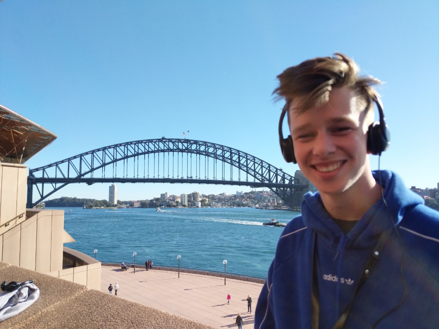 Today, we woke up early(ish) and got ready to go to the Sydney Opera House. After a wonderful breakfast of Nutella and Vegemite on toast, we took the bus to the opera house. When we arrived, we met up with our tour guide who gave us little headsets so he could talk to all of us while we walked around. We got to walk around the inside and saw the main theatre, which was absolutely beautiful with its high ceilings and birch wood paneling. Our very informative guide told us about how they use hardwoods for the floor and soft woods for the ceiling so the room has good acoustics. While he was filling us in on this, some of the orchestra was warming up and playing songs from Harry Potter, which was super cool to hear! After that we walked around the outside and got to see the views of the beautiful harbour. Later, we took a stroll and played some icebreaker games and had lunch in a park, and then headed over to the Sydney Harbor Bridge. We climbed a ridiculous amount of stairs up to one of the pylons where we were rewarded with stunning views of the harbor and the opera house. Afterwards we went to the mall and shopped till we dropped and enjoyed some sushi at the food court, then headed back to the hostel. Overall, it was a very fun, very busy day, and now we’re all going to head to bed to recuperate from all the day’s adventures.