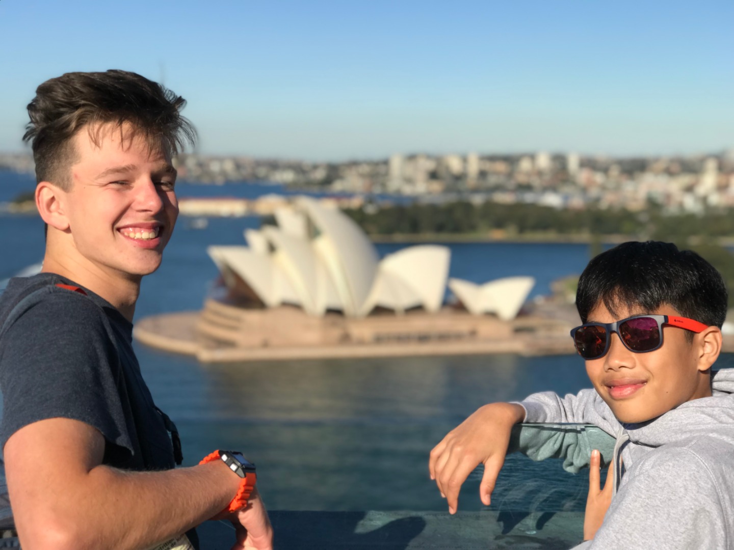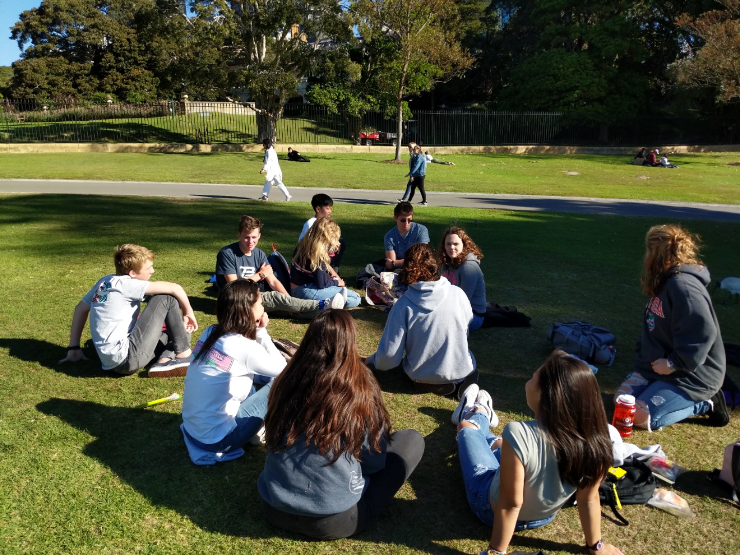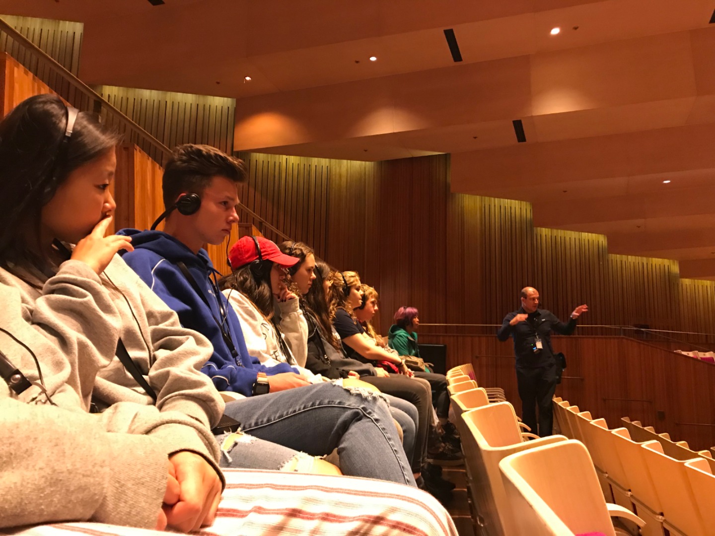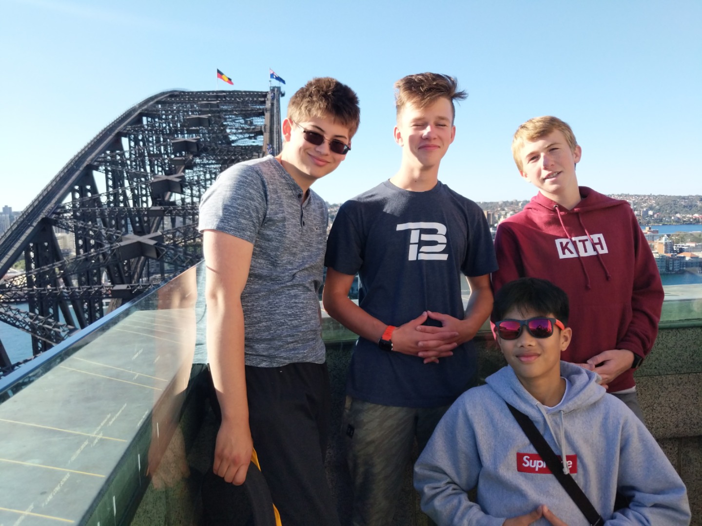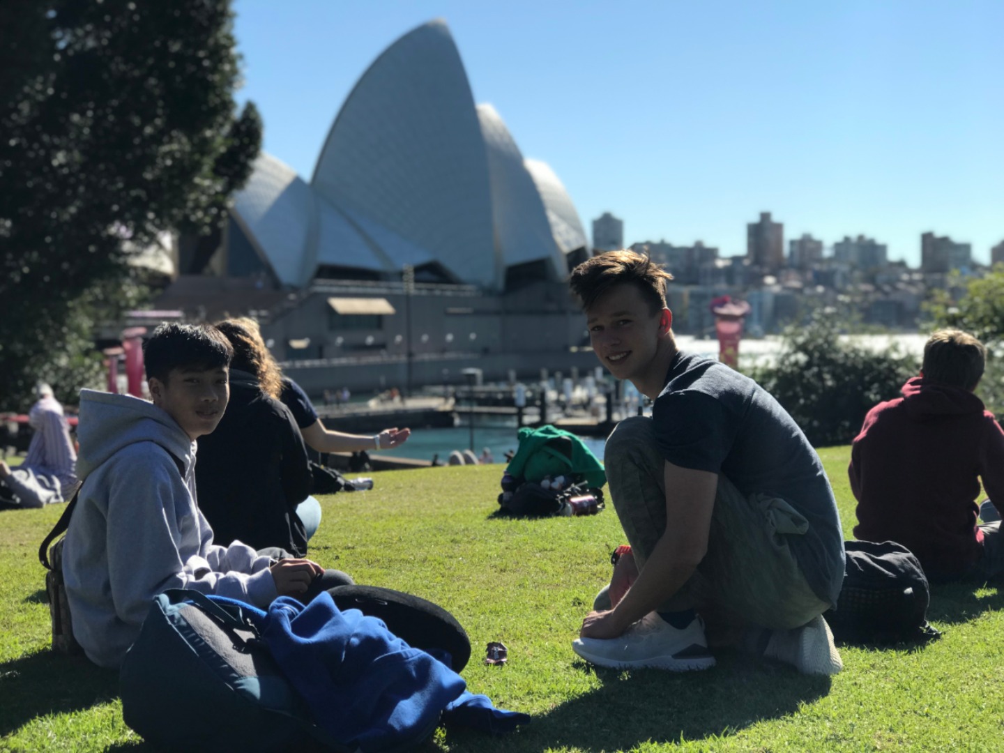 Today, we woke up early(ish) and got ready to go to the Sydney Opera House. After a wonderful breakfast of Nutella and Vegemite on toast, we took the bus to the opera house. When we arrived, we met up with our tour guide who gave us little headsets so he could talk to all of us while we walked around. We got to walk around the inside and saw the main theatre, which was absolutely beautiful with its high ceilings and birch wood paneling. Our very informative guide told us about how they use hardwoods for the floor and soft woods for the ceiling so the room has good acoustics. While he was filling us in on this, some of the orchestra was warming up and playing songs from Harry Potter, which was super cool to hear! After that we walked around the outside and got to see the views of the beautiful harbour. Later, we took a stroll and played some icebreaker games and had lunch in a park, and then headed over to the Sydney Harbor Bridge. We climbed a ridiculous amount of stairs up to one of the pylons where we were rewarded with stunning views of the harbor and the opera house. Afterwards we went to the mall and shopped till we dropped and enjoyed some sushi at the food court, then headed back to the hostel. Overall, it was a very fun, very busy day, and now we’re all going to head to bed to recuperate from all the day’s adventures.