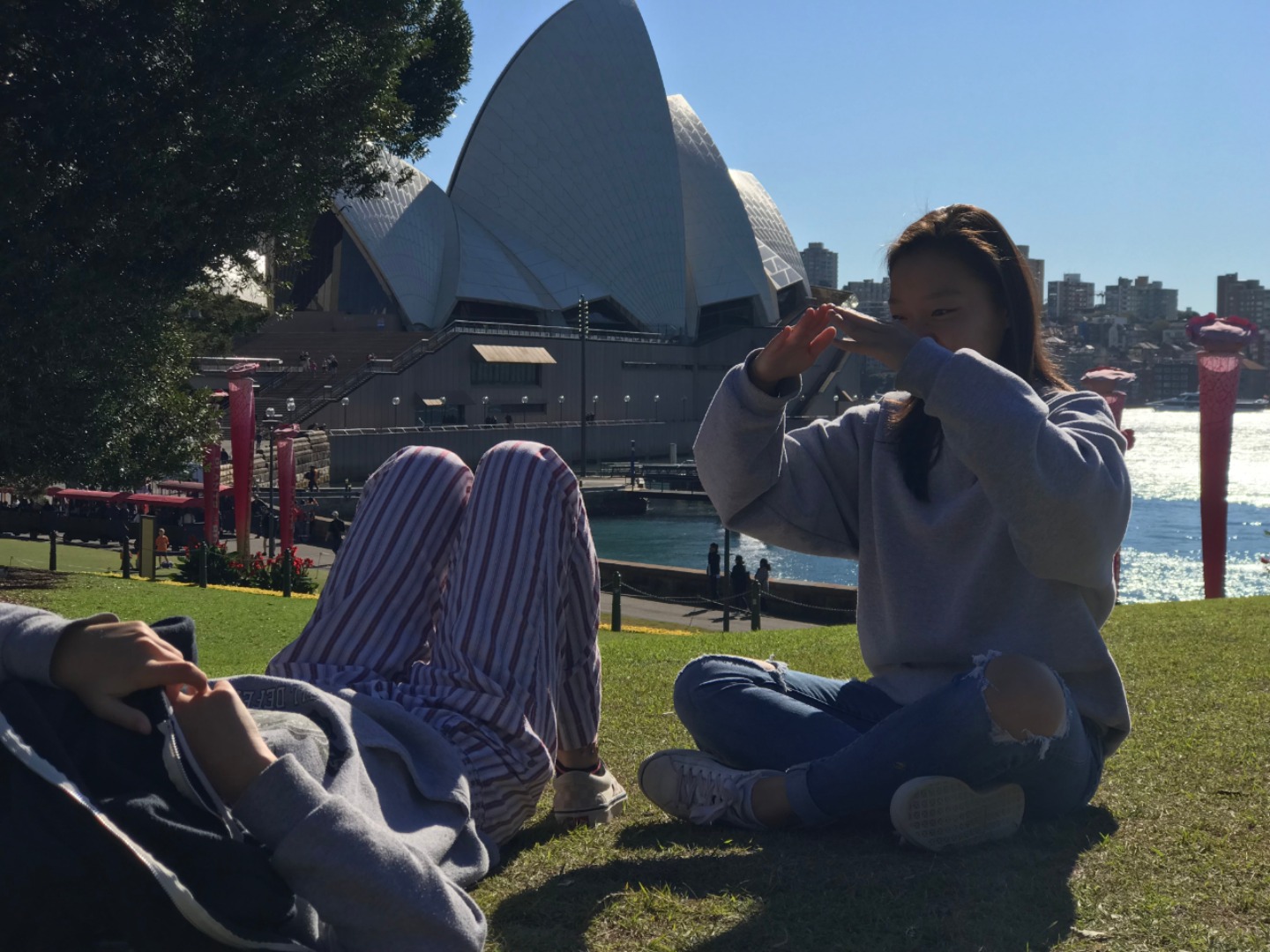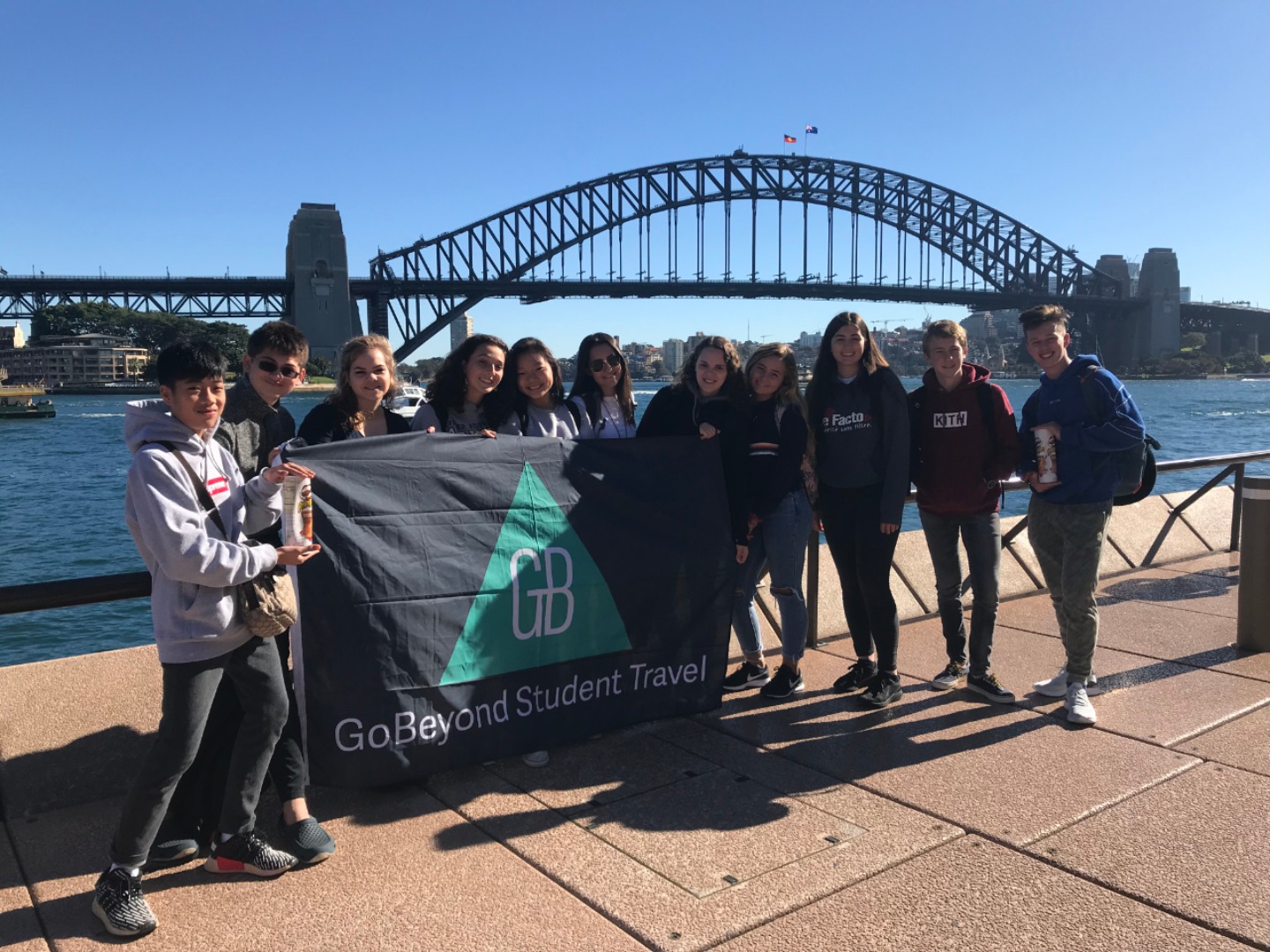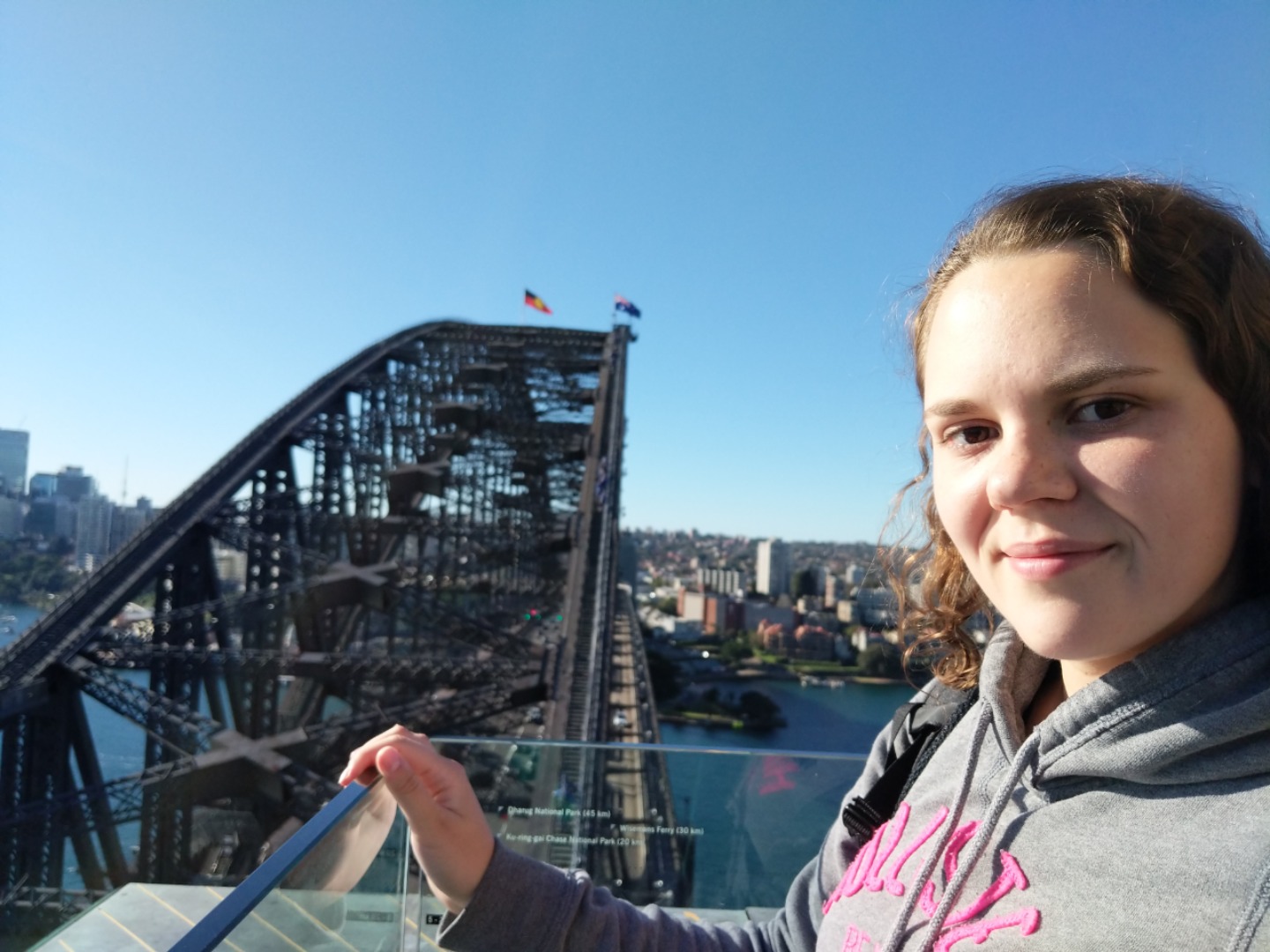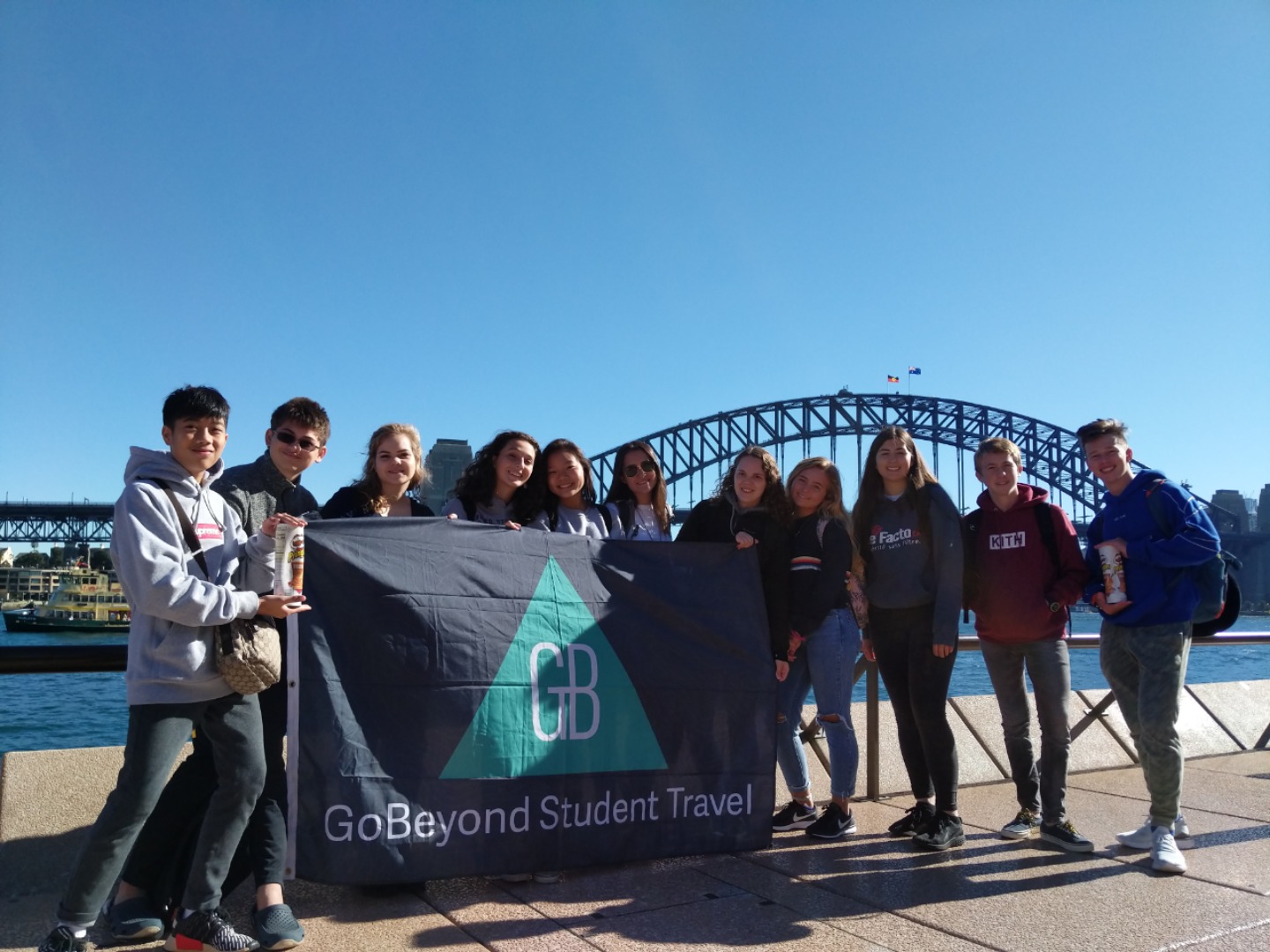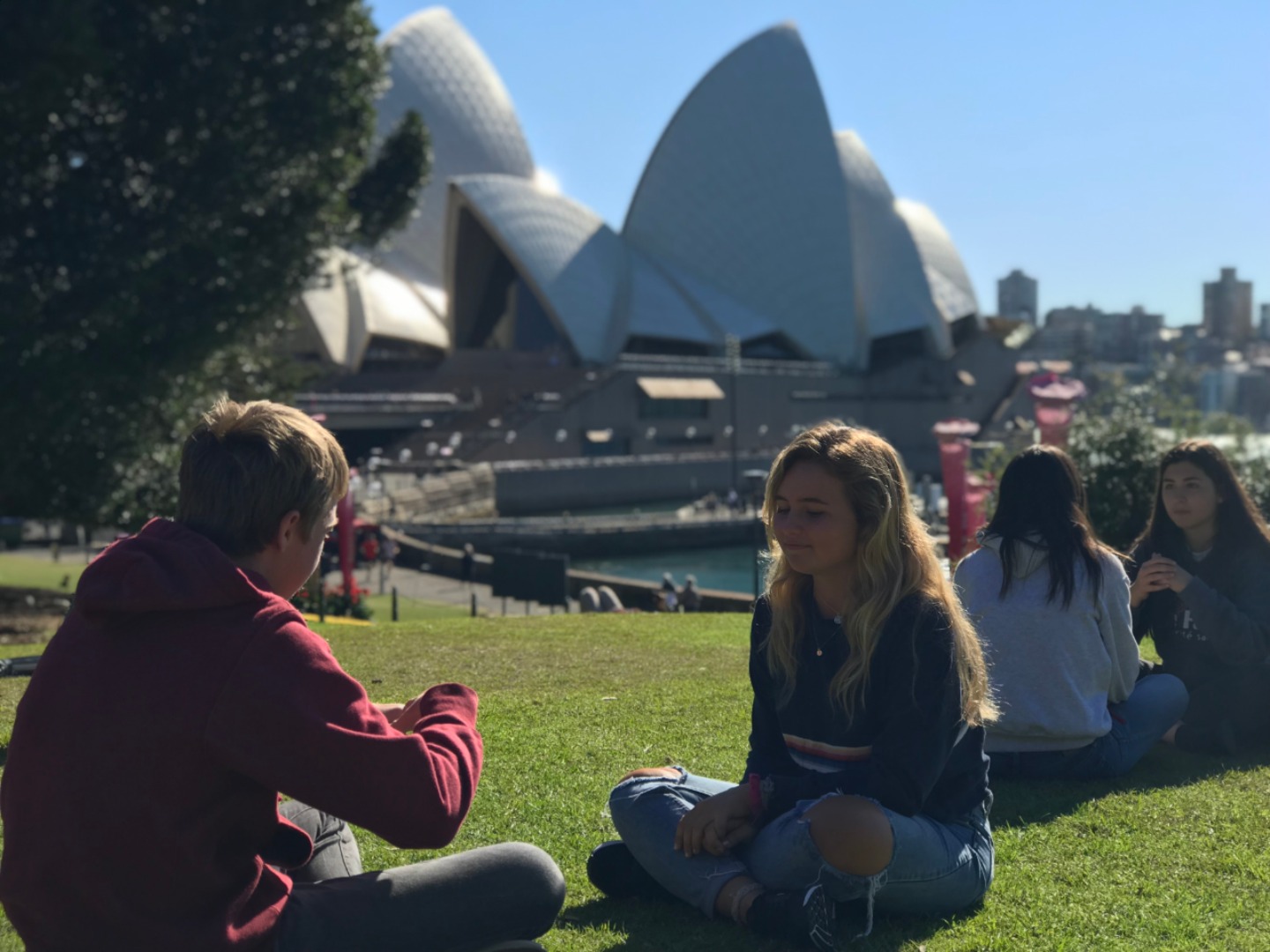 Today, we woke up early(ish) and got ready to go to the Sydney Opera House. After a wonderful breakfast of Nutella and Vegemite on toast, we took the bus to the opera house. When we arrived, we met up with our tour guide who gave us little headsets so he could talk to all of us while we walked around. We got to walk around the inside and saw the main theatre, which was absolutely beautiful with its high ceilings and birch wood paneling. Our very informative guide told us about how they use hardwoods for the floor and soft woods for the ceiling so the room has good acoustics. While he was filling us in on this, some of the orchestra was warming up and playing songs from Harry Potter, which was super cool to hear! After that we walked around the outside and got to see the views of the beautiful harbour. Later, we took a stroll and played some icebreaker games and had lunch in a park, and then headed over to the Sydney Harbor Bridge. We climbed a ridiculous amount of stairs up to one of the pylons where we were rewarded with stunning views of the harbor and the opera house. Afterwards we went to the mall and shopped till we dropped and enjoyed some sushi at the food court, then headed back to the hostel. Overall, it was a very fun, very busy day, and now we’re all going to head to bed to recuperate from all the day’s adventures.