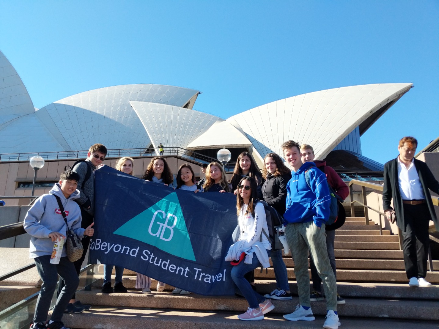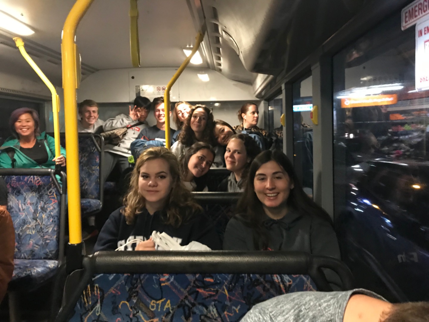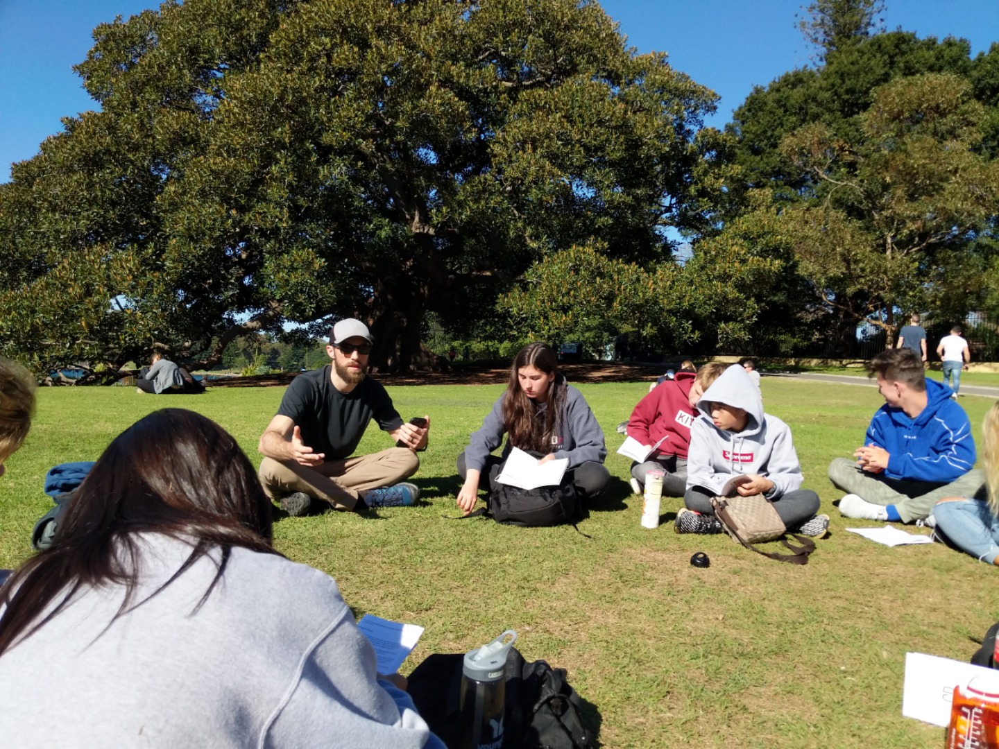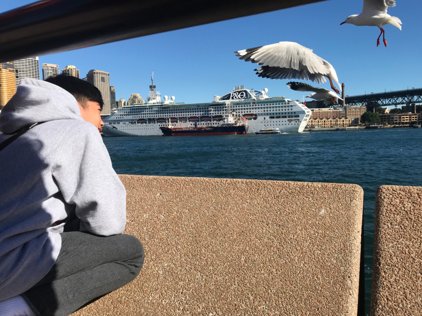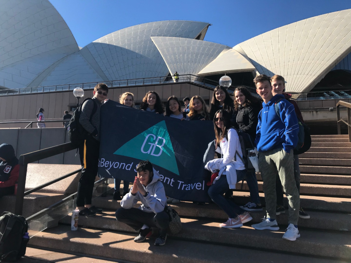 Today, we woke up early(ish) and got ready to go to the Sydney Opera House. After a wonderful breakfast of Nutella and Vegemite on toast, we took the bus to the opera house. When we arrived, we met up with our tour guide who gave us little headsets so he could talk to all of us while we walked around. We got to walk around the inside and saw the main theatre, which was absolutely beautiful with its high ceilings and birch wood paneling. Our very informative guide told us about how they use hardwoods for the floor and soft woods for the ceiling so the room has good acoustics. While he was filling us in on this, some of the orchestra was warming up and playing songs from Harry Potter, which was super cool to hear! After that we walked around the outside and got to see the views of the beautiful harbour. Later, we took a stroll and played some icebreaker games and had lunch in a park, and then headed over to the Sydney Harbor Bridge. We climbed a ridiculous amount of stairs up to one of the pylons where we were rewarded with stunning views of the harbor and the opera house. Afterwards we went to the mall and shopped till we dropped and enjoyed some sushi at the food court, then headed back to the hostel. Overall, it was a very fun, very busy day, and now we’re all going to head to bed to recuperate from all the day’s adventures.