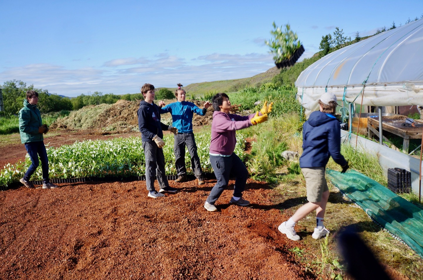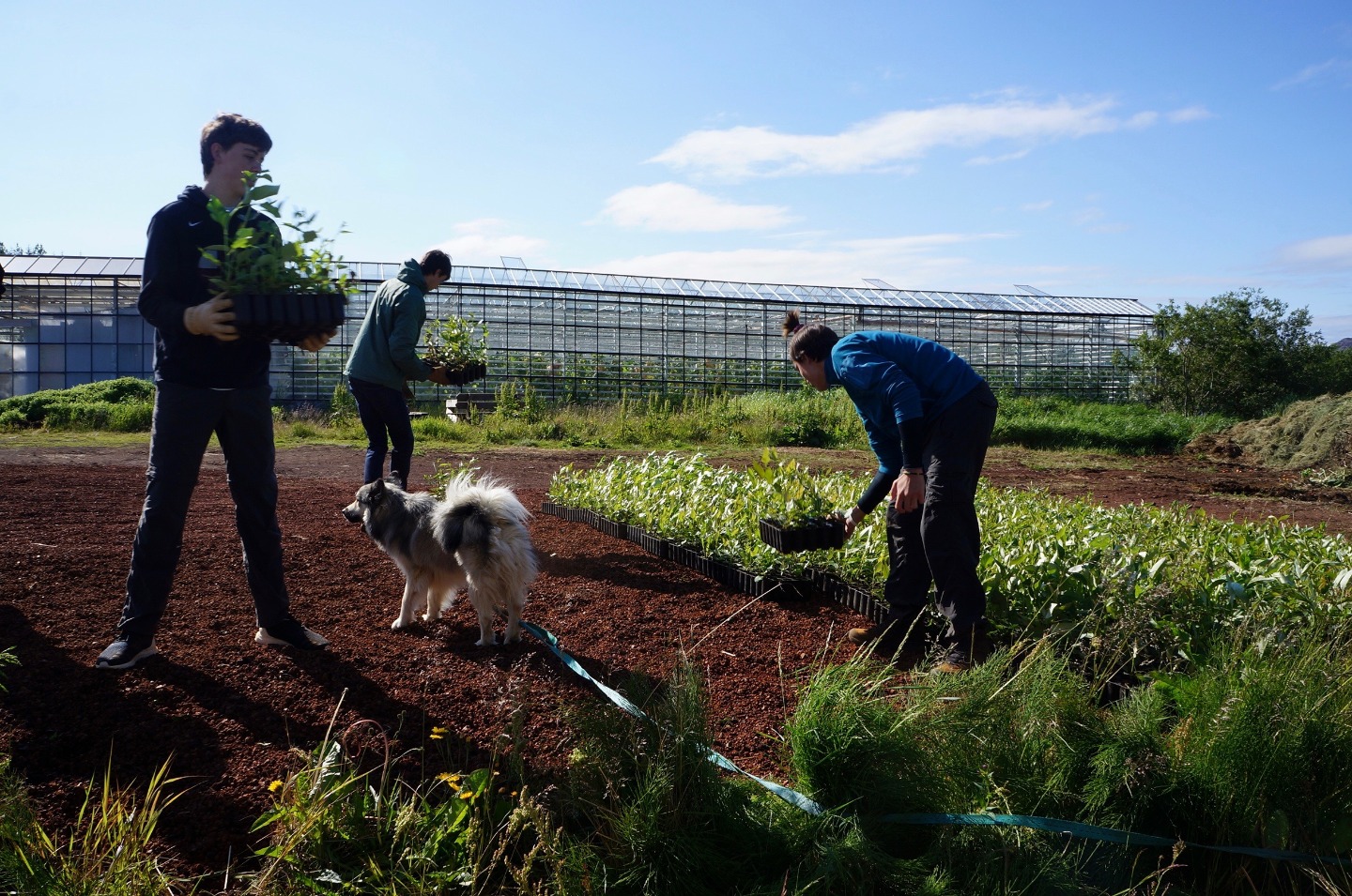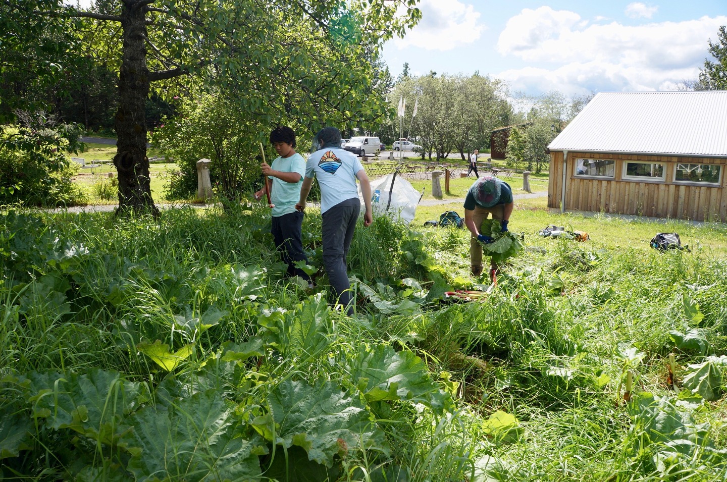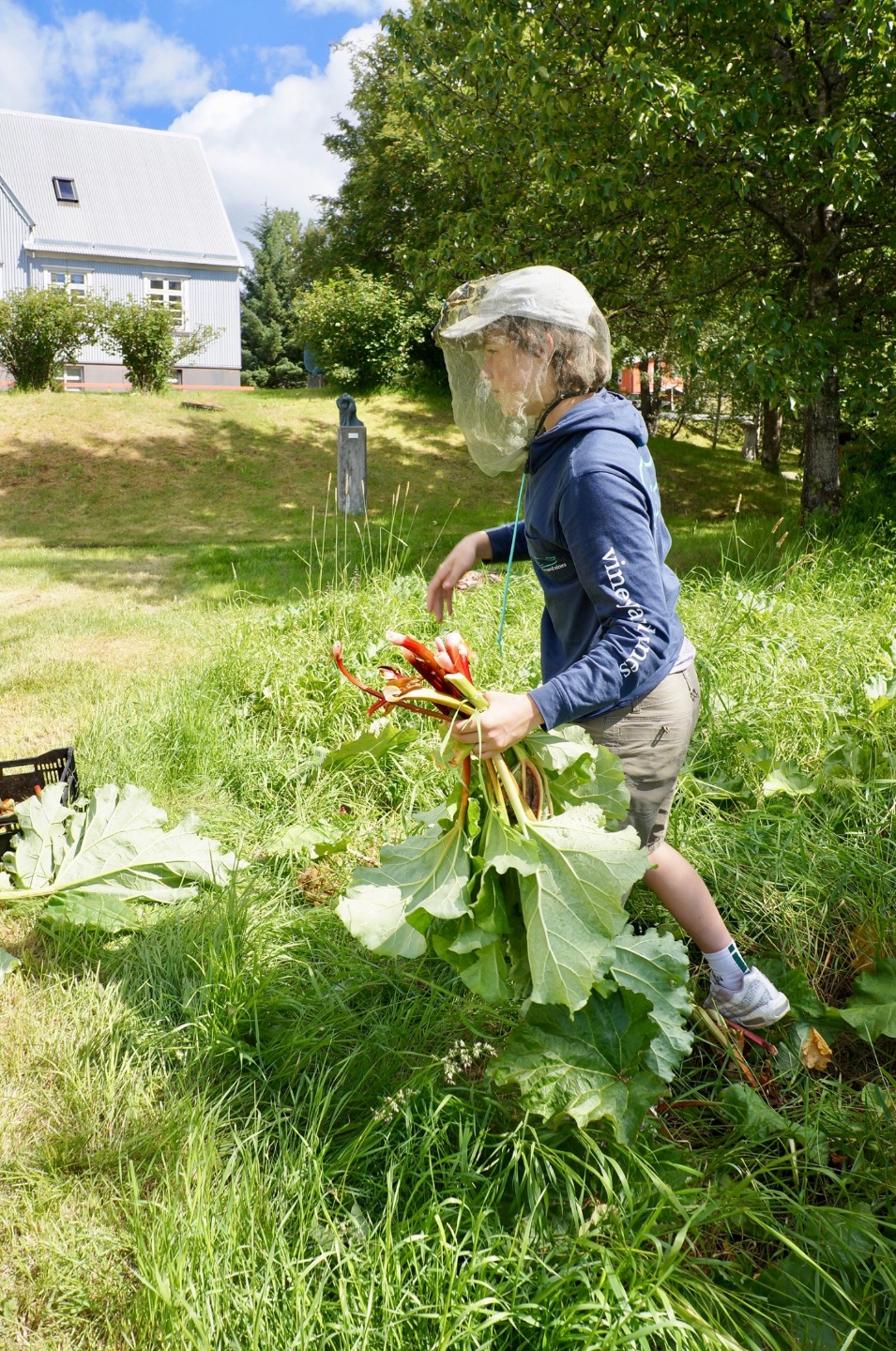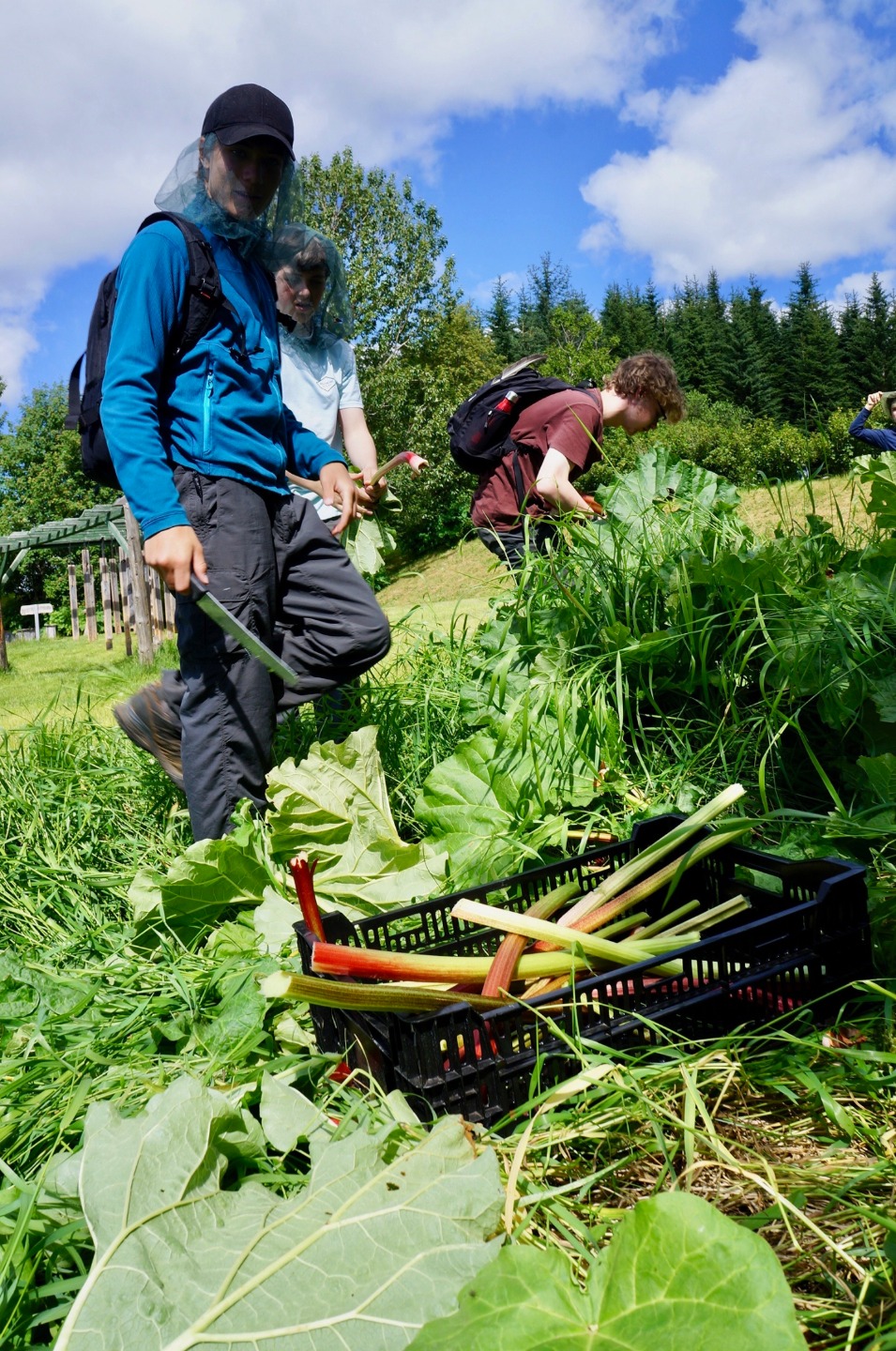 Today, I can say with a great degree of certainty, was the most successful and enjoyable service day of this trip so far. After a late wake-up hour of 7:45, and a great breakfast, we headed to the greenhouses of Solheimar to assist in the transportation of around 40,000 trees from the inside of the greenhouse to the area outside. We accomplished this task by forming a human conveyor belt, using pre-existing holes in the fabric around the greenhouse, After a short coffee break, we then went to the cafeteria to assist in the harvest of a patch of rhubarbs, a large, tart plant resembling a red and green celery stick. The rhubarbs were pulled from the ground, after which the bottom part anchoring the plant into the ground was removed as well as the large leaf at the top of the plant. They were then transported in crates to the kitchen where they were washed and cut into small slices for later use. Some people suffered varying degrees of injury during this process. We then returned to the guesthouse where I am writing this account. I have yet to see what the rest of this day shall bring.