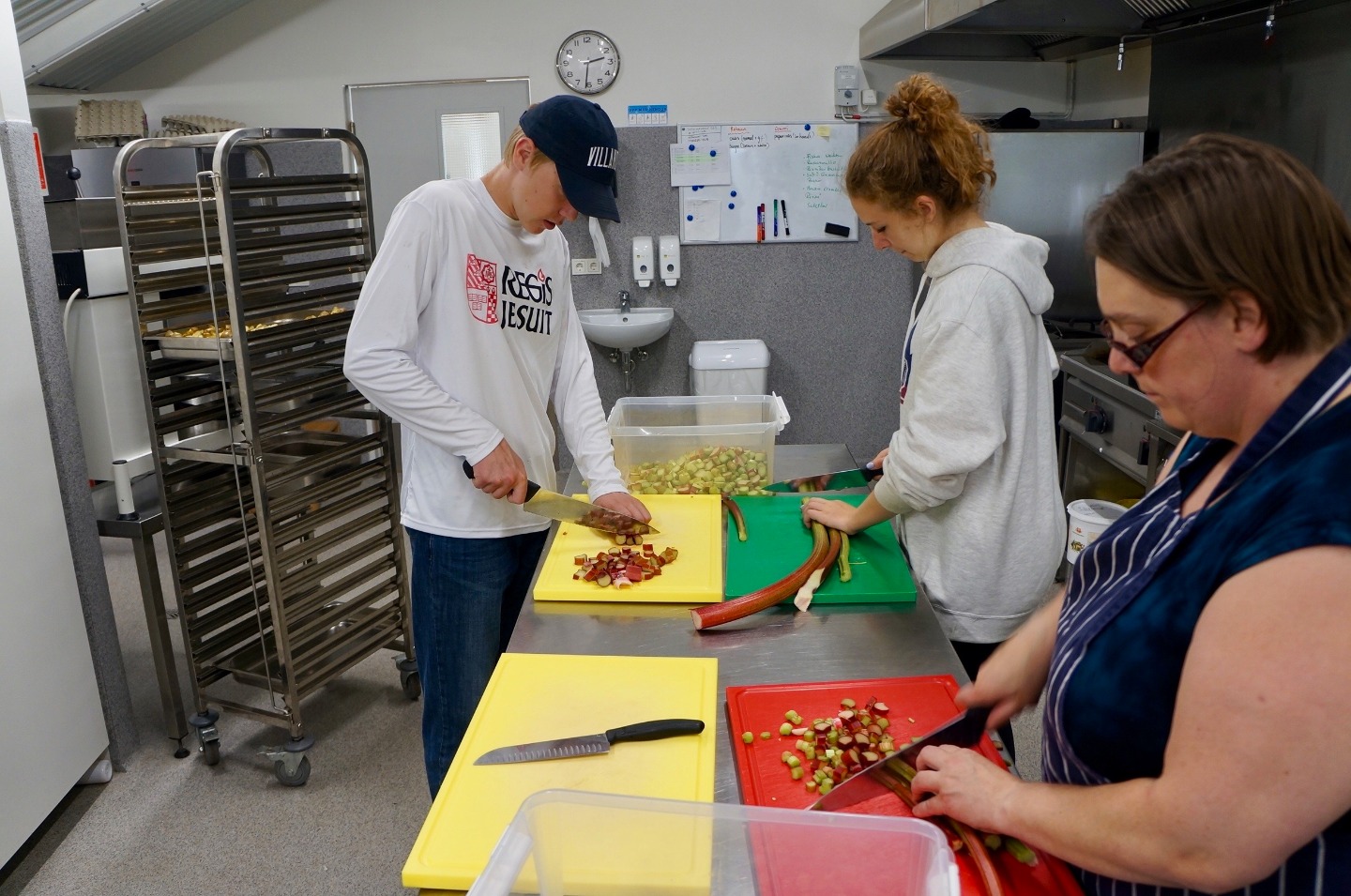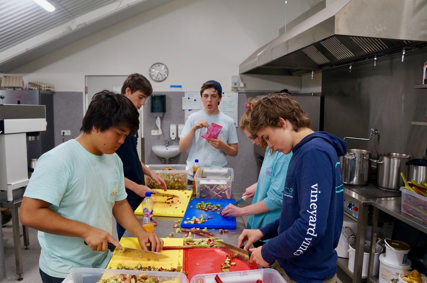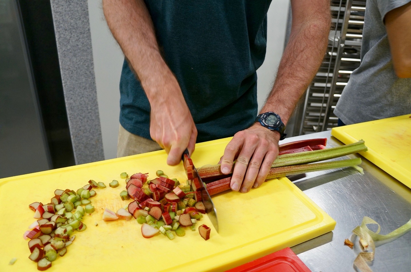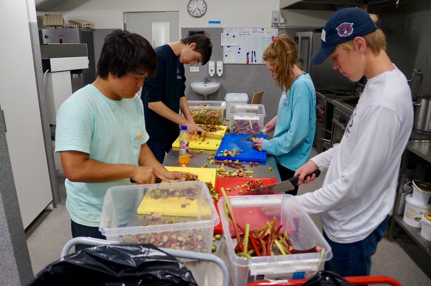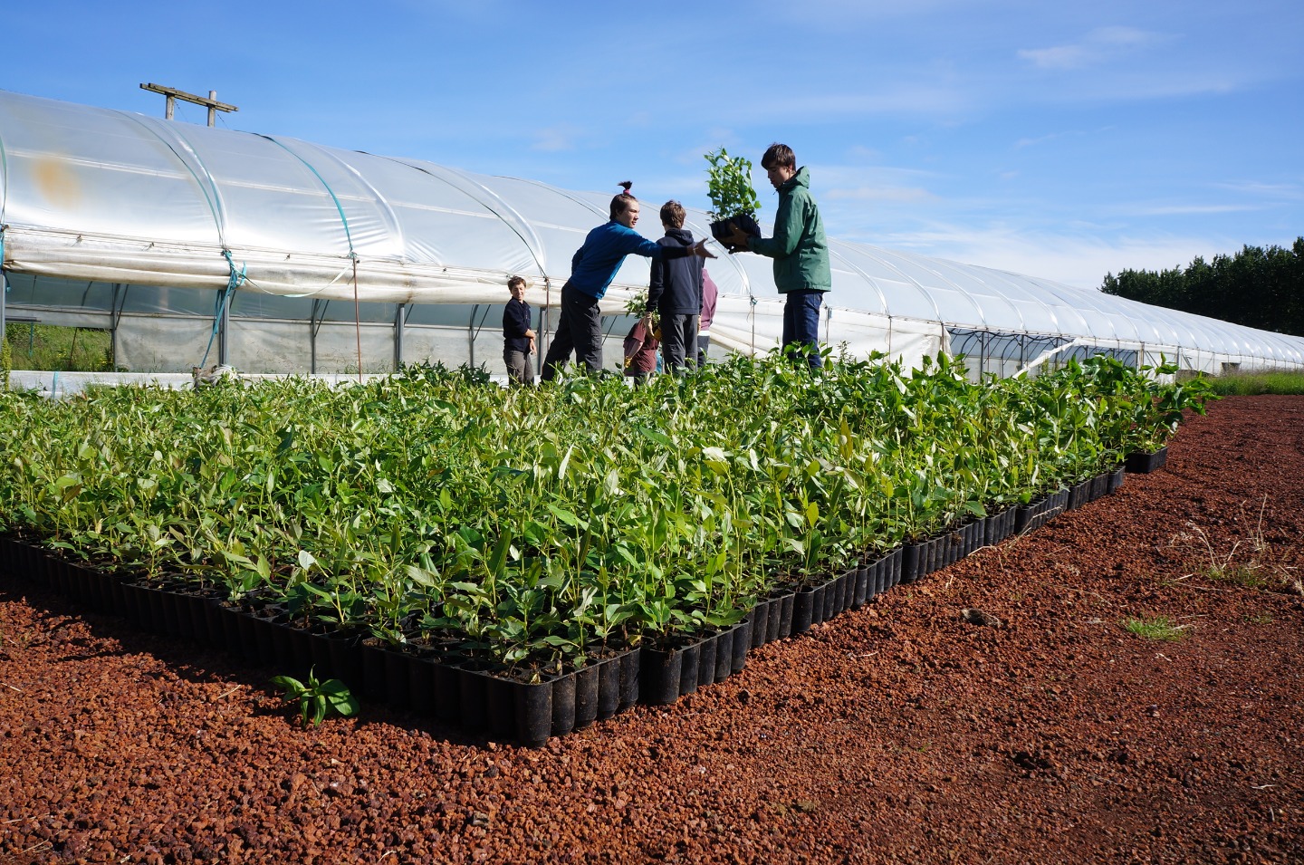 Today, I can say with a great degree of certainty, was the most successful and enjoyable service day of this trip so far. After a late wake-up hour of 7:45, and a great breakfast, we headed to the greenhouses of Solheimar to assist in the transportation of around 40,000 trees from the inside of the greenhouse to the area outside. We accomplished this task by forming a human conveyor belt, using pre-existing holes in the fabric around the greenhouse, After a short coffee break, we then went to the cafeteria to assist in the harvest of a patch of rhubarbs, a large, tart plant resembling a red and green celery stick. The rhubarbs were pulled from the ground, after which the bottom part anchoring the plant into the ground was removed as well as the large leaf at the top of the plant. They were then transported in crates to the kitchen where they were washed and cut into small slices for later use. Some people suffered varying degrees of injury during this process. We then returned to the guesthouse where I am writing this account. I have yet to see what the rest of this day shall bring.