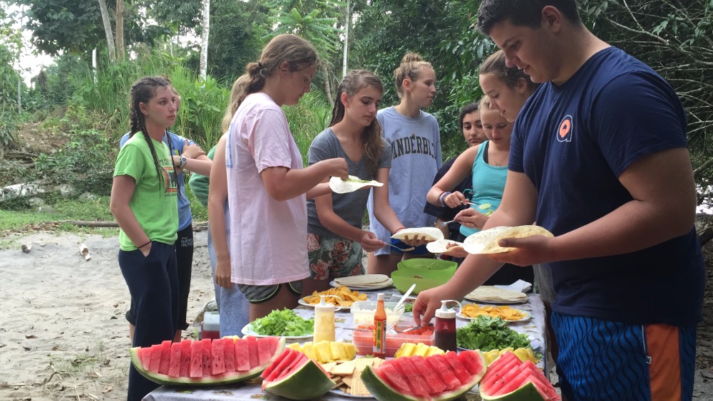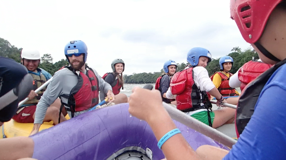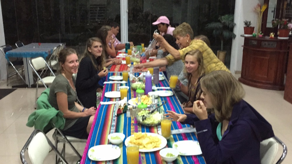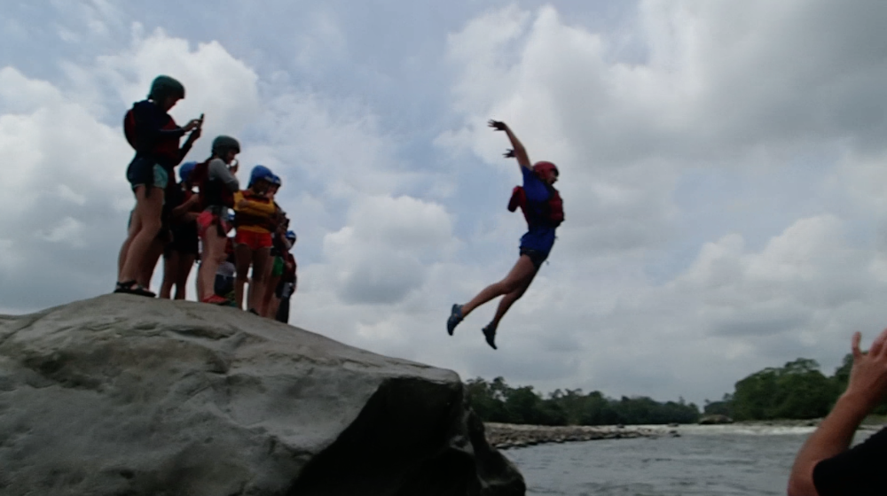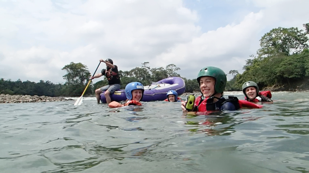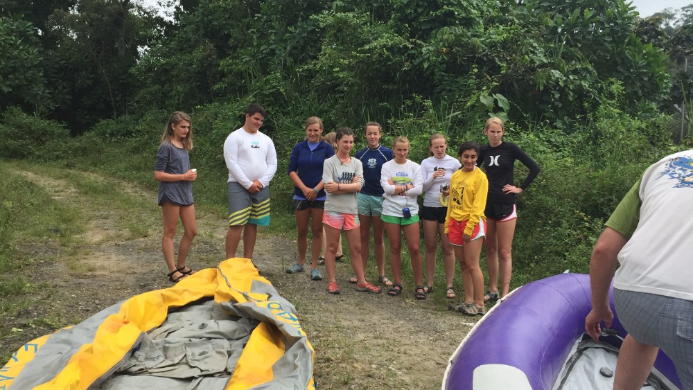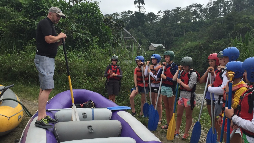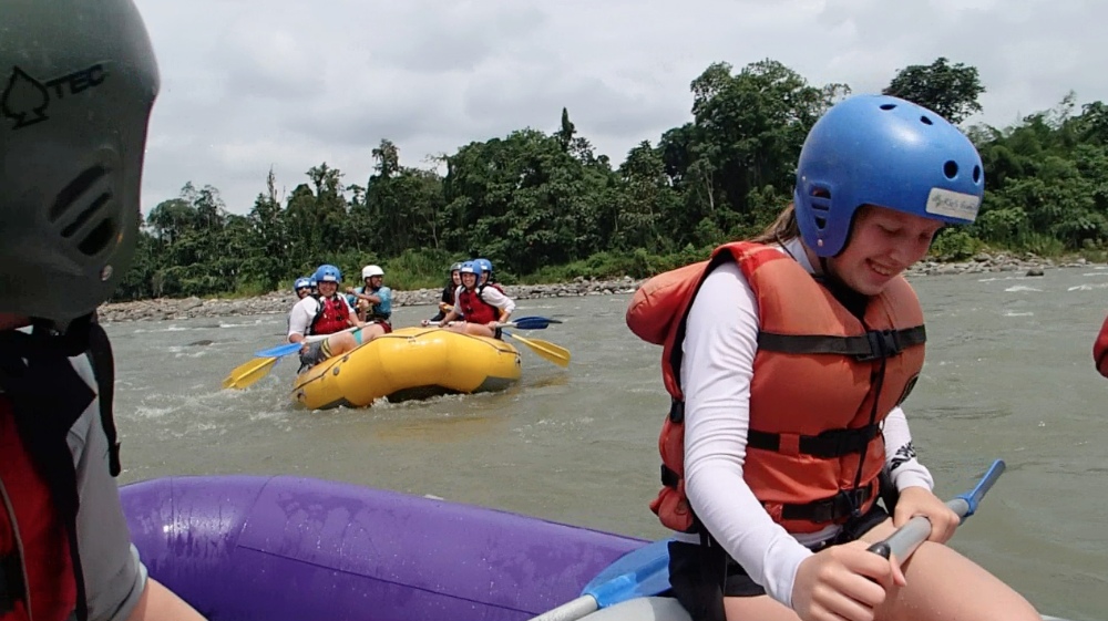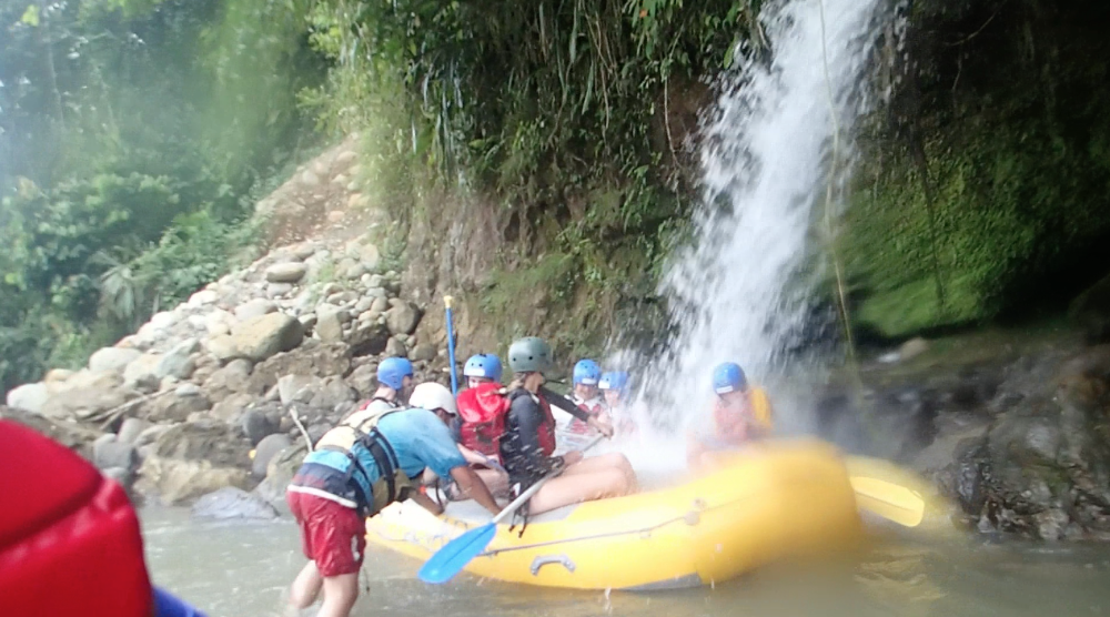 Today we woke up super early. The only thing that made waking up at 5:30 tolerable was Nicole’s full head of cornrows. After breakfast we headed out to the bus on our way to whitewater rafting. Everyone was super jealous of Luke’s poncho because it was really cold out. On our way to rafting, we stopped at a gas station to pick up our guides. Then we continued on a long bus ride. Some people were a little nervous about traffic since Pope Francisco was coming today to visit Ecuador! We kept seeing signs with his face on them and we all secretly wanted a t-shirt with his face on it. Halfway through the bus ride we stopped at a rest station and got grilled cheese sandwiches; they were so good! Also, Lauren got a really good deal on bananas. She got 5 for one dollar and then she shared them with us! Then we left the rest area and continued on our path. We arrived at the river and the guides blew up the boats with a leaf blower. We split up into two groups: the yellow boat and the purple boat. Going down the rapids was so much fun! Everyone got soaking wet by the rapids or our constant water attacks on each other’s boats. Every once and a while the guides would say, Whoever is adventurous, jump out now! During the rapids. Some of us would jump out and try to survive the waves. We even stopped at a giant rock and jumped off and swam back to the boats. After amazing fun during the rapids, we changed into dry clothes and had great burritos provided by our guides! Then we hopped back on the bus to go back to the hostel. It was a very long ride back (4 hours)! Then after already being late to the restaurant, we took 10 minutes to change into nice clothes for our final meal together. The food was great and we all loved it, especially the ice cream and cake at the end. At 10:30 pm we met for a closing meeting where James showed us a video of the whole trip. The video was a great way to end the trip and nobody wants to say goodbye! The three weeks went by so fast, but everyone had a life-changing experience that they will never forget!