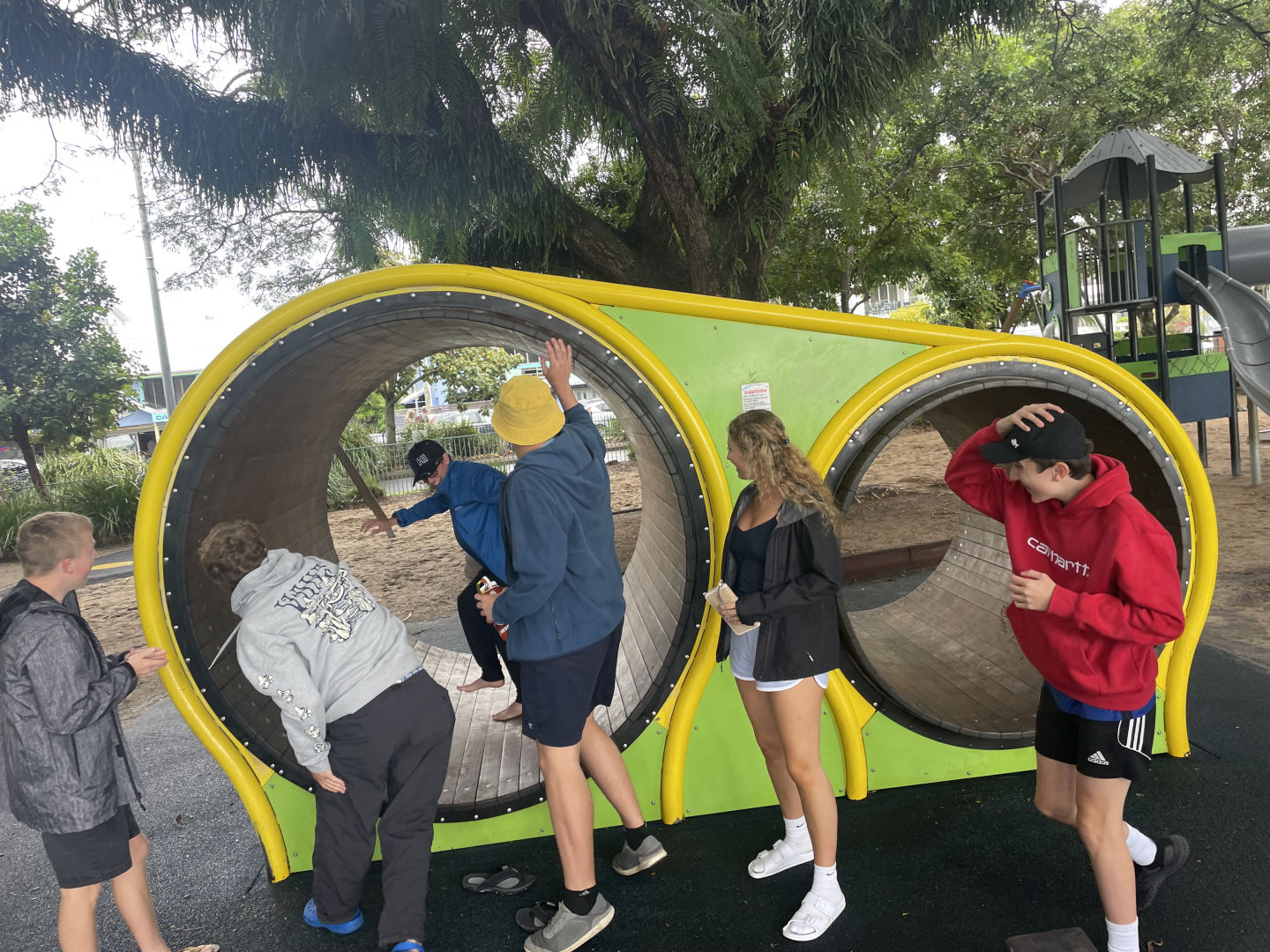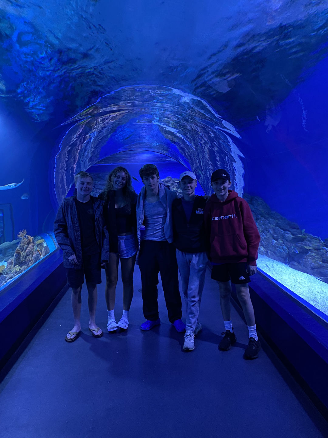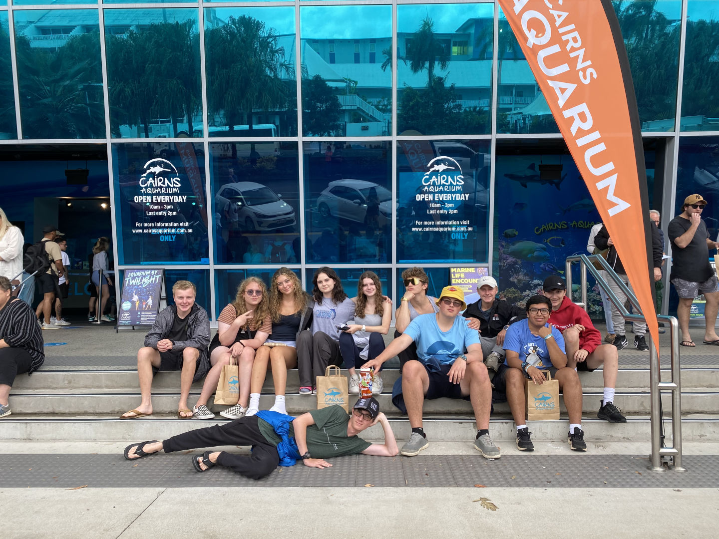If you asked me, our time in Australia flew by faster than expected. Today was our last day before we’d have to hop on planes and go our separate ways. We started our day with an 8:30 a.m. wake-up and packed all our things to head out of Cairns. Some of us took a trip to a Coles, a nearby grocery store, to stock up on snacks for the plane ride and to bring some snacks back home. To fuel us for our full day, we had a delicious brunch at Muddy’s cafe near the Esplanade, and directly after, some of us took a spin on the hamster wheel at the playground nearby. Thankfully, despite the dizziness, all the food stayed digested. Then, we headed over to the aquarium, where we were able to see coral, snakes, sharks, rays, reptiles, and fish, and of course, we visited the gift shop at the end. Around 1 p.m., we took the bus back to our hostel, where we collected our bags and took taxis to the airport. After waiting in a very long line, we successfully checked our bags, smoothly made it through security, and arrived at our gate for our flight back to Sydney. We landed around 8 p.m., got our bags from baggage claim, and drove to our hotel. After having a yummy dinner at the restaurant, we did one final round of a squeeze, said goodbye to those going on early flights, and headed to our rooms for bedtime.