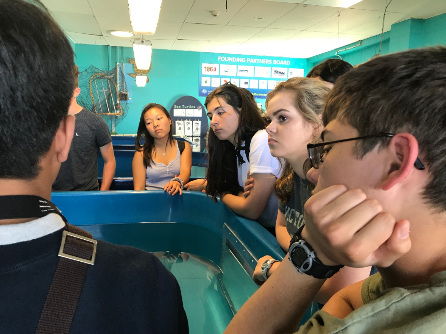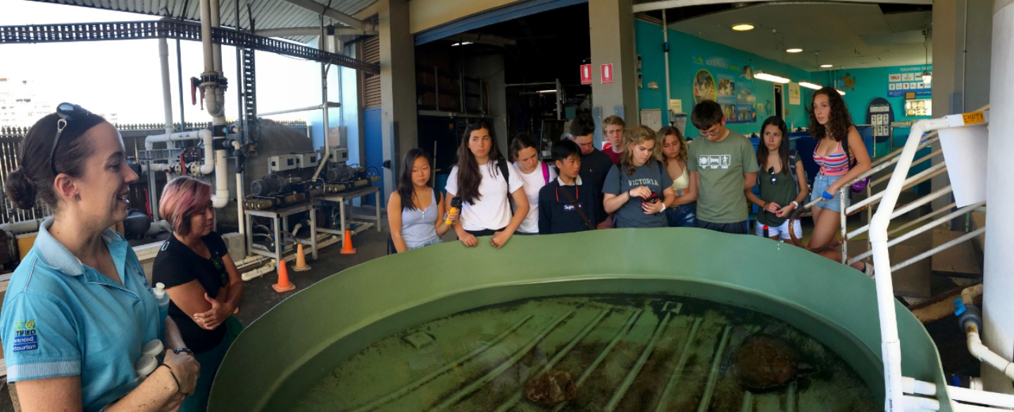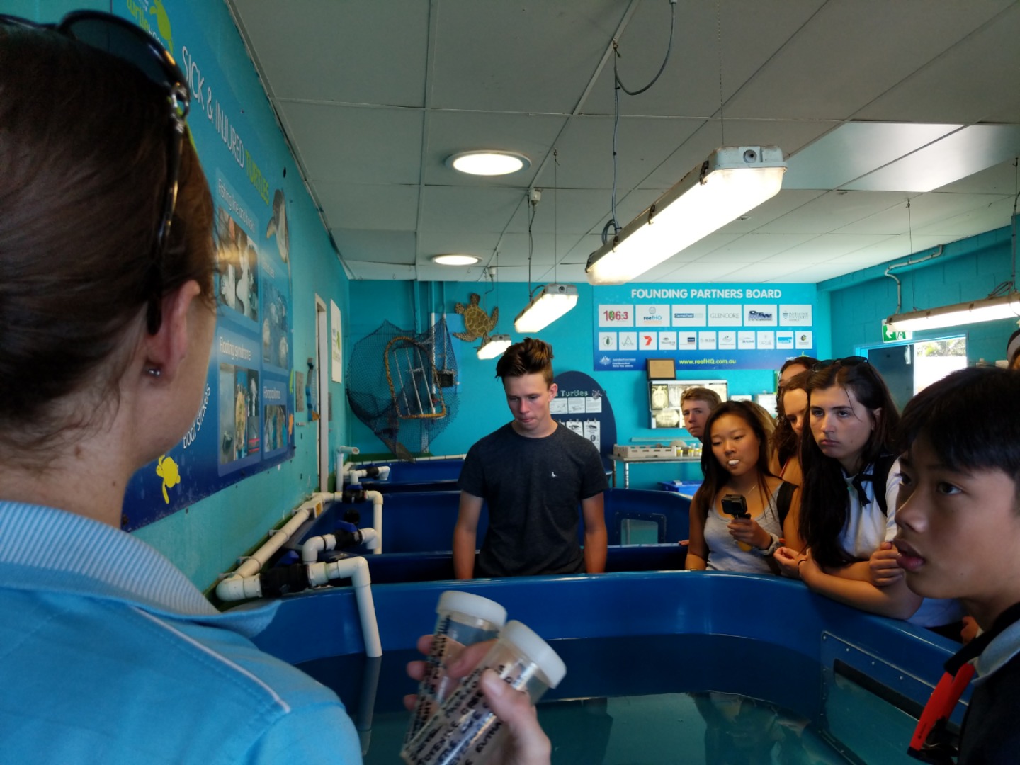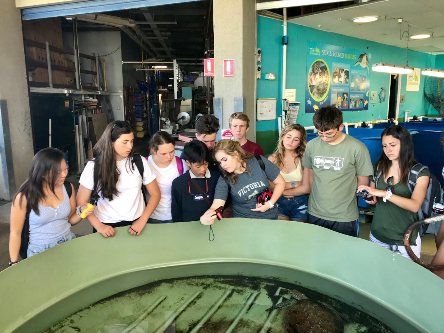 Today was quite the eventful day; full of lots of activities and fun. I was shaken awake at a brisk 5:30 A.M., and we started the day off with some yogurt and assorted cereals. It was now that we’d have to say goodbye to our temporary home, the Eureka II, and set off on land once again. We thanked and said goodbye to our skipper and mate and set off. We lugged our bags up to a taxi and drove over to the bus stop to get on our Greyhound Bus. I have never been on a Greyhound Bus before, so this was going to be a cool new experience. I hopped on with my ticket and assigned seat and got comfy for our ride. What came next was five long hours of uncomfortable sleep and sitting, but it seemed to go pretty fast. We arrived at our destination, Townsville, around thirty minutes early, so we had some time for a bathroom stop. Then, we took another short taxi to our next temporary living space, Civic Guest House. We got some time to unpack before our main event of the day: the aquarium and turtle hospital! My group and I were particularly excited to see some of the Australian marine life up close. We saw all types of fish, including Lionfish, Stonefish, and even sharks! We toured around the aquarium for a short amount of time, and then we got to the exciting part: the turtle hospital. The guide informed us that there were currently two “patients” in the hospital, both of which had been suffering from flotation syndrome, which makes turtles float involuntarily. It’s caused by intestinal blockage, stress, and many other things. It can be lethal to many turtles because it obstructs their ability to dive for food or evade predators or boats on the surface. The guide also showed us some examples of things that had gotten caught in turtles’ intestines, such as tangled fishing line and small pieces of plastic. It was a sad sight to see these animals in such delicate condition, but still satisfying to know that they were healing and would soon be back in the wild. After our visit to the aquarium and hospital, we headed back to the hostel for one of our forums. We prefaced with a short story and had an in-depth group discussion about our values. We shared some intimate stories and ideas, but I feel like we’ve grown a lot closer, and we all really trust each other. We ended with some of James’ famous chili, which by the way was DELICIOUS! Some of the best I’ve ever had. All in all, it’s been a busy day, but we had some great positive experiences together as a group. Now it’s time to get some rest and rejuvenate for tomorrow because it sure holds more exciting things!