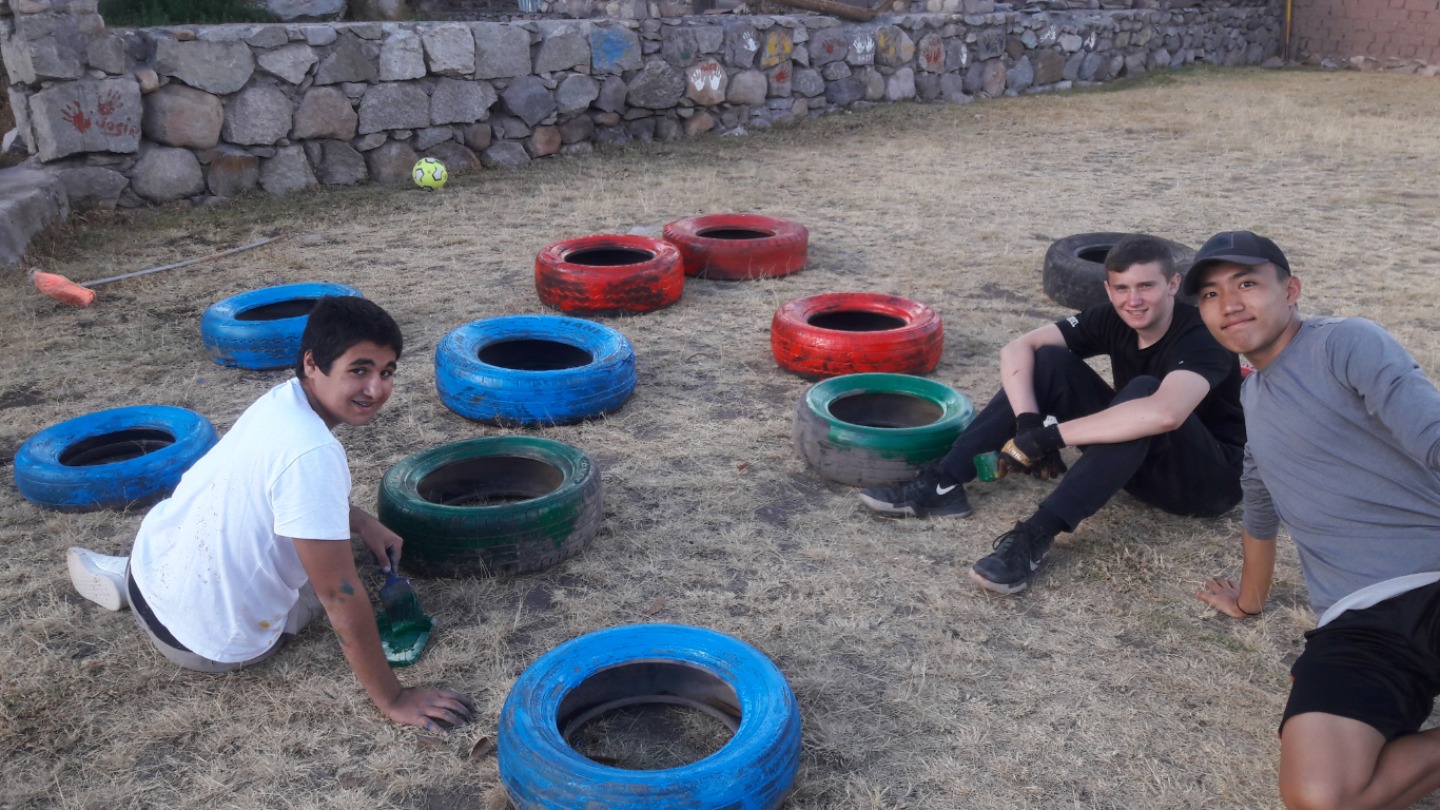 Freezing morning, we arrived at a disability school in Urubamba, carrying all the tools we needed for our service. We started by giving self-introduction to the group of kids who were at the school. The team, kids, and the teachers came gathering around in a circle while we get acquainted. Soon, we started painting the poles with yellow paint. The first day of service when we did painting, the boys(me, Robert, Hunter) were terrible at painting! But as the services went along, we all improved our fine motor skills. So today, we all did a great job. I somehow mixed some perfect paint, and my painting went smoothly. We painted the poles, playground, and the walls. It was A LOT of painting!!