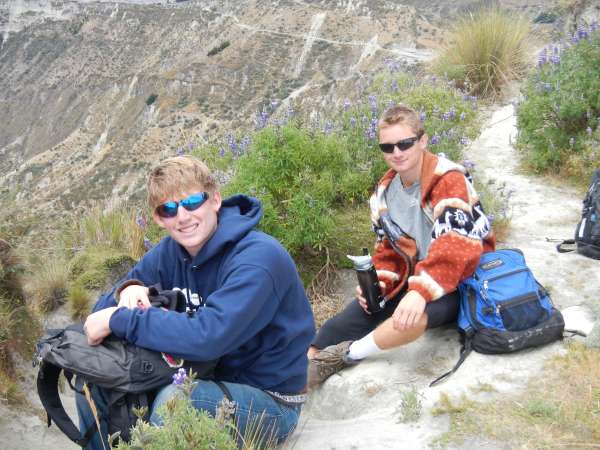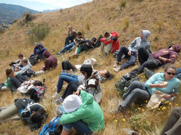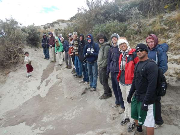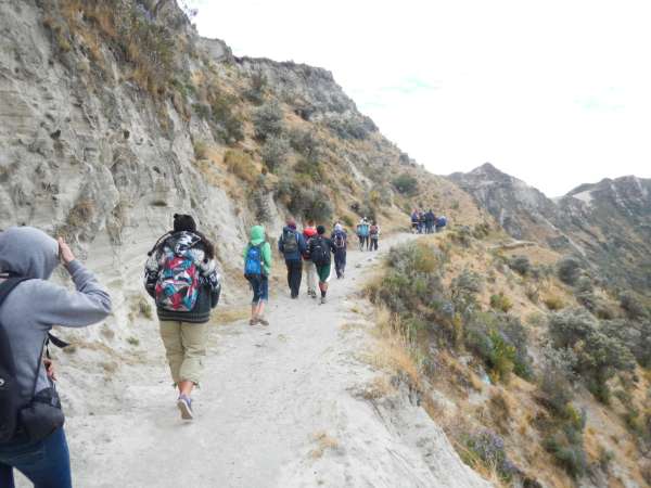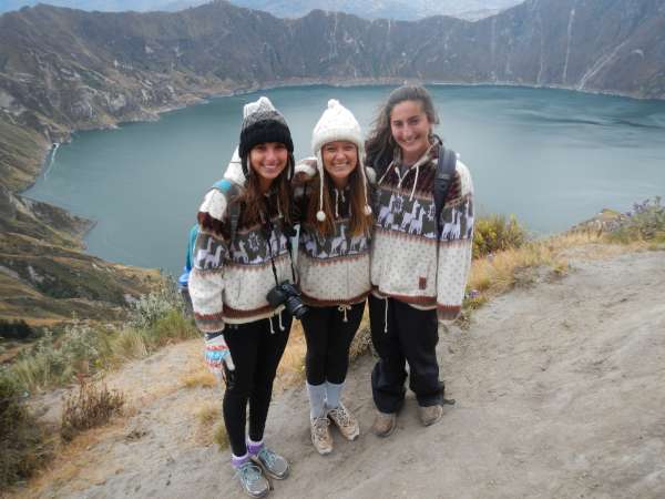 Today we took a loooonnggg hike; 10 kilometers! We began our ascent to Quilotoa Cauldera (volcanic crater)by piling in the back of an open truck, and it was quite the bumpy ride. After 45 minutes we arrived at the town of Quilotoa, and the view was spectacular. The wind was whipping, but it was worth it to see the beautiful lake surrounded by enormous mountains. After bundling up in our Alpaca sweaters and hats, we began hiking around the crater. When we all survived the wind blowing us side to side on the ridge of the crater, we began our steep descent into the valley. We were all slipping and sliding down the mountain made of loose sand. Almost all of us took one or two spills. After about 4 kilometers, we took a well-deserved lunch break and were able to enjoy our beautiful surroundings. Although we all wished to stay at our lunch spot for longer, we had more hiking to do! We began heading to the town of Guayama San Pedro and then found out how truly steep the walk into the valley would be. There was much more slipping and sliding, not even the side of the mountain could hold on. Part of our trail was blocked by a landslide, but luckily our trusty guide Nivaldo was able to help us safely to the other side. More hiking awaited us, and soon we had to begin hiking back up the other side of the valley to our town of Chugchilan. The uphill was brutal with high altitude, a beating sun, and all of us getting more exhausted by the minute. When we finally made it back to town, we were all rewarded with an immense sense of accomplishment and some free time! Some of us even took the opportunity to try the Black Sheep Inn’s zip line. After a long day of hiking, we’re all ready to hit the sack. We’re all looking forward to what’s in store for us tomorrow in the Andes.
