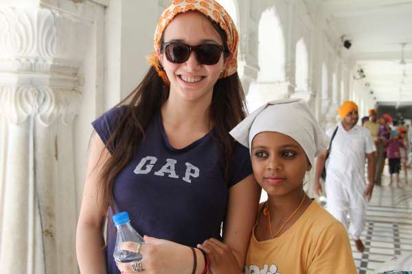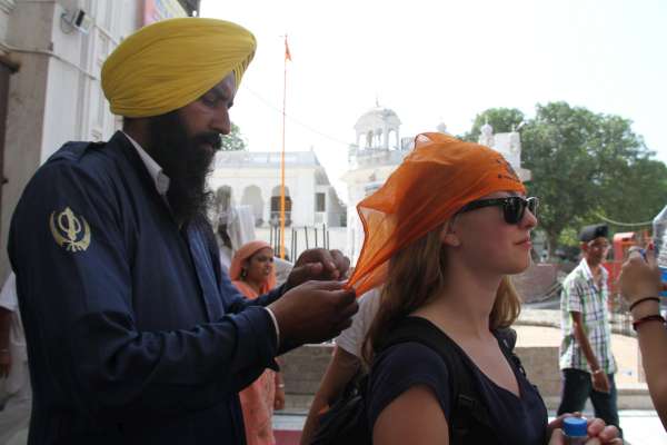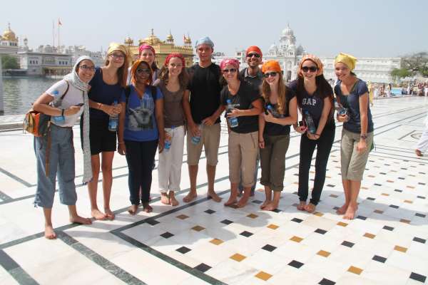 This morning we set off again for the airport, flying to Amritsar on our way to Dharamsala. In Amritsar, we had yet another beautiful lunch and then set off for the Golden Temple, a famous and crowded Sikh temple there. The midday sun had every one of us drenched within minutes, and the marble floor was almost too hot to step on, but everyone agreed that seeing the temple, with its beautiful main-golden building as well as all of the white walls around it, was worth it. We also got to ride in a rickshaw, and gleeful laughter could be heard as we went bouncing along down the road. This was not our final destination, however, so we then set off on the four-hour car ride up to Dharamsala. For the first two hours, the car was completely silent, as every single person (except the driver of course), was asleep. As people started to wake up, we were mesmerized by the scenery of the Indian plains as well as the motorbikes with whole families loaded onto them and the constant honking of horns by all drivers.
