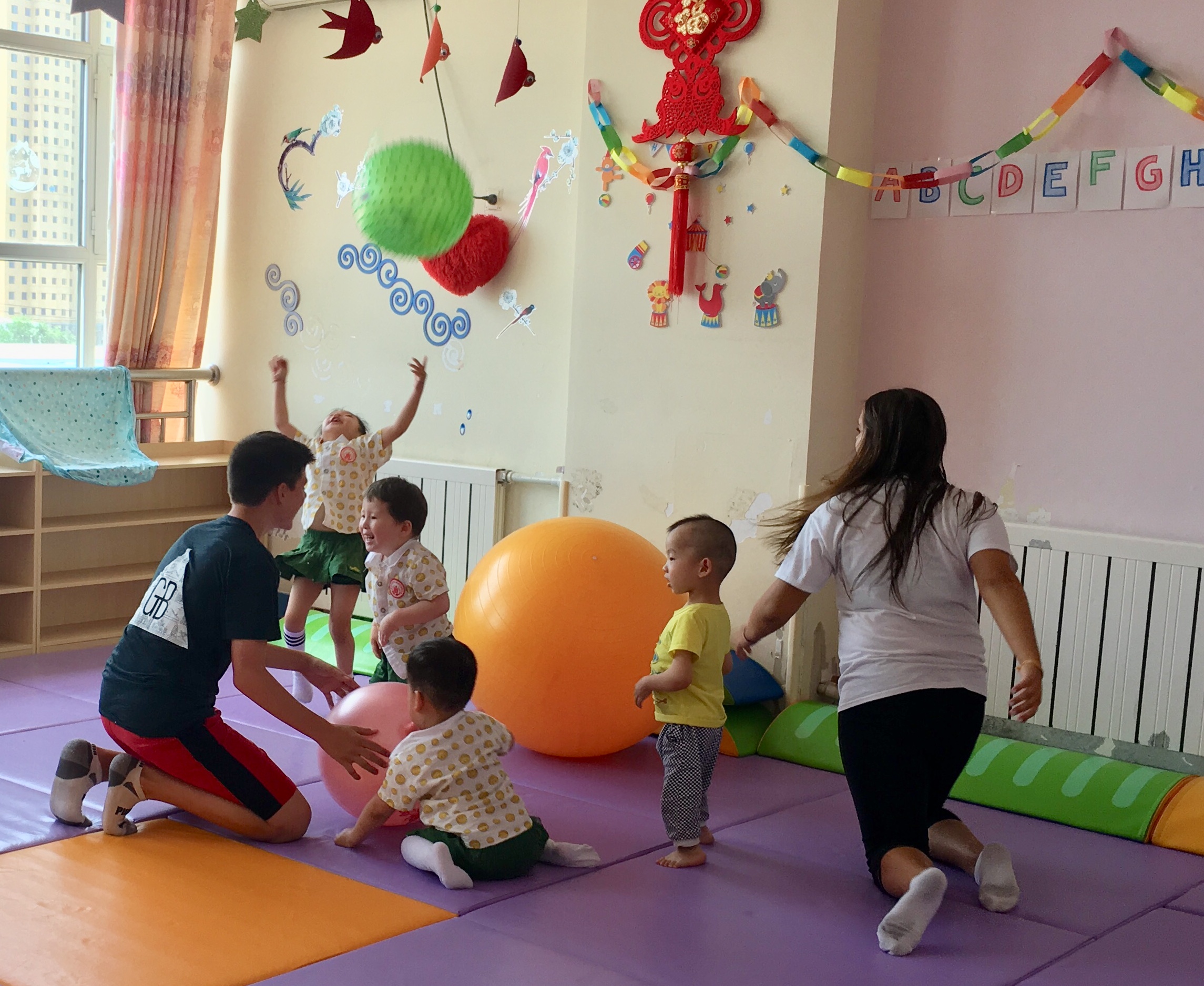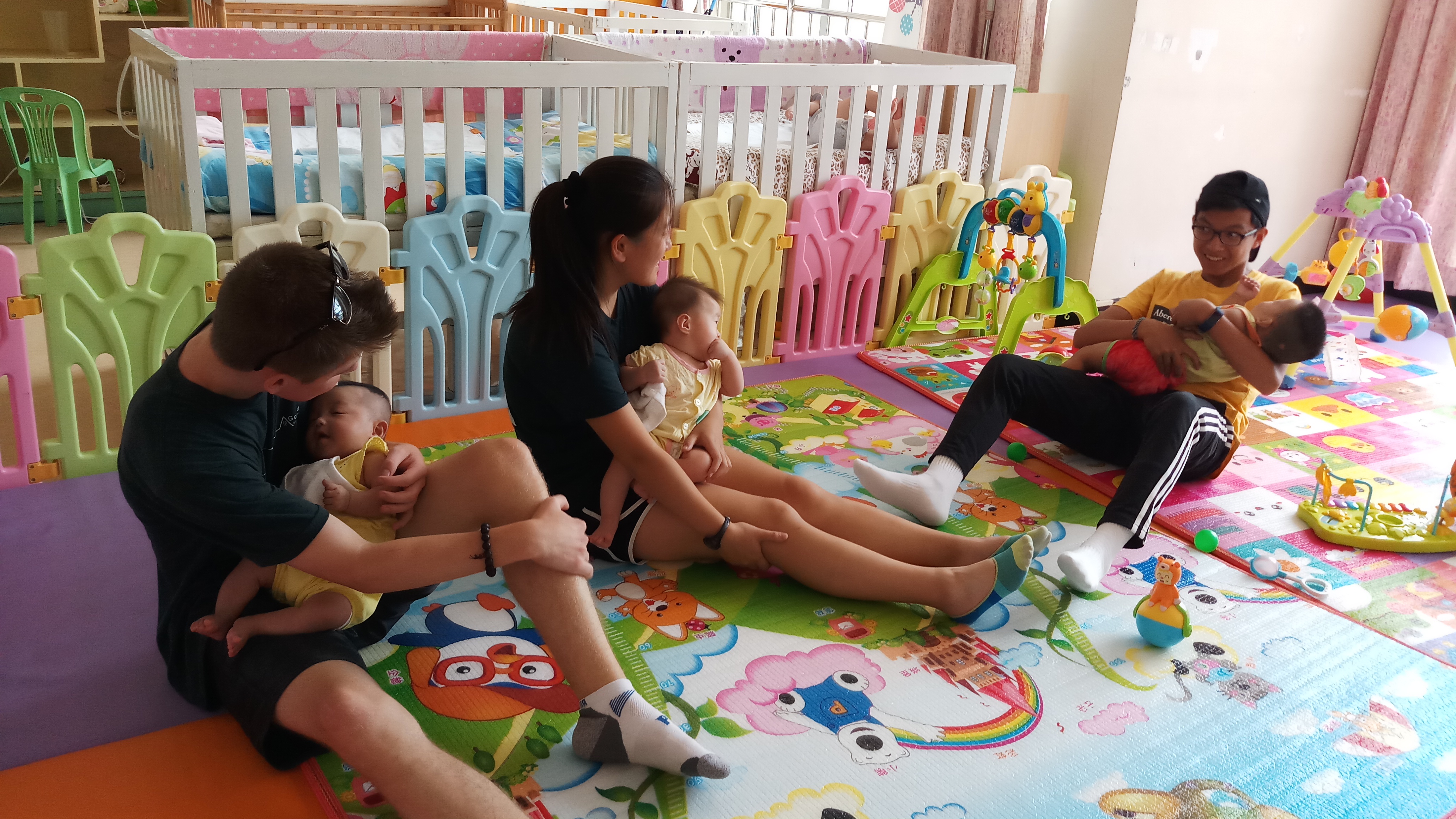 On July 7th, we went to the Little Flower Baby Home in the public orphanage in Baotou. The place was so happy and colorful which was a massive contrast to the drab idea of an orphanage. The older children screamed with pleasure when they saw us and regarded us as “GeGe” and “JieJie,” meaning older brother and older sister. The energy was overwhelming on the first day as they were not shy at all. These children just radiated energy and joy so we all couldn’t help but feel the same way. The kids pulled us into the play area and yelled at us to join them. The women who took care of the children, regarded as “Ayi” (i-e), meaning, “aunt,” watched us with the children and were surprised and pleased with how gentle we were with the kids. In the baby room, it was so much calmer, but the babies were just as happy. It was so heartwarming how happy the kids were.