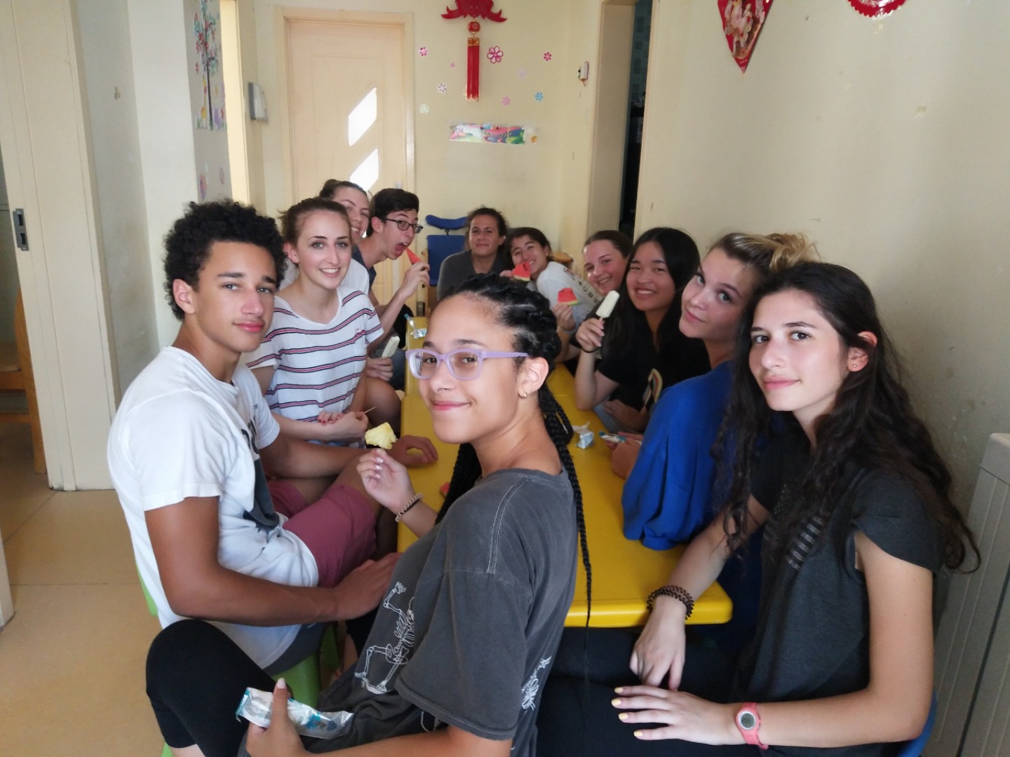 We started out our day by going to THE Apartment, a wonderful building that smelled only slightly like clay. It’s okay, though, because not even the smell of clay could deter our excited chatter as we talked about the day to come. After a jazzy little walk to the orphanage, each carrying our respective baby slobbered clothes (it was so, so worth it) in laundry bags, we met at the conference room and dispersed. Playing with babies was the definite highlight of the day. Then, we ate some tacos. They were good. Maybe just as good as the fruit and milk popsicles the folks at Little Flower kindly made us. We also had a forum about communication. It wasn’t about texting, but more. Overall, it was a great day. Now I’m tired…too much smiling. Goodnight.