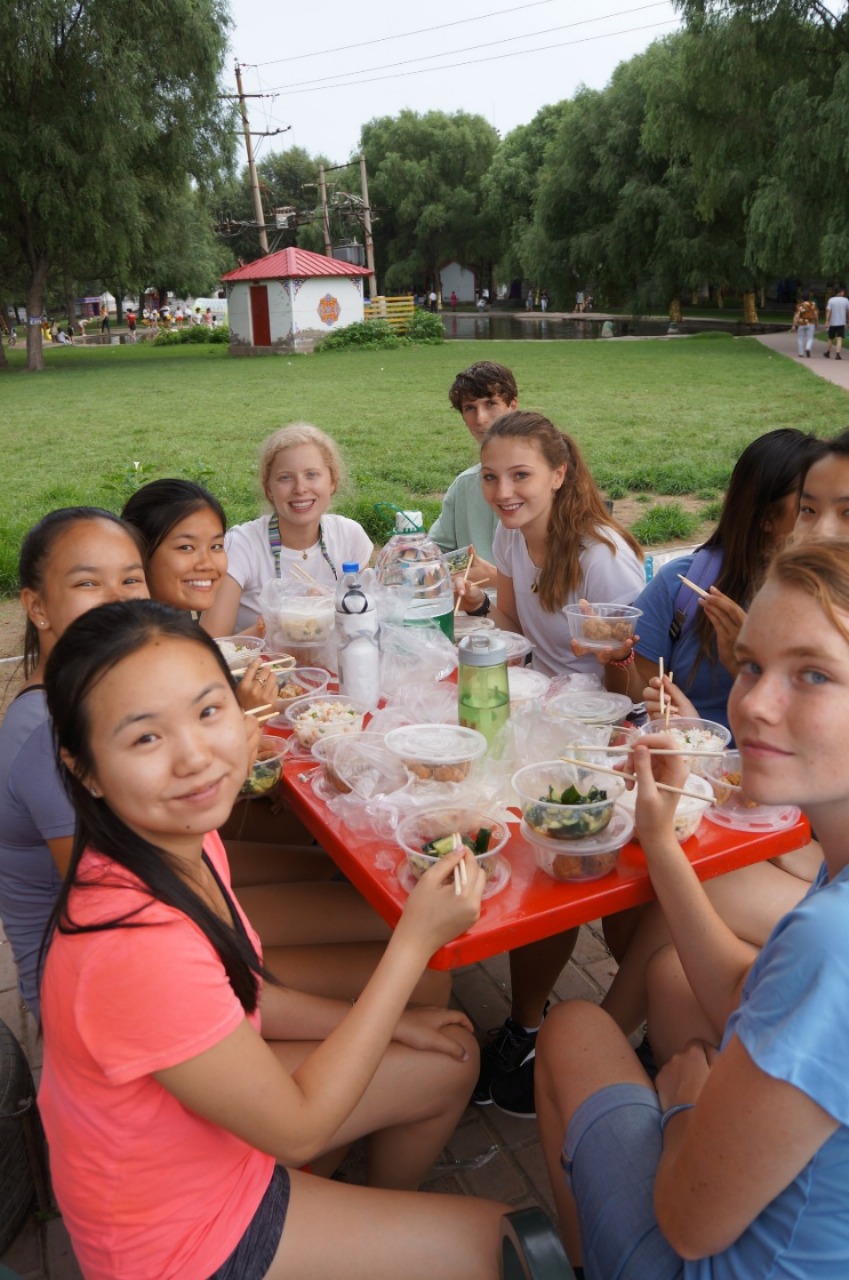 We started the morning early by arriving in Baotou at 7:04 am. Because getting a bus here is hard, we split up and took cabs to the hotel. The hotel is by far the best one we’ve had. We were especially excited about breakfast because there wasn’t just Chinese food, there was toast, yogurt, and even coffee. Because of the train ride, we had the morning off and got to relax, and in the afternoon, we went to the orphanage. The first thing we saw was a drop-off box, where Chinese families who cannot properly take of their child can anonymously drop off their babies. It was sad to see, but it was nice to know that the babies would be safe and taken care of. When we got inside the orphanage, we met the director, who gave us an overview of who they care for. We also got to see Jing Jing, a girl who we had played with at the hospital in Beijing. It was exciting to know that she’d recognized us too. The room that I went to consisted mostly of babies with Down Syndrome. The children were quiet when Alex and I first went in, but they quickly opened up to us. I got to play with a boy and a girl who were around 1 or 2 years old, and we had so much fun dancing to the music from the karaoke machine. After service, we were given a tour of the orphanage. It was amazing getting to see the “family units,” where a couple would volunteer to come live with a few of the orphans before they move into their forever home. It would give the children an idea of what a family is like to make the transition smoother. We spent dinner at the park and walked around. We also visited a stupa, which is a sacred site of Buddhist worship. We had to walk around three times for good fortune but because Shaun wanted to go back up after to take a “spinning selfie,” we had to walk around three more times. When the sunset, we walked back to the hotel for a good night’s sleep.