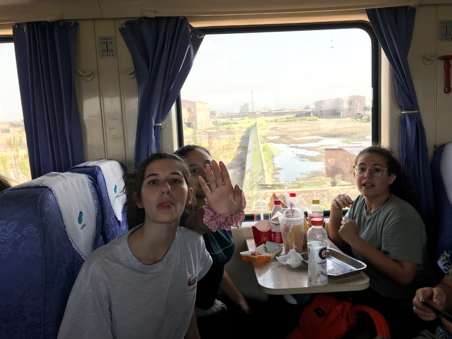 Given that this was one of our last group check-ins, we tried to develop a group game plan that would guide the 14 of us for the final third of the program. When it was time to head back to the hotel to pack, we walked back and threw together our three day-3 night bags and brought our bigger bags up to the hotel’s storage room. Right after, we met in the lobby and jumped into the van to head to the train station. After passing through the security and spotting McDonald’s, some of the group decided to order their dinner from there, and the rest picked up other train snacks and meals for the ride to Datong. During the 5-hour train ride, we chatted with locals, played cards, and enjoyed the beautiful scenery between Baotou and Datong. We’re now in the Datong hotel and are preparing for tomorrow’s Buddhist Caves and Hanging Monastery adventure.