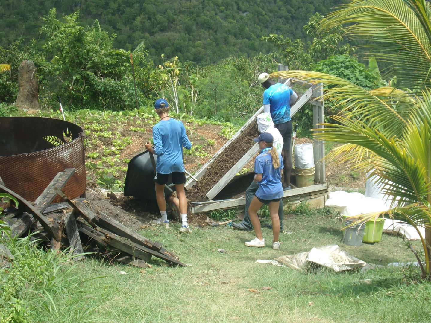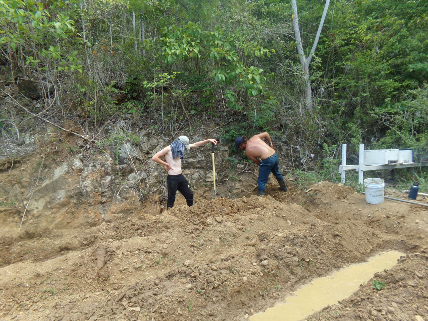 I spent nearly all day helping to dig irrigation trenches with Spencer, Max, Mel, Riley, Kris, Aly, and Jackson, and after lunch with Carolina, Ivy, Annie, Spencer, Max, ad Riley. While we were working on the irrigation trenches, the rest of our boat members were helping Aragorn with his compost. They helped to break down the bigger pieces of wood and brought the rest up to where Aragorn needed it. Not only did they have to get their hands dirty with the compost, but also had to work around a lot of bugs like cockroaches, spiders, and other bugs.
