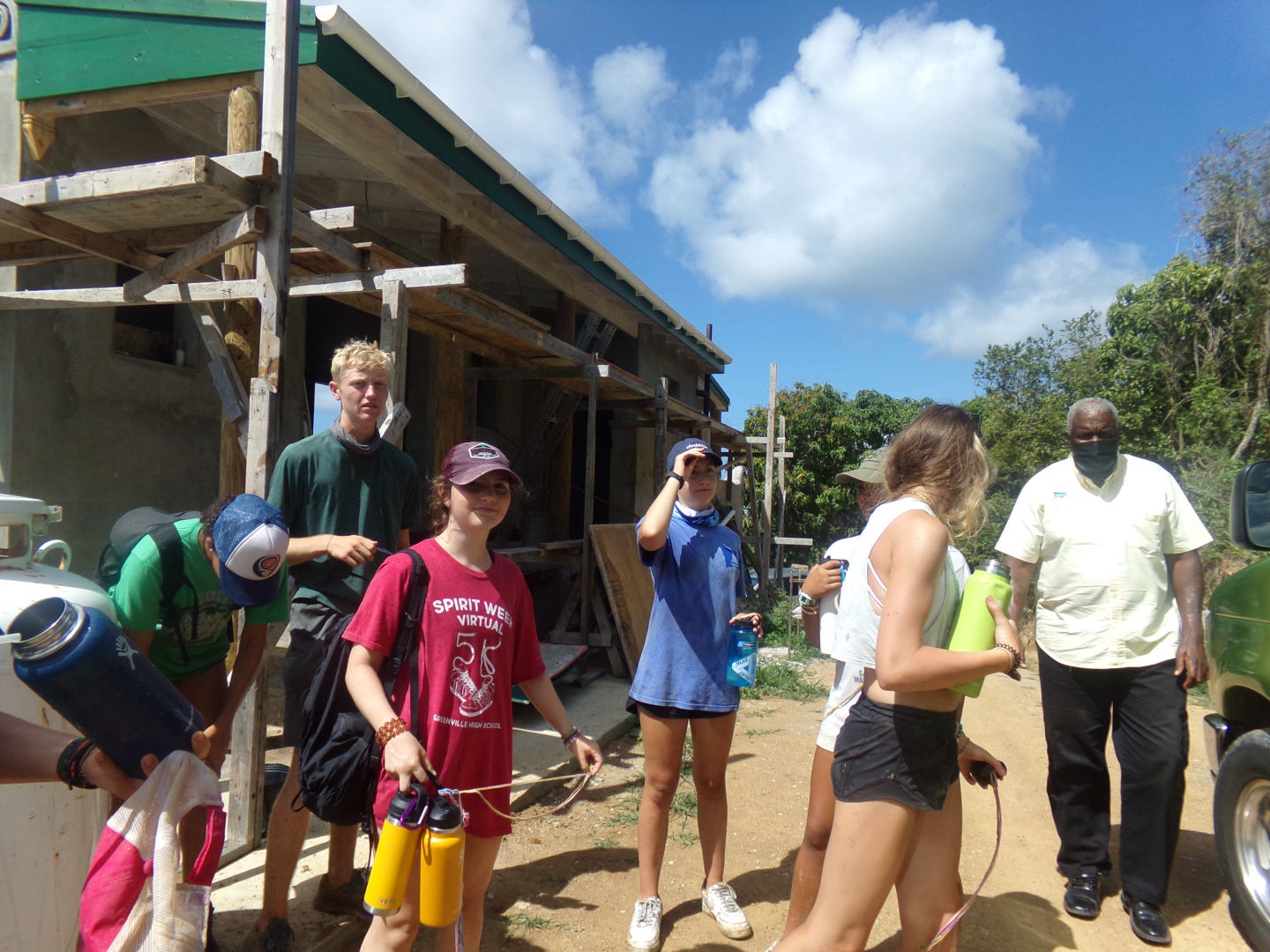 Today the day started off with scrambled eggs made by Tilly and Mel. Today, however, unlike the last time we made scrambled eggs, we cooked the eggs in 4 separate batches instead of all at once in a big pot, and they turned out much better. Quickly after cleaning up, we dinghied over to Beef Island, which is a separate island in Tortola territory. Once on Beef Island, we took a taxi over to Tortola, where we met a very nice man named Aragorn at his farm.