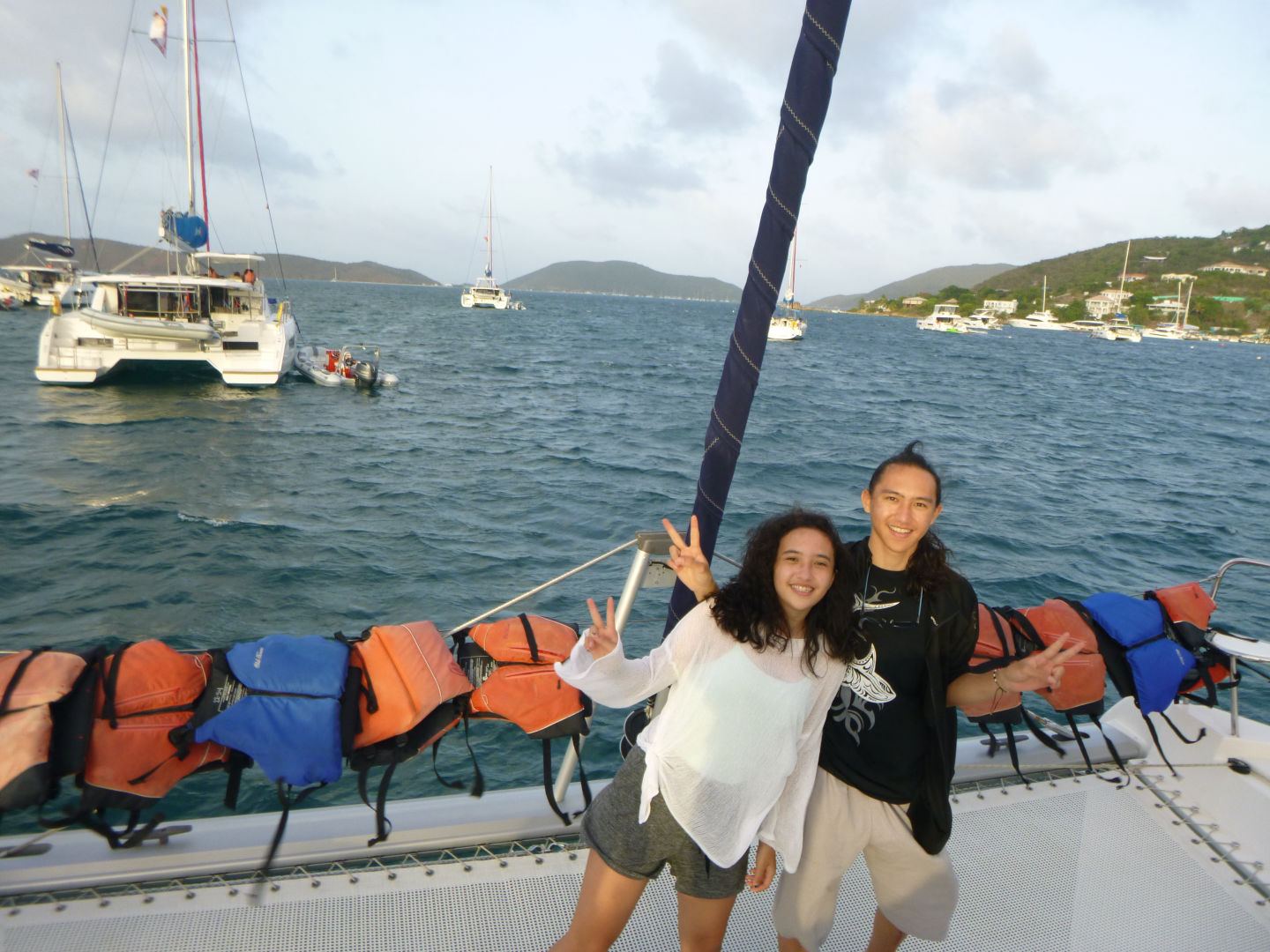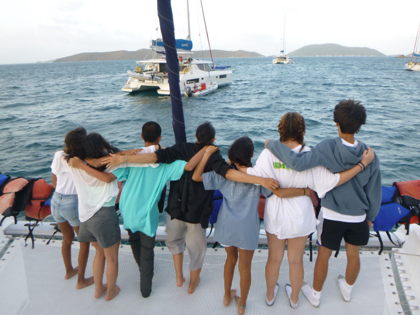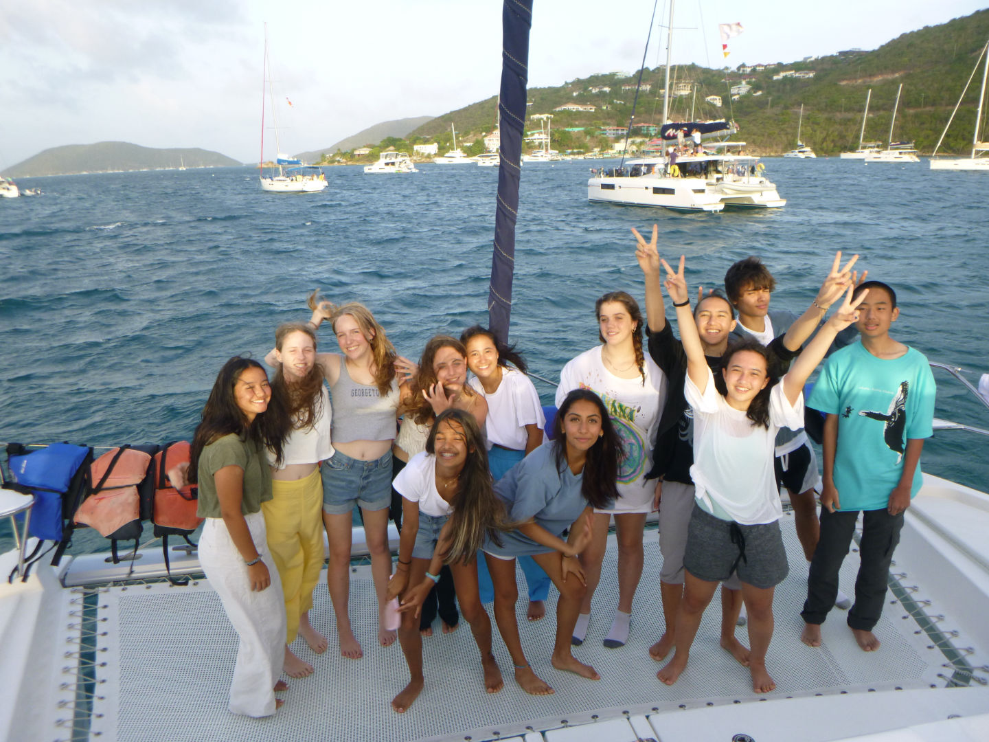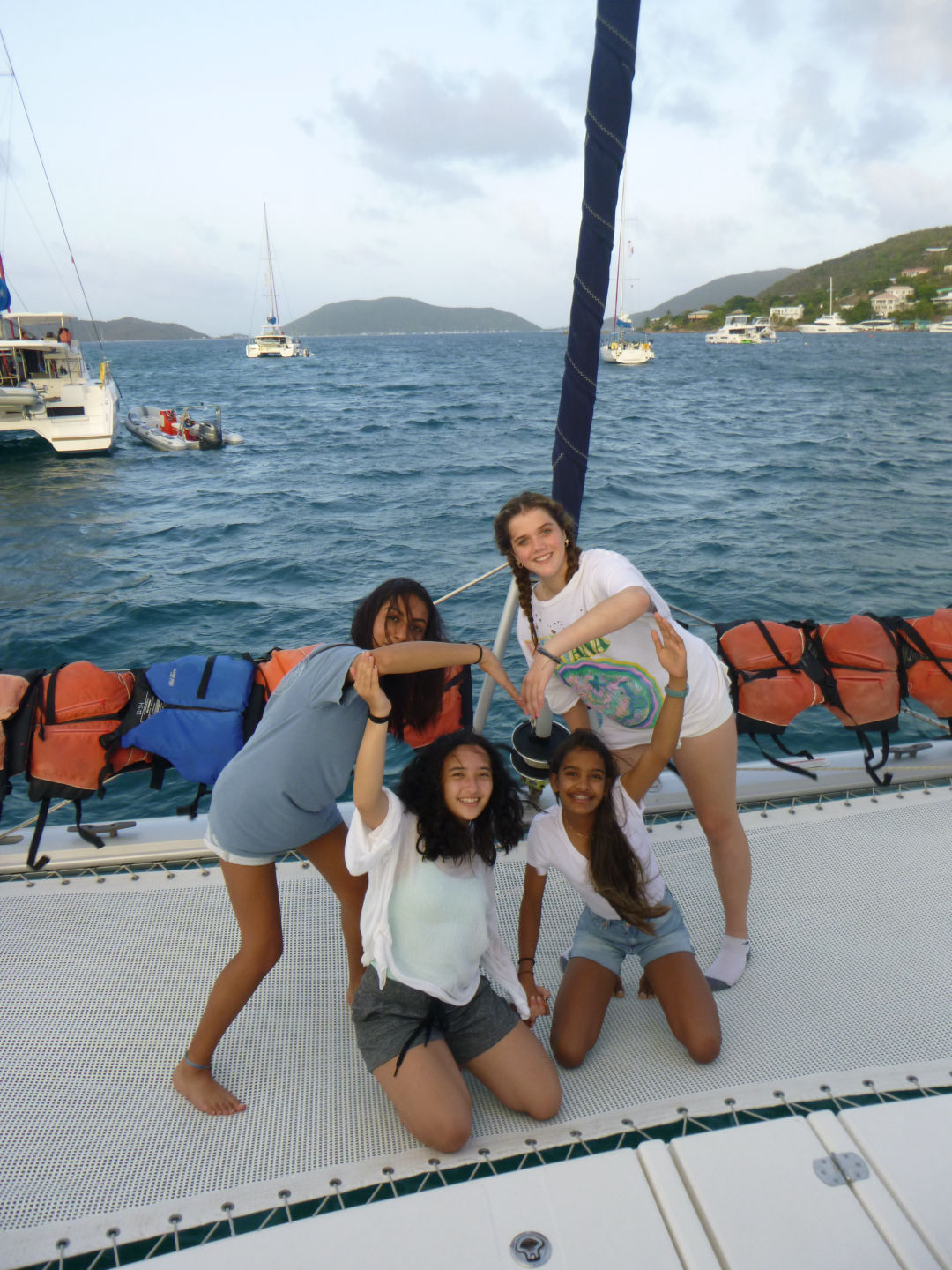 Hello Everyone. Hope you’re doing well. Today was more of a chill day. We woke up to French toast for breakfast thanks to our chefs— Chava and Sanaah. Most of us napped while we continued onward to Leverick Bay. Before getting ready for our ActionQuest BBQ, we had ocean showers, which was a change from the past few days of freshwater— though it was refreshing and fun to dive in the ocean. All of the boats met at Leverick Bay, and we had some scrumptious barbecue, salad, and lemonade. Then we danced, partied, and mingled to some classic jams on the beautiful bay until night. It’s time to get some rest for our long day tomorrow toward Anegada. We love and miss you, parents!