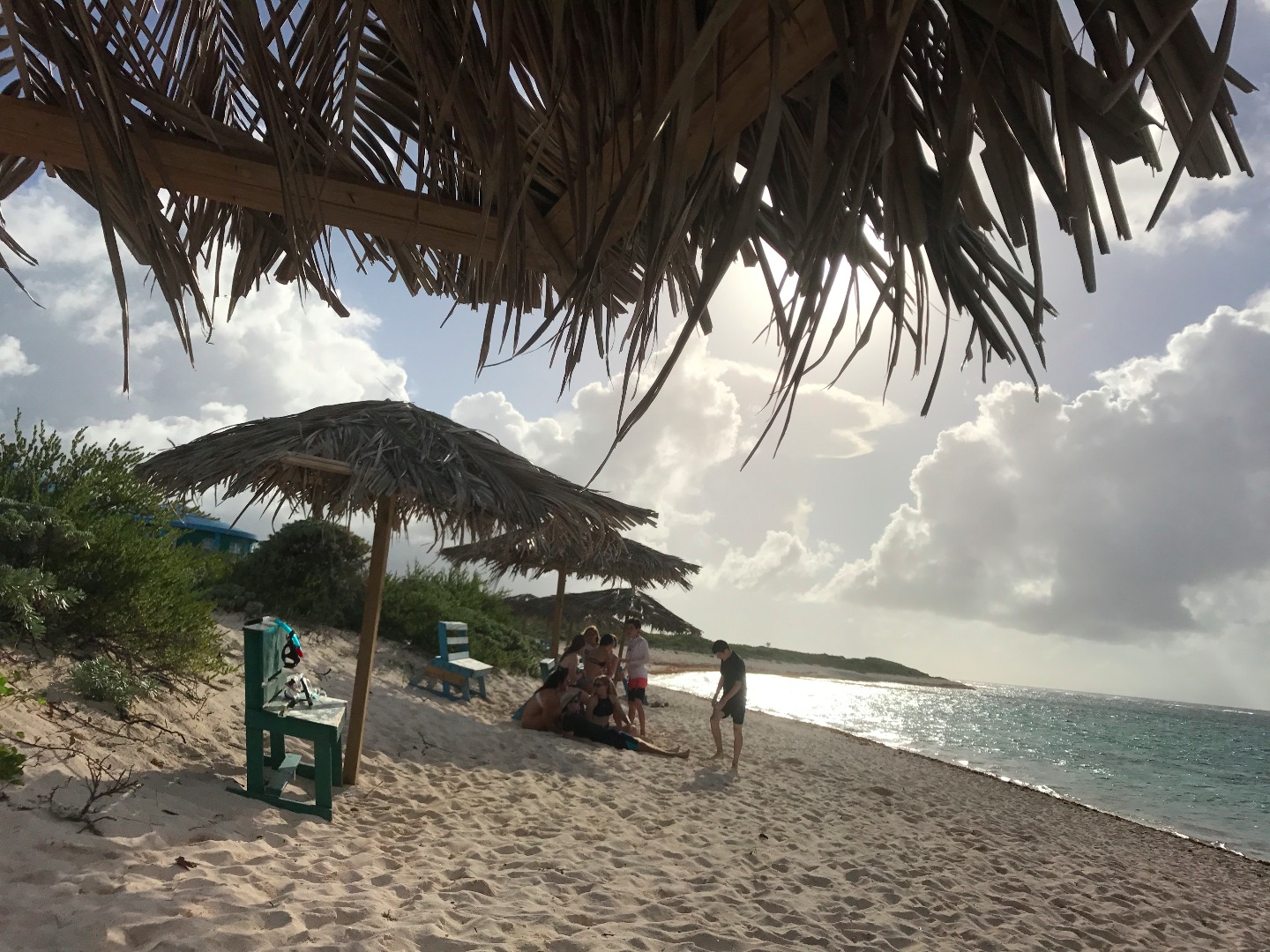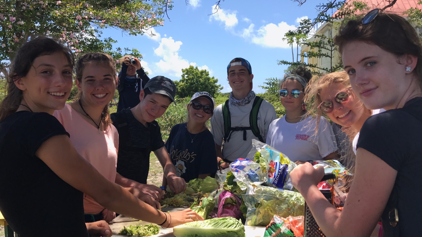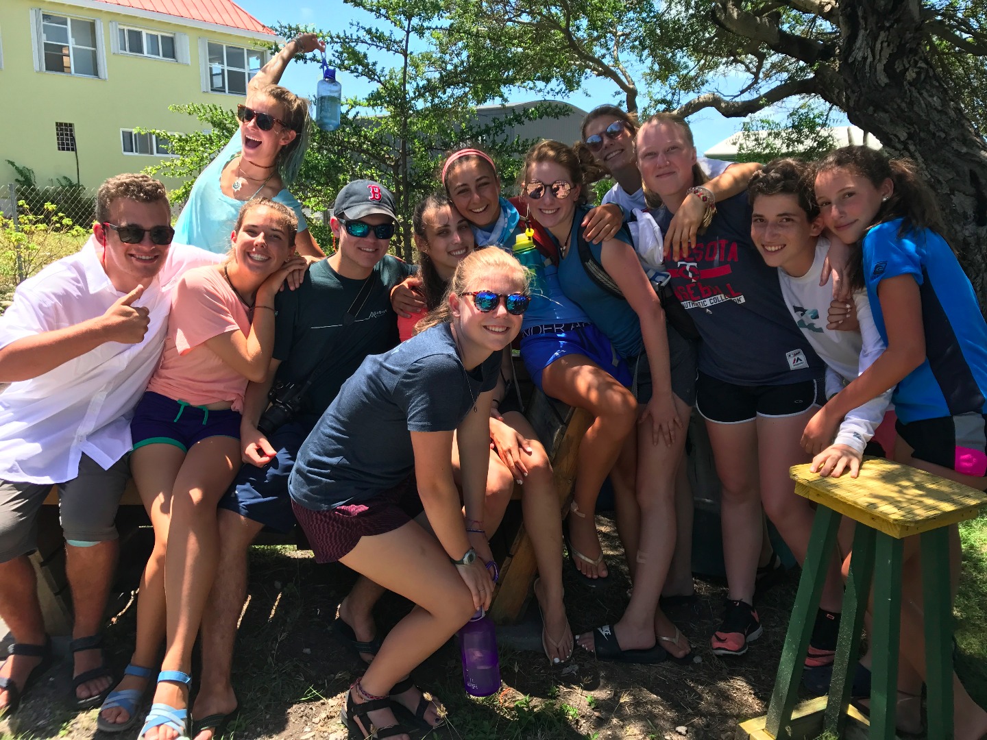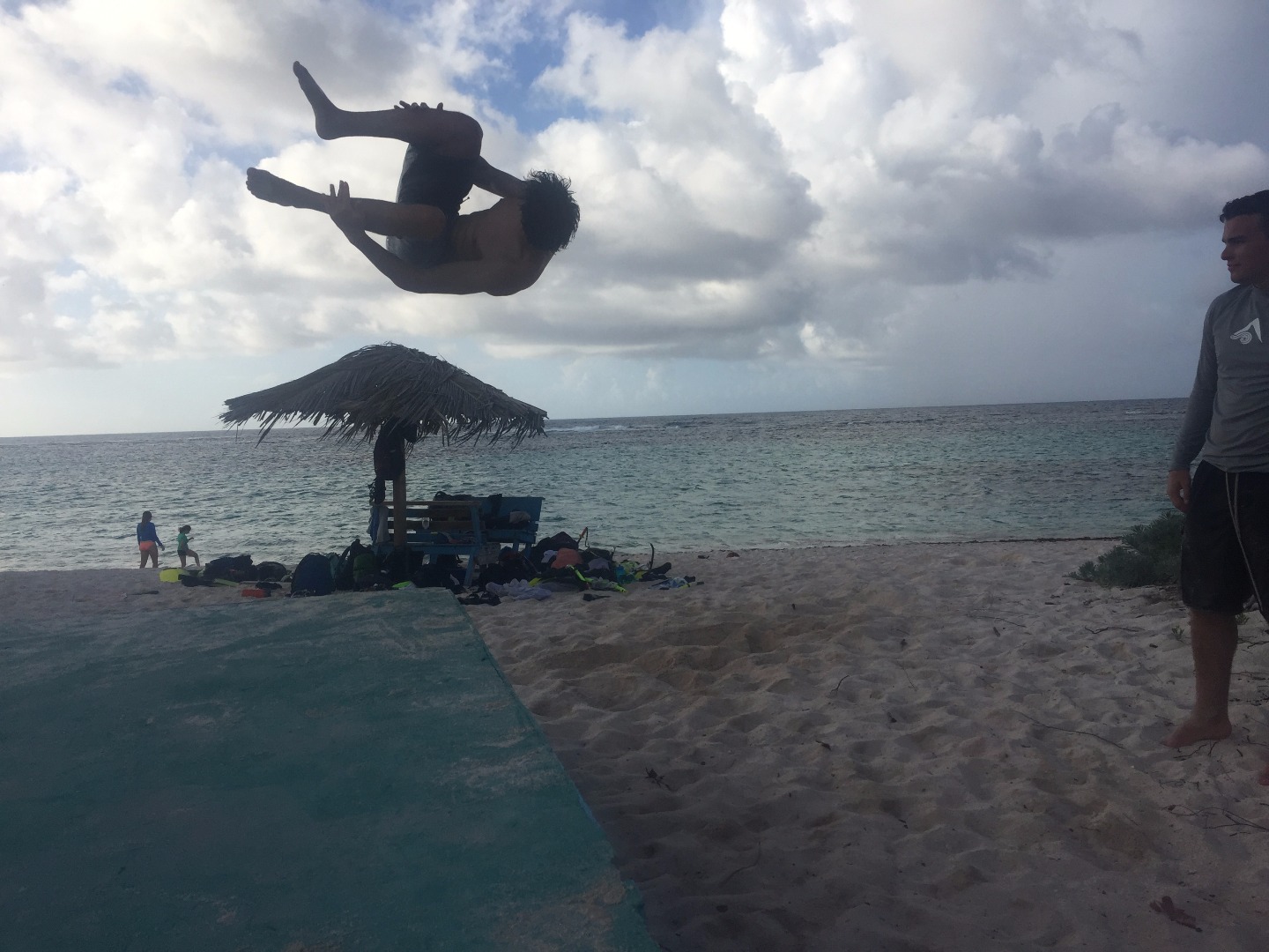 We woke up at 7, ate a fast breakfast and booked it to the island. We filled the taxi and took a trip to an iguana head start facility. Although I was surrounded by hundreds of Iguanas, I was mesmerized by the puppies that took refuge from the heat under a makeshift shelter. After cooing at the puppies for a while, we were herded into the facility for a discussion. The head of the operation revealed to us that cats were the reason that the iguanas were facing extinction. Although she extensively denied loathing cats, her tone when she spoke of cats proved otherwise. Lachlan and I, being the lizard hunters that we are, went straight for a few small lizards when all the jobs were taken. We thought we cornered one, but it jumped on my shirt. It stuck there for a while, and Hannah snapped a picture of it. The lizard wiggled up to my shoulders, and we took it out for a ride. We found out that it was an anole and I decided to name it Terrence. Lachlan caught another lizard, which was later named Shelby. Lachlan placed Shelby on my back with Terrence. From what I have been told, Shelby and Terrence engaged in a stare-down, which matched that of a wild-west movie. A couple of hours spent making salads for iguanas went by, and it was time to leave. Later, we took a trip to the beach, which I have been told is a rare occurrence. Most of the group went swimming, and I hung back with a few friends. We did some flips off of a two-foot tall ledge. After a few flips, we inspired Elliot and Jordan (our instructors) to try some as well. Jordan took a shot at a front flip and landed on his butt. Elliot went for a backflip and fell on his face. Unfazed, he took another shot, which went much better than the first.