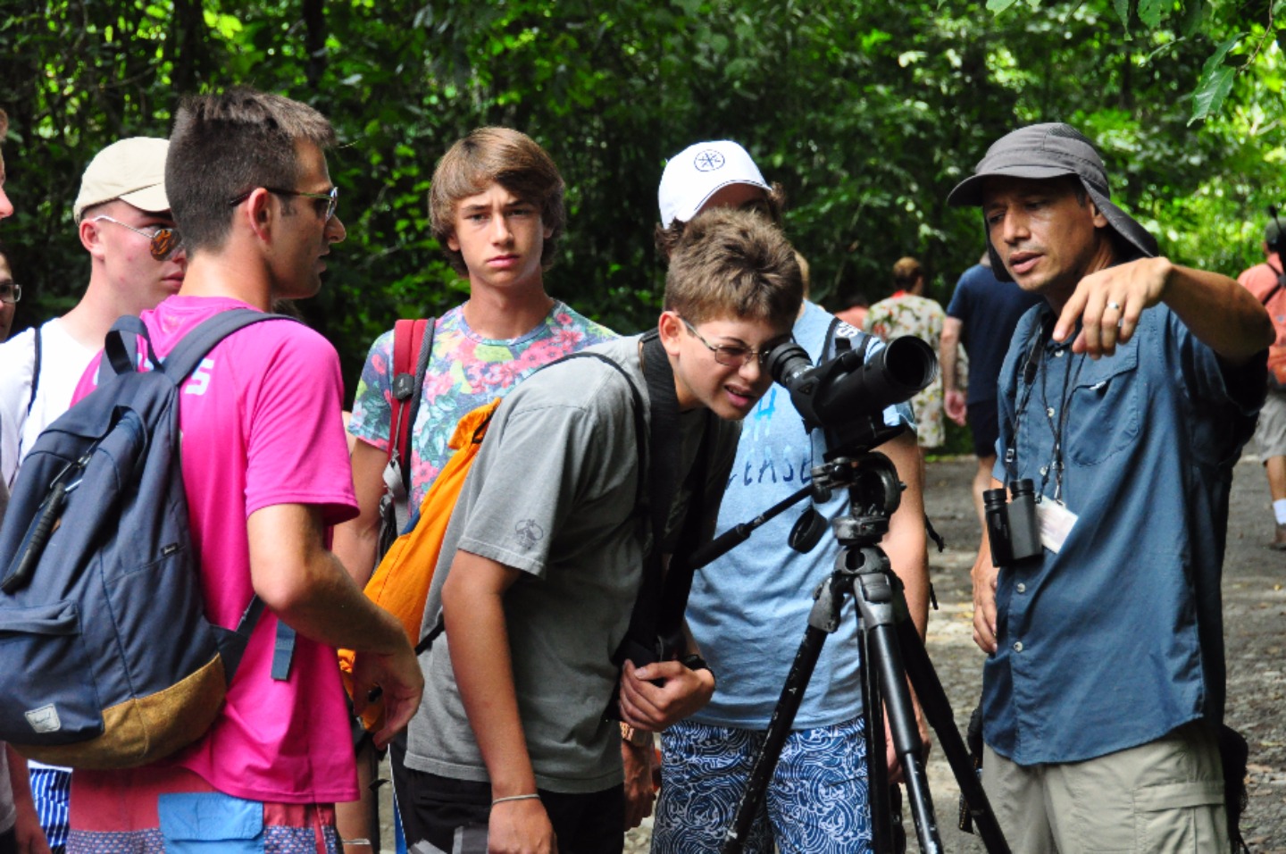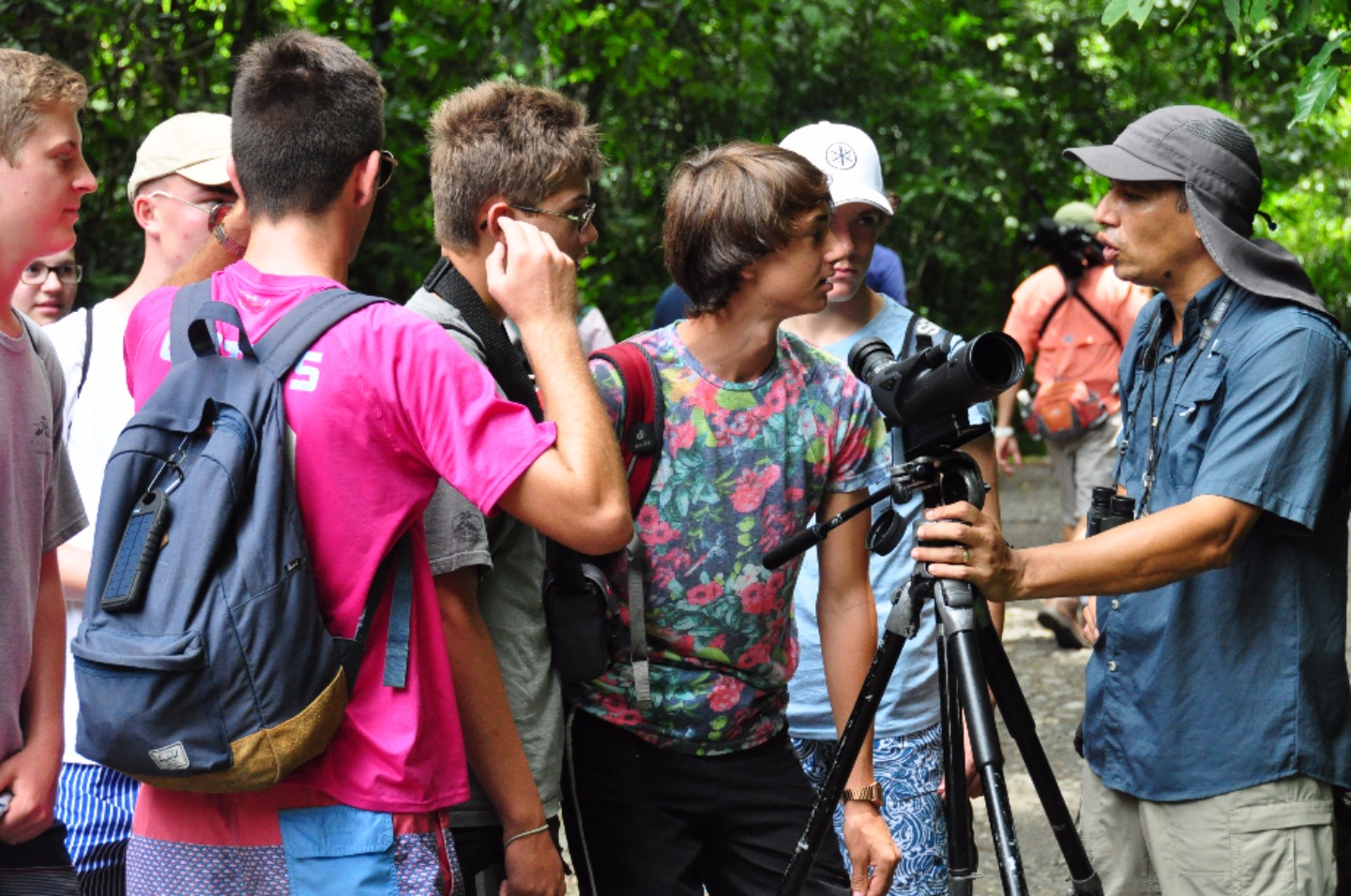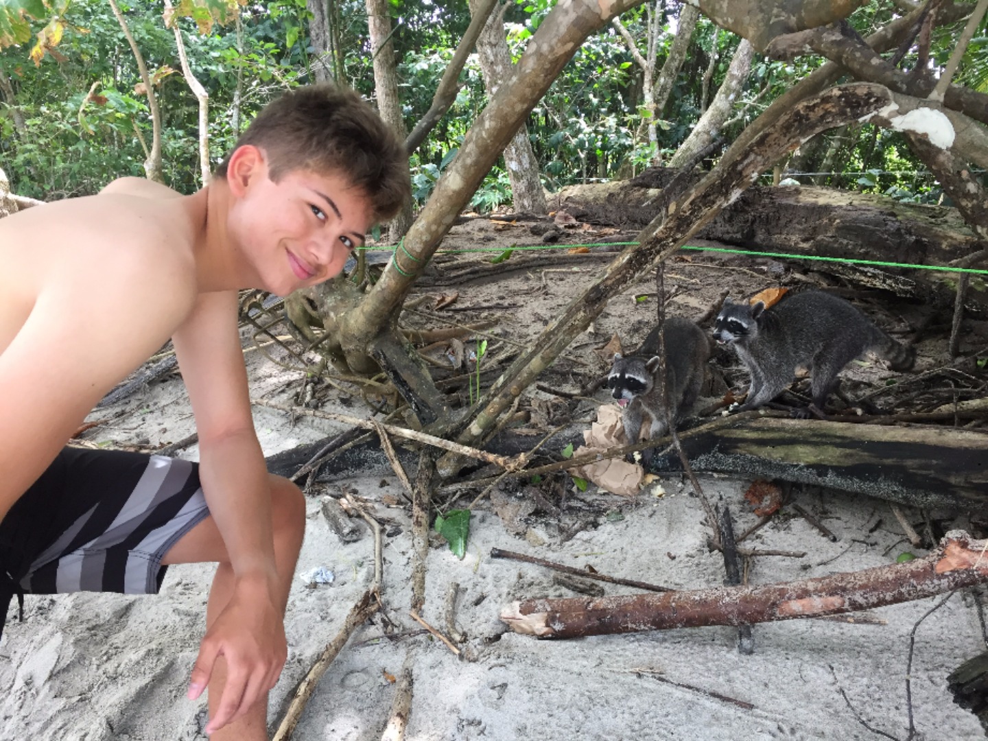 To start the day, we woke up bright and early at 5:30 AM for breakfast which was at 6:30. Breakfast consisted of the same foods that we had the day before. Even though no one was thrilled about the early wake-up call, we were all excited for the relaxing day ahead. After breakfast, we brought all of our things onto the bus and headed over to the West Coast of Costa Rica. About an hour went by, we stopped at a gift shop, and saw some crocodiles in a river below the road. We then headed quickly back to the bus out of fear that we would be pelted with water balloons #boyswillbeboys! After we safely made it to the bus with our souvenirs, we continued our journey to our next hotel. Two and a half more hours on the road led us to our hotel, the Blue Monkey. We dropped our things off and quickly got back on the bus to go to a supermarket and take a nature tour. The tour guide showed us a variety of animals and insects including, monkeys, sloths, spiders, frogs, and iguanas. Once we reached the end of the tour, we found ourselves at the beautiful beaches of West Coast, Costa Rica. Everyone quickly headed for the ocean to cool off and enjoy the huge waves. After the waves strongly pulled us under and broke Rachel’s sunglasses (#sorrymom) and stole Chloe’s, Sarah told the rest of the of the girls, “This is why I suggested putting your sunglasses in your backpacks.” (Backpacks, which were hanging on the trees so the raccoons and monkeys couldn’t eat them) We got out of the water to eat and found ourselves being tormented by a giant iguana. We decided the water was the best place to be and went back to swim some more. After a couple more hours of waves taller than really tall people, we hiked back to the bus and supermarket. Once we bought our cereal and other goodies, we went back to the hotel and had free time. Dinner was at 6:30 and even though we weren’t super hungry due to the mouths full of sand that we ingested, everyone enjoyed either pasta with meat sauce, burgers or quesadillas. To top off our day, we had brownies for dessert and discovered even after showering we still had a beach in our hair. We now have free time before our next exciting day of rafting!